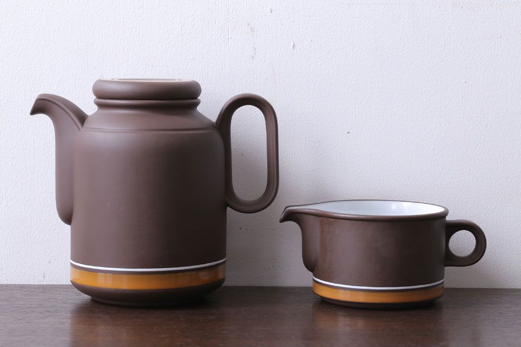 イギリスビンテージ HORNSEA(ホーンジー) Contour(コントウァ)シリーズ ポット、ミルク入れ2点セット