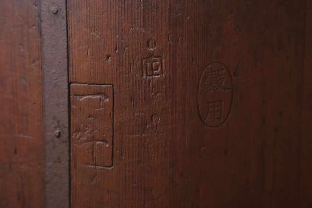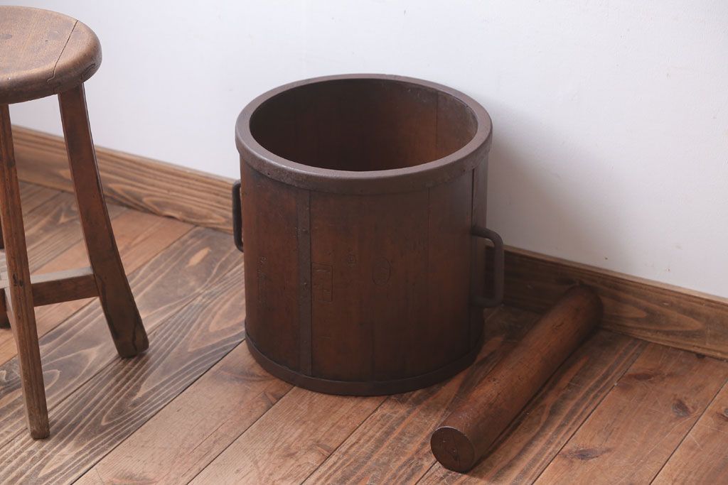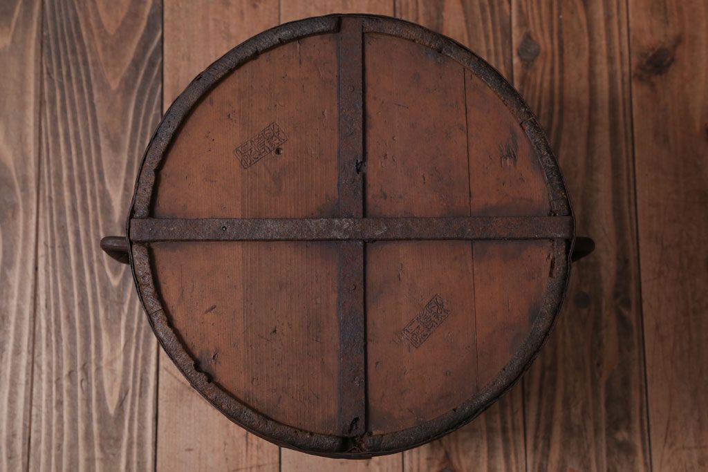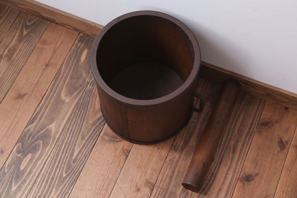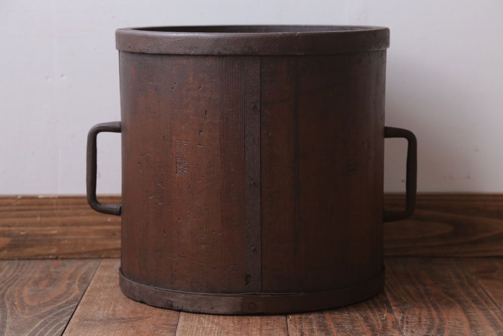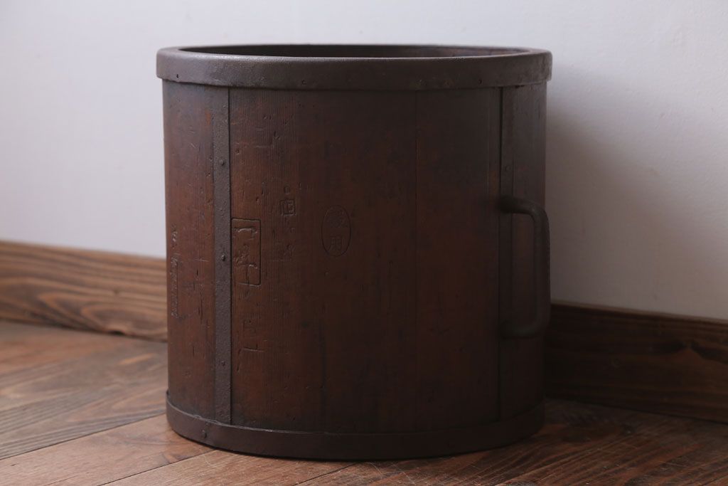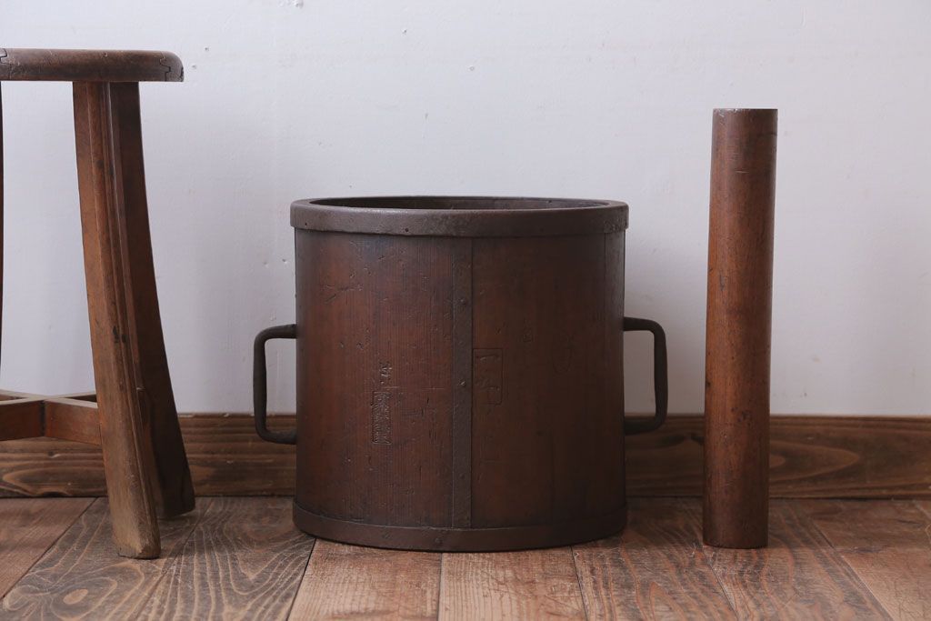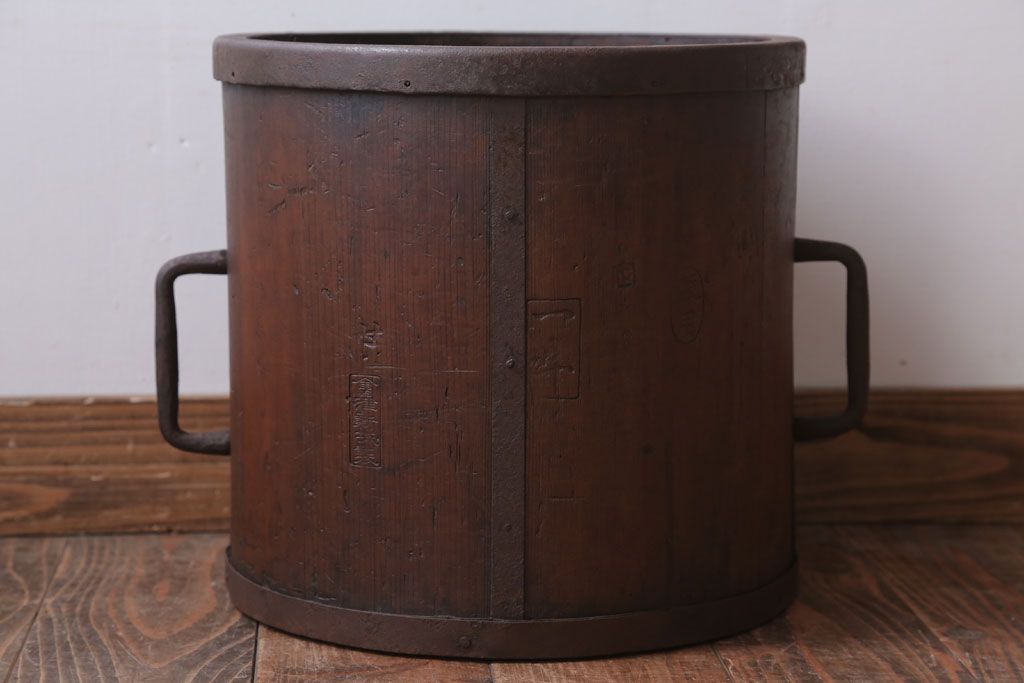 アンティーク雑貨 古民具・骨董 古い木製!アンティーク金具付きの一斗枡・斗棒セット