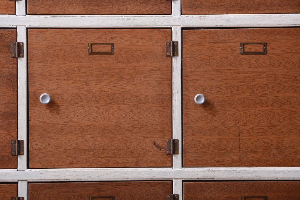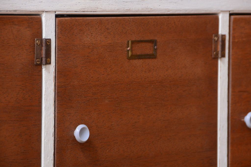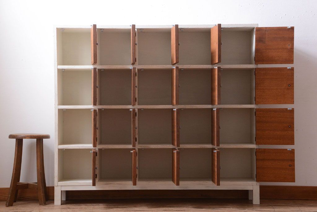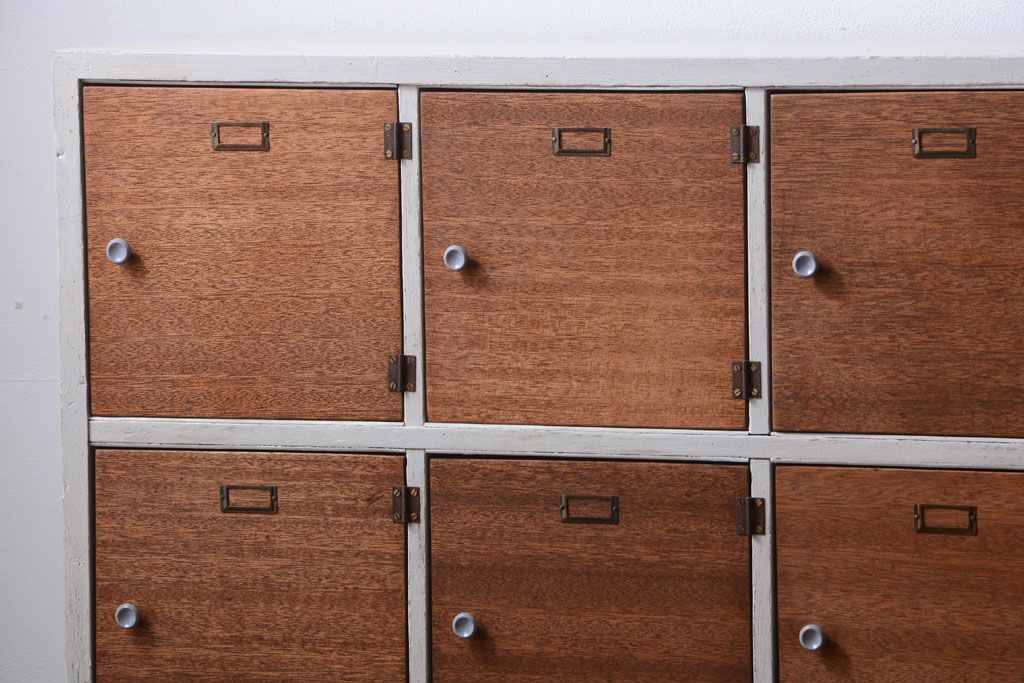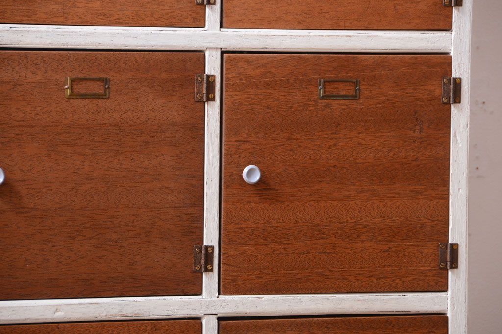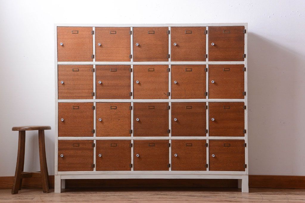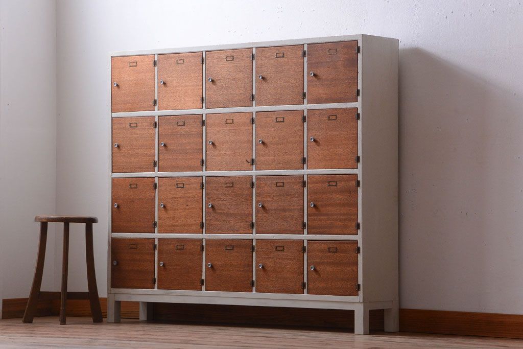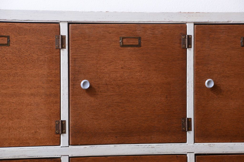 レトロ家具 アンティーク ネームプレート付き!レトロでかわいい脚付きマス目ロッカー