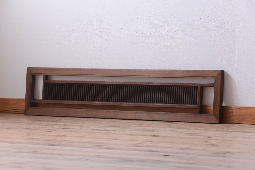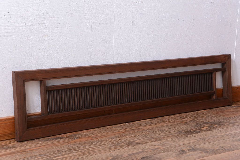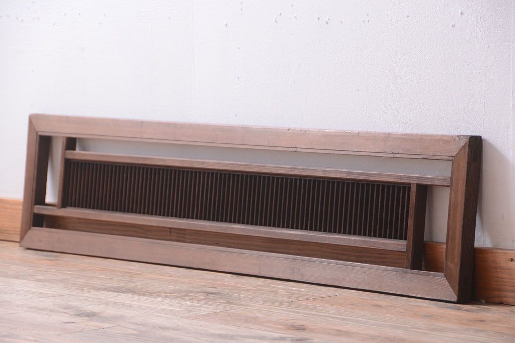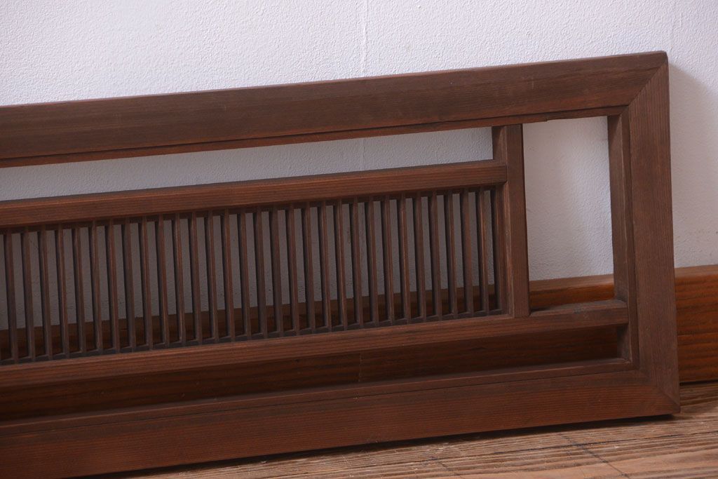 古民具・骨董 古い木製のアンティーク縦桟欄間です。 古い木の質感が味わい深い、 和製アンティークの欄間です。 和風なインテリアにぴったりな、 縦桟のデザインが施された一品です。 使用上問題のあるダメージはありません。 ■框サイズ 上35mm/左30mm/右30mm/下35mm