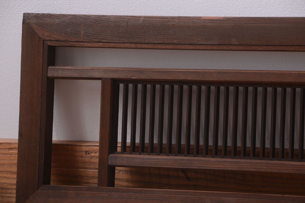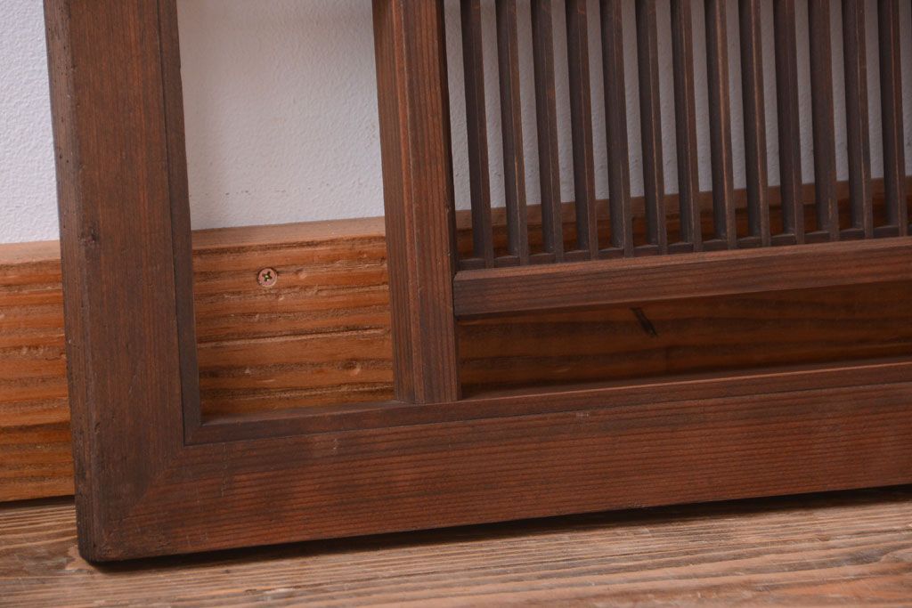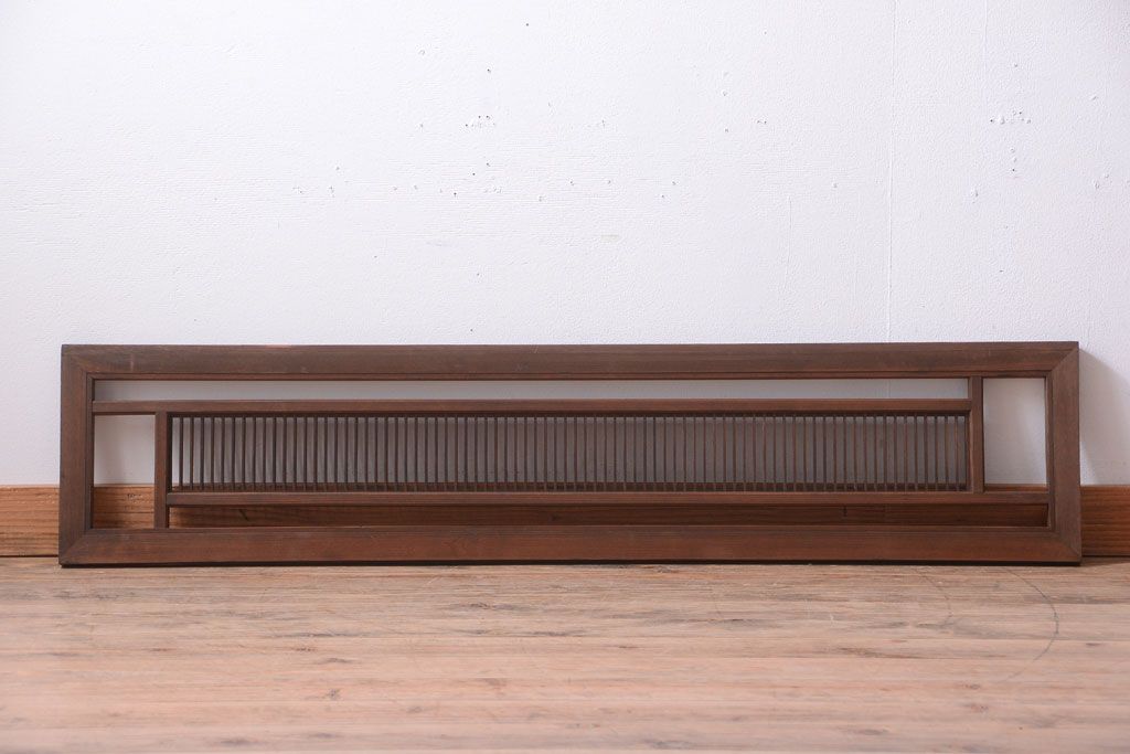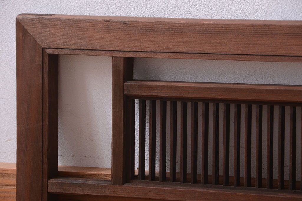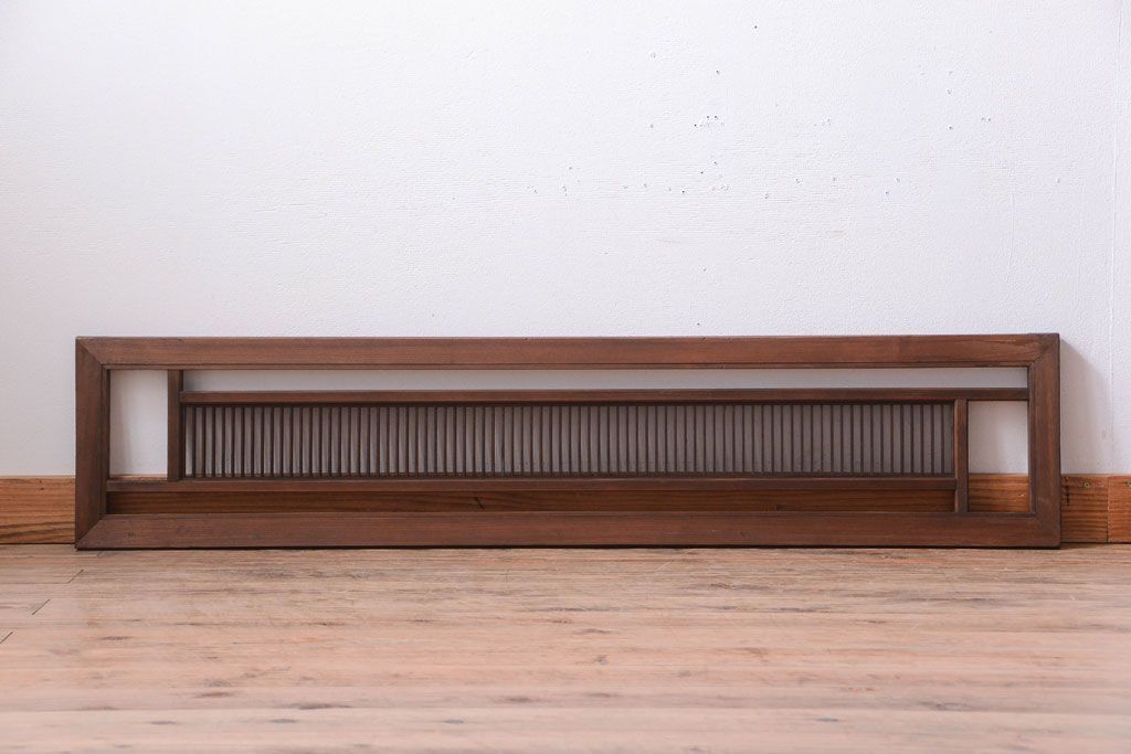 古民具・骨董 古い木製のアンティーク縦桟欄間です。 古い木の質感が味わい深い、 和製アンティークの欄間です。 和風なインテリアにぴったりな、 縦桟のデザインが施された一品です。 使用上問題のあるダメージはありません。 ■框サイズ 上35mm/左30mm/右30mm/下35mm
