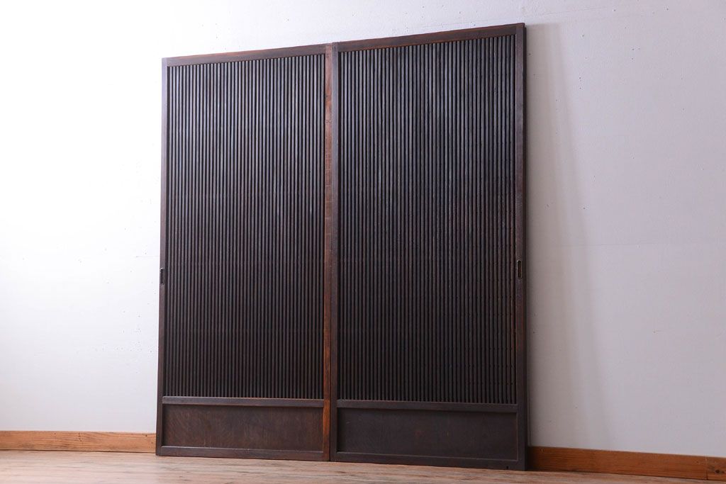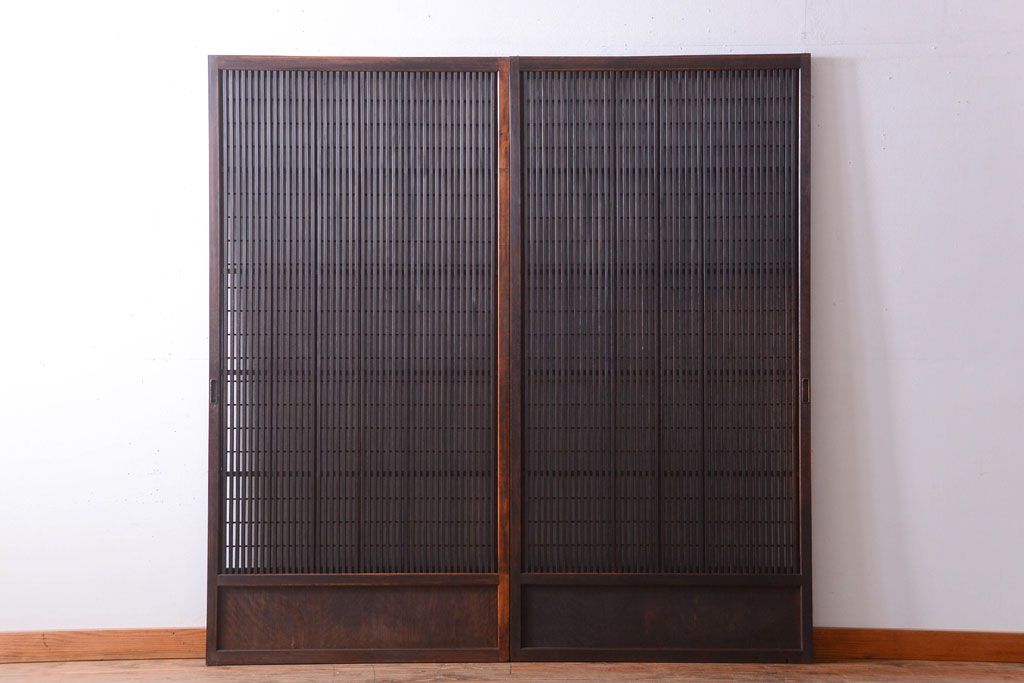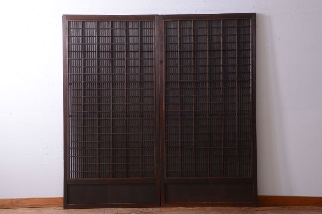 古民具・骨董 特大裏障子付き!高級アンティーク格子戸2枚セット