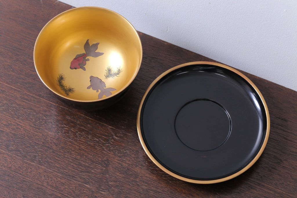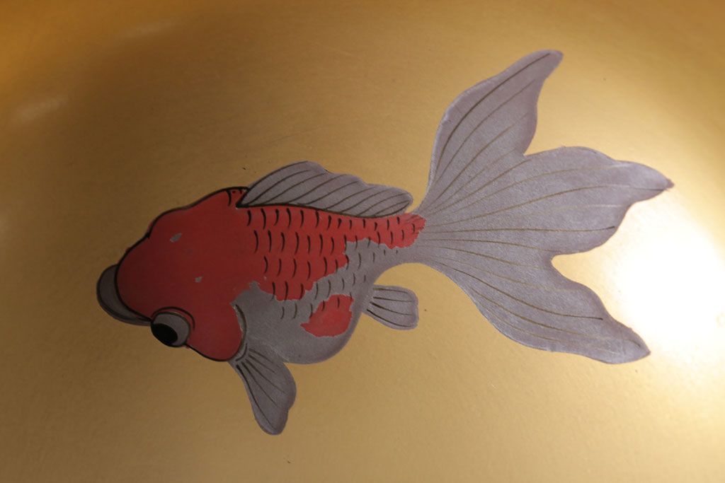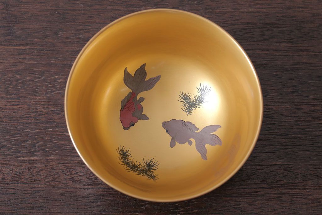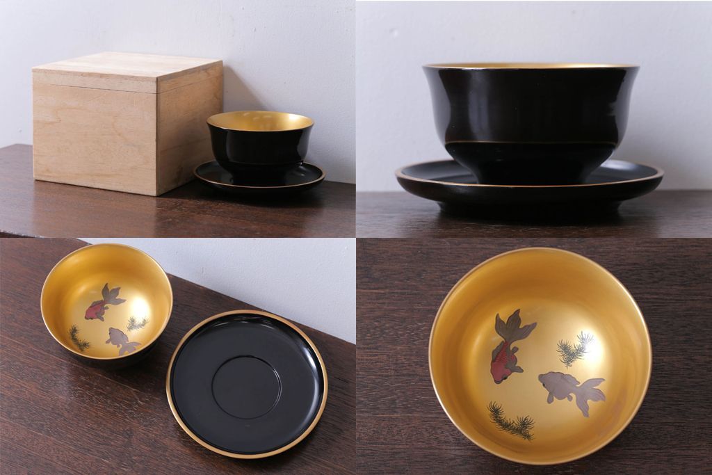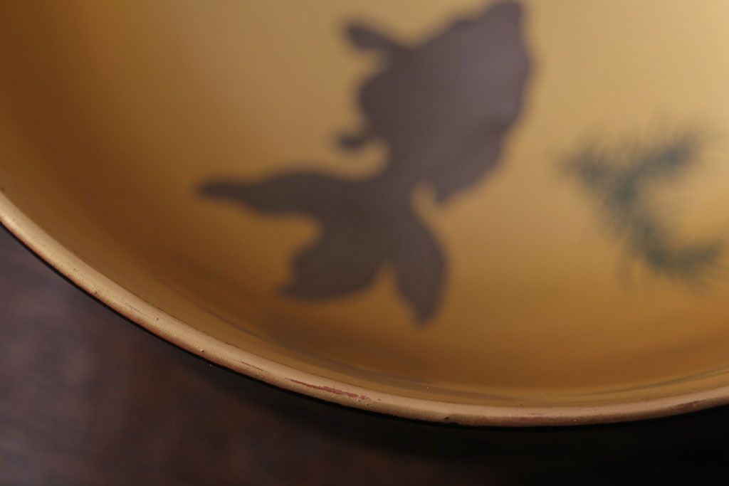 ラフジュ工房> 和食器・茶道具> お椀・茶碗 > アンティーク 大正〜昭和初期!金魚の図 木製蒔絵盃洗