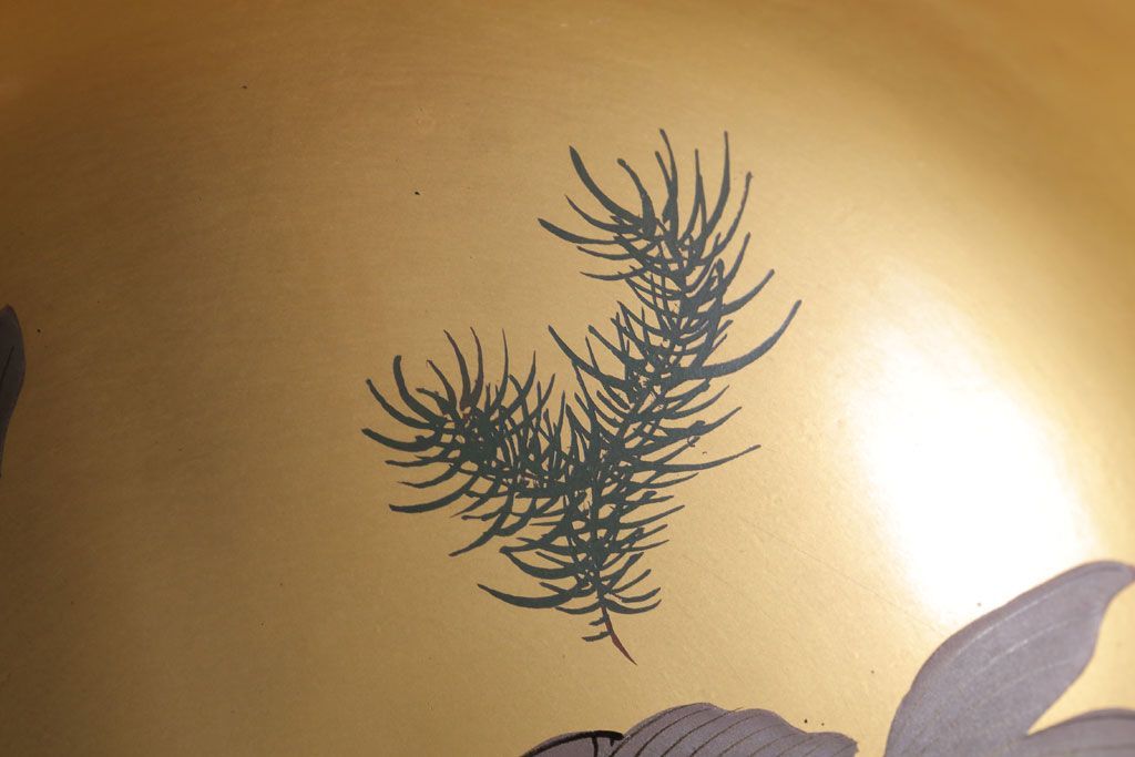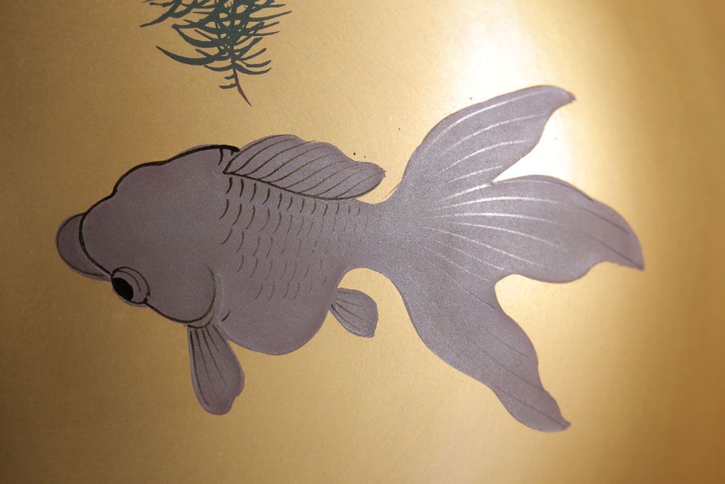 アンティーク 大正〜昭和初期!金魚の図 木製蒔絵盃洗