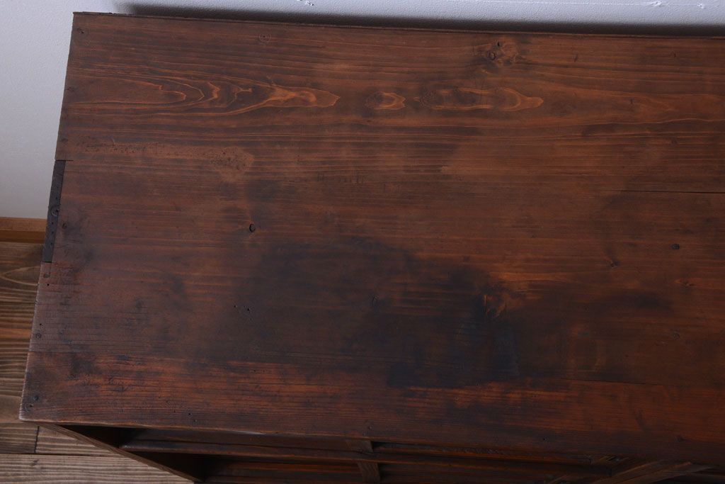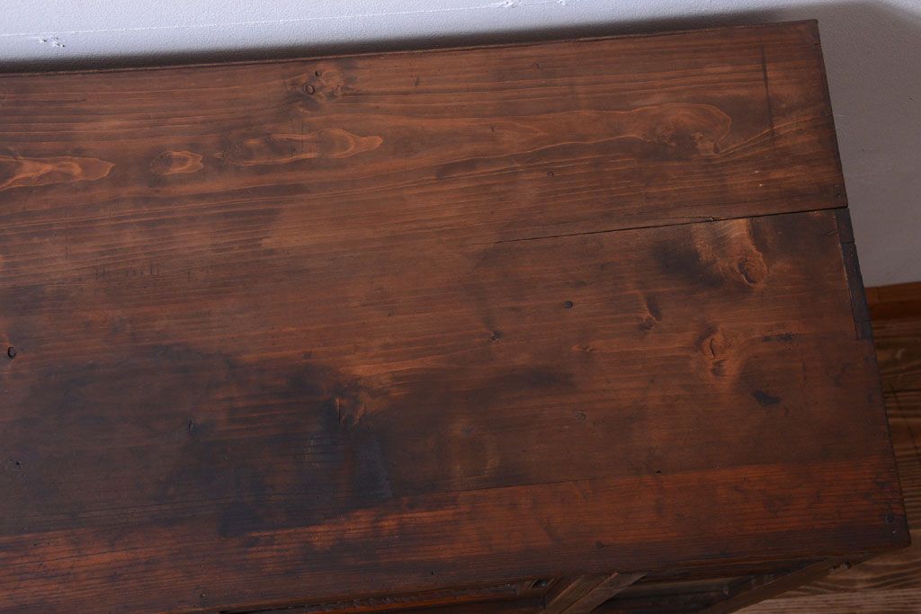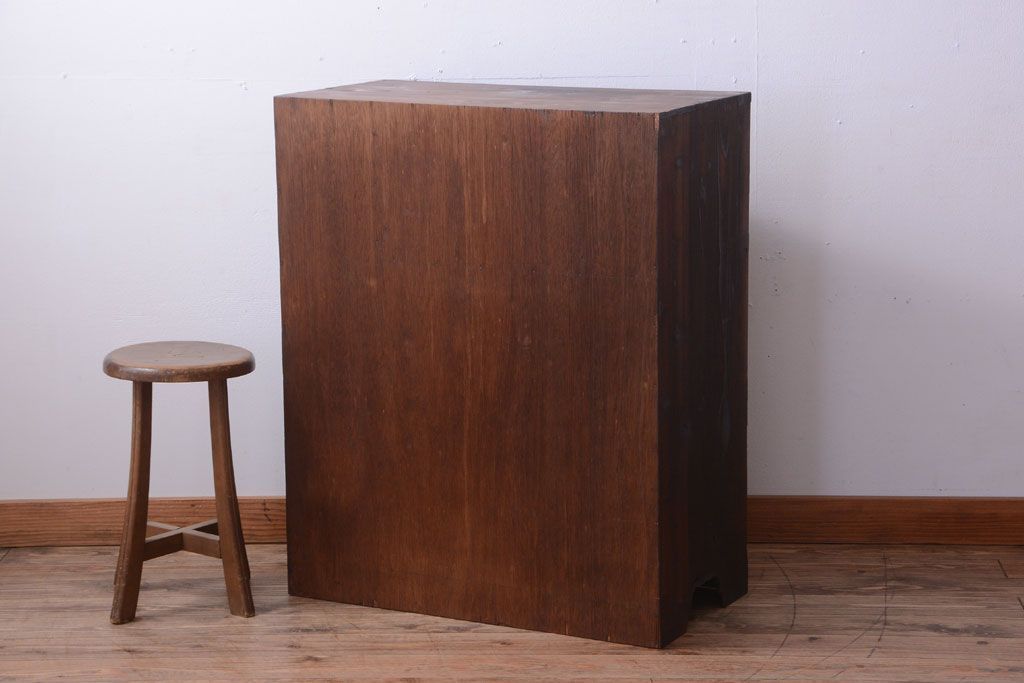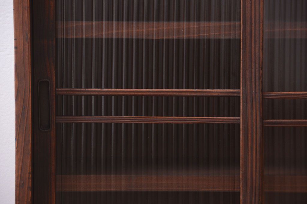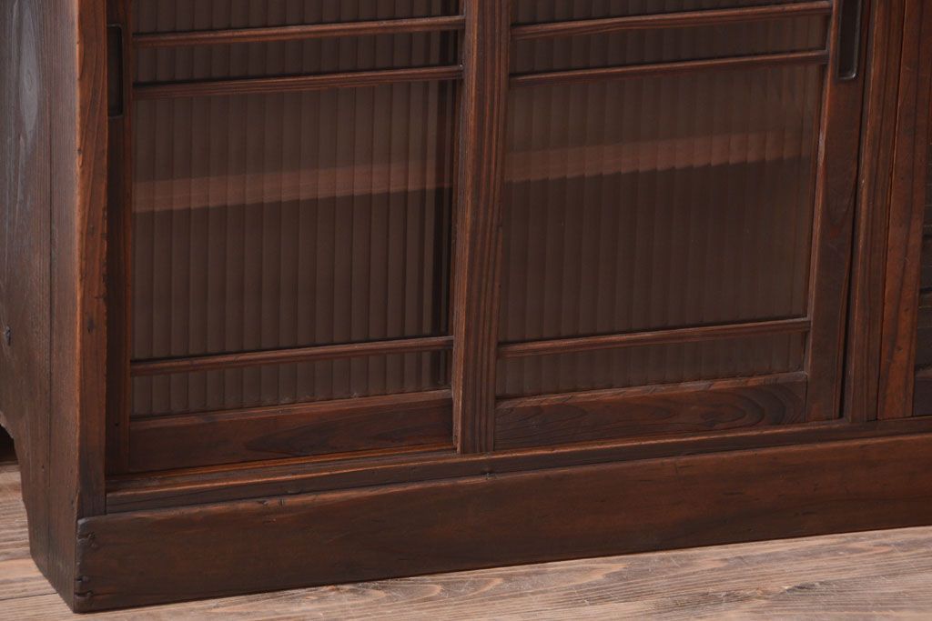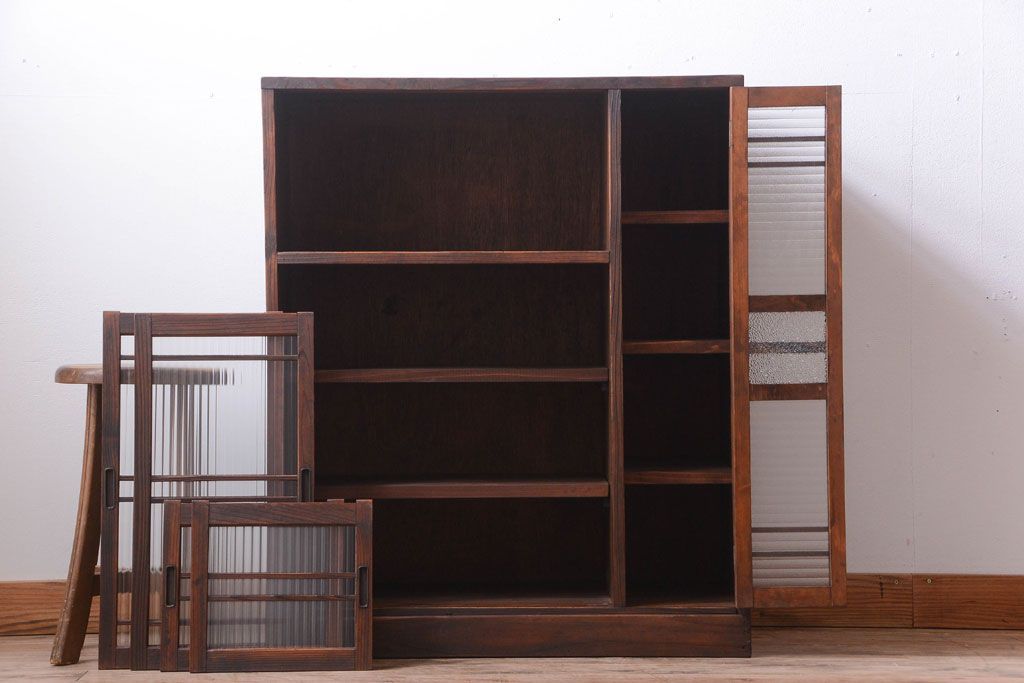 レトロ家具 和製アンティーク 3種のレトロガラス入り!古い木製の引き戸収納棚(下駄箱)