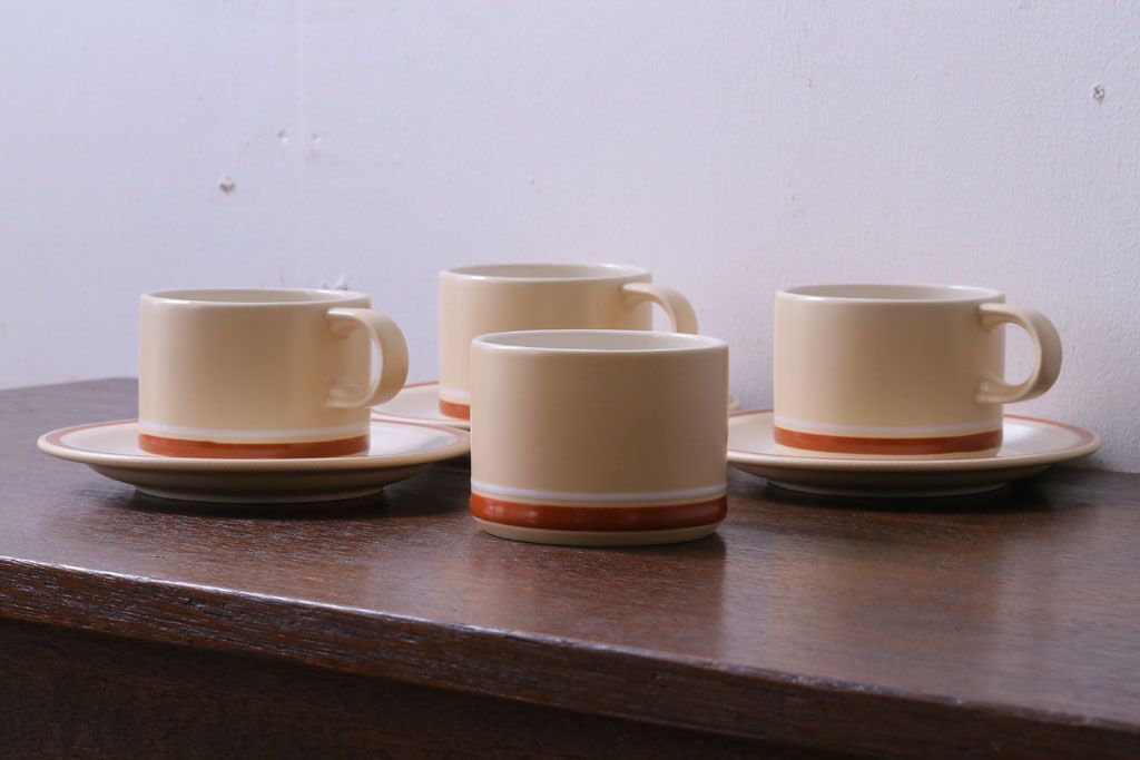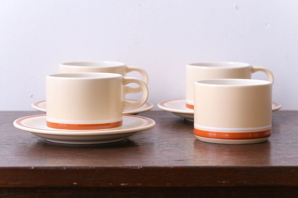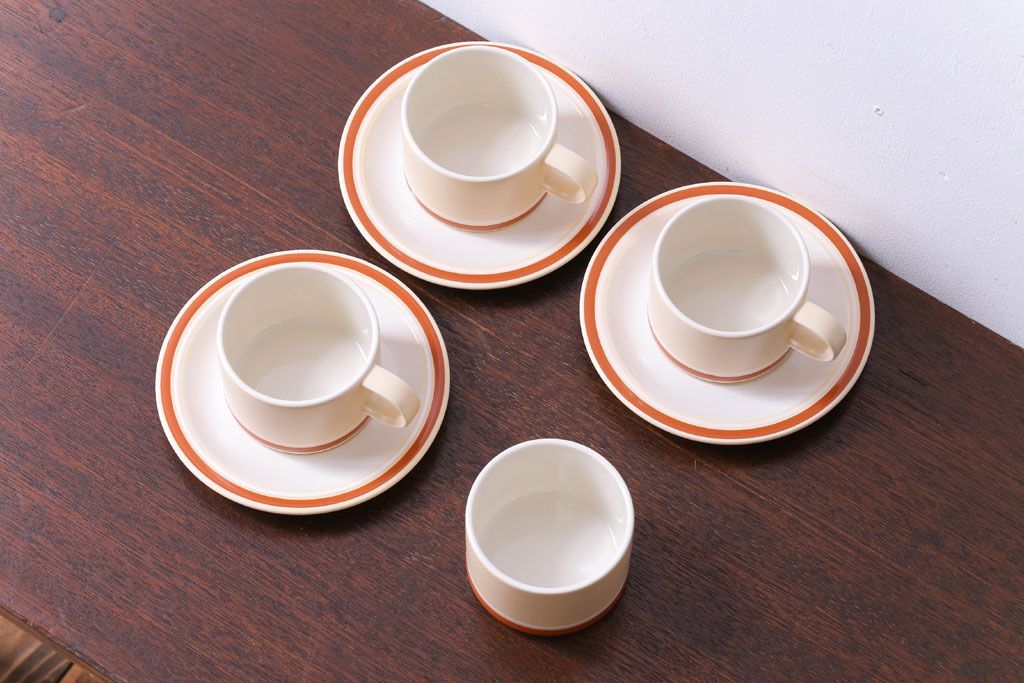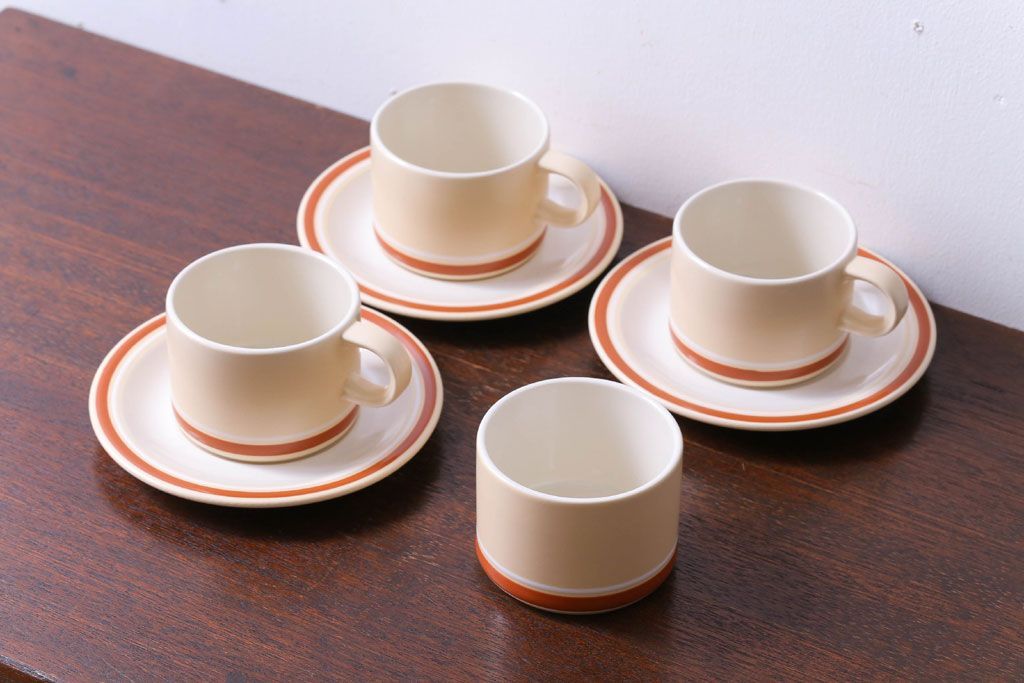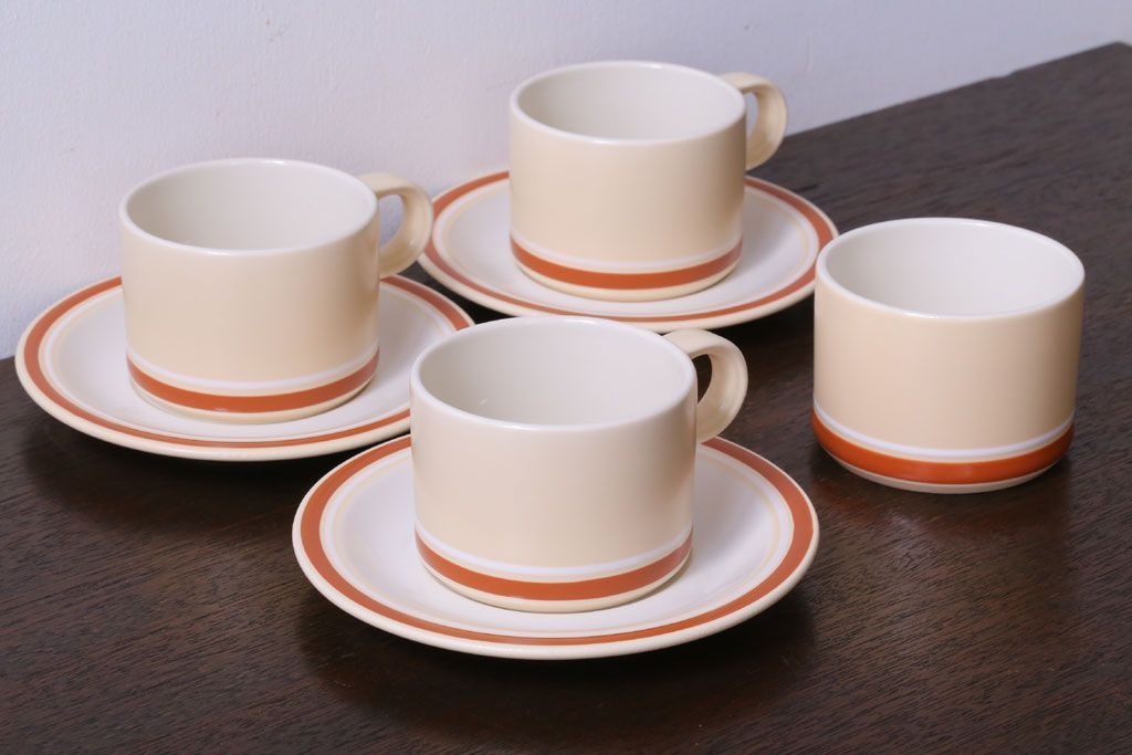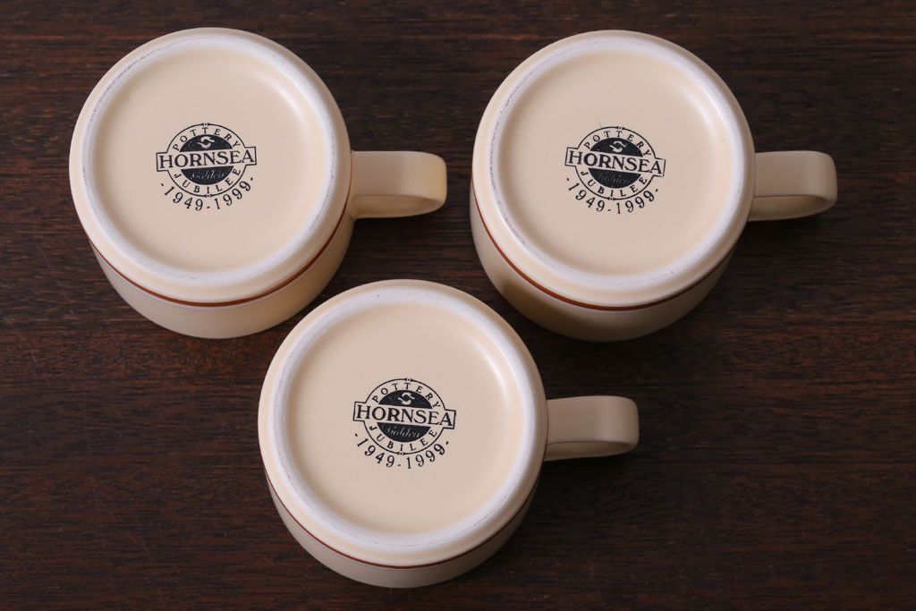 アンティーク雑貨 イギリスビンテージ HORNSEA(ホーンジー) Golden Jubilee(ゴールデンジュビリー)シリーズ カップ&ソーサー3客・シュガーセット