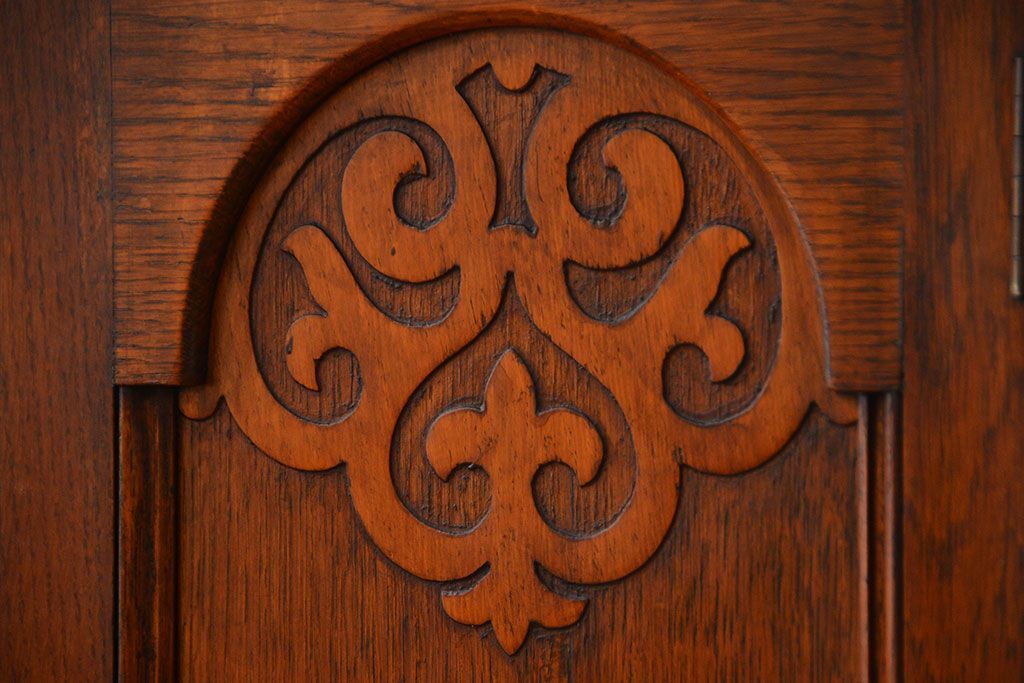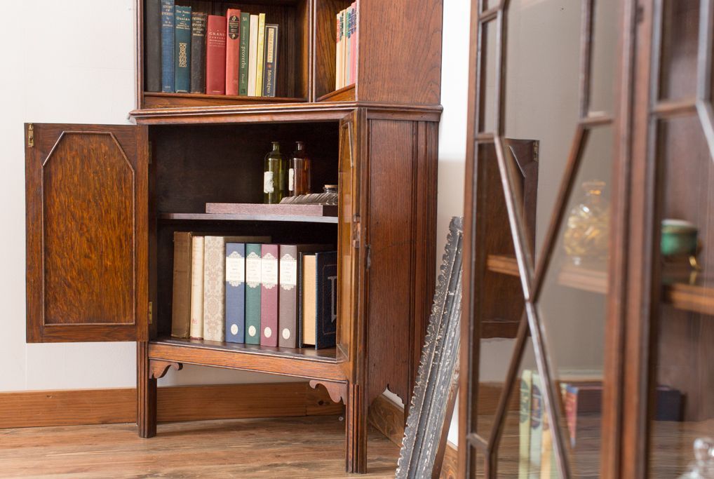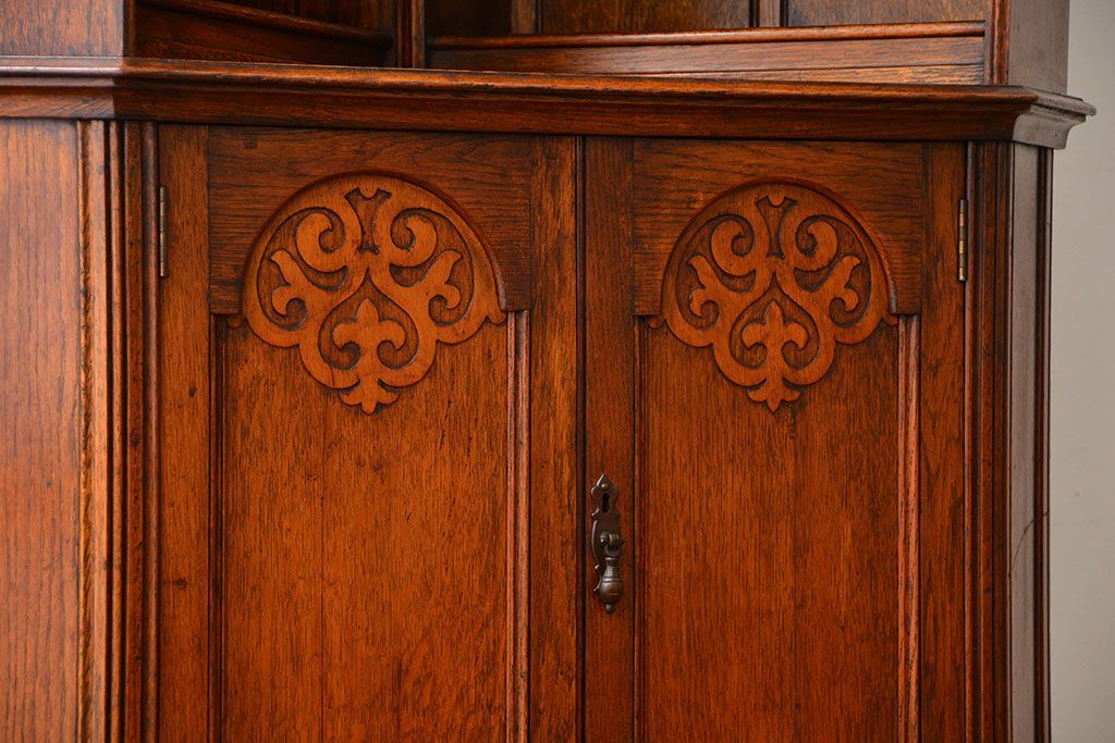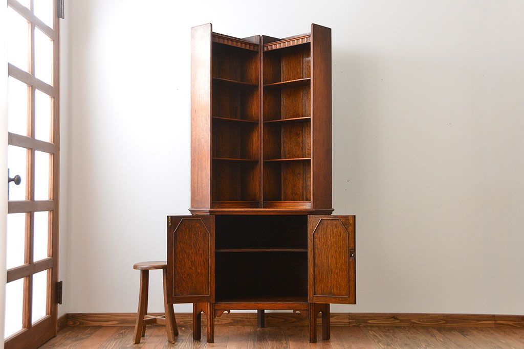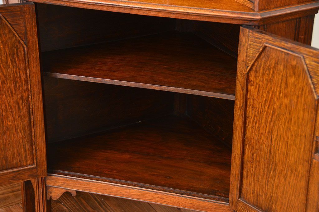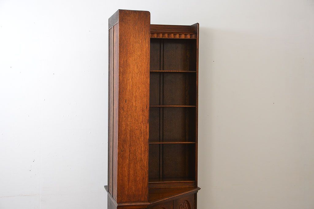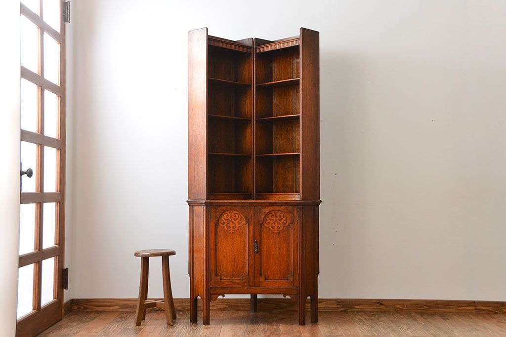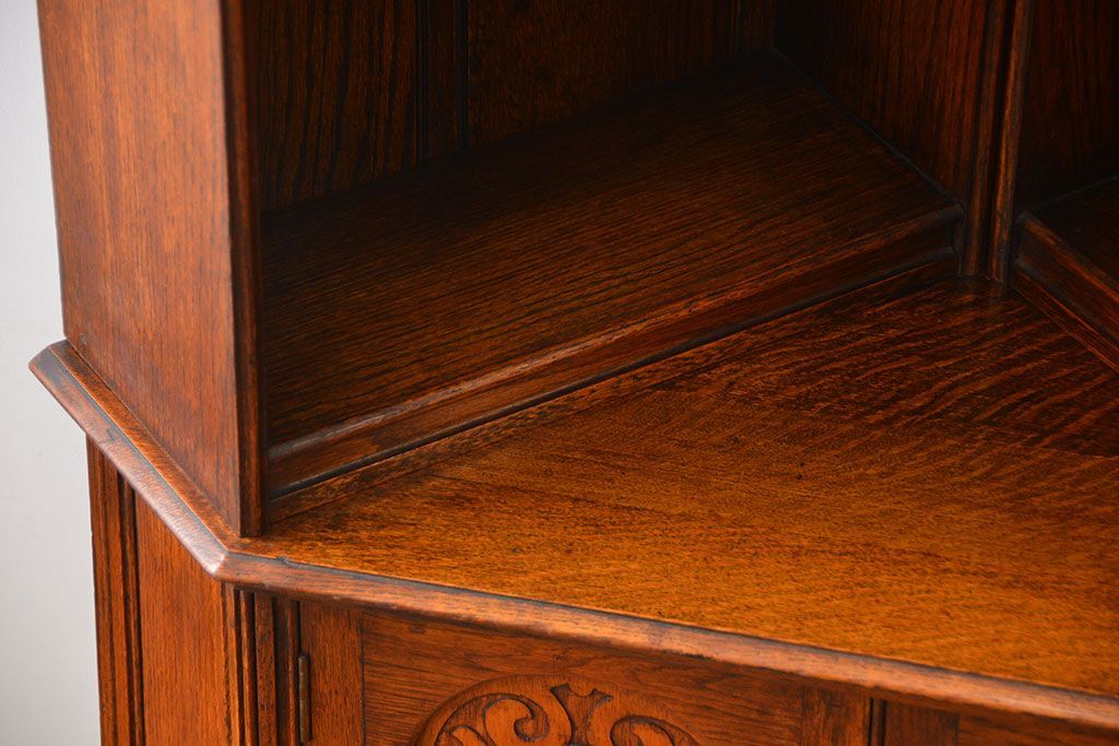 アンティーク家具 イギリスアンティーク オーク材のコーナーブックシェルフ(本棚)