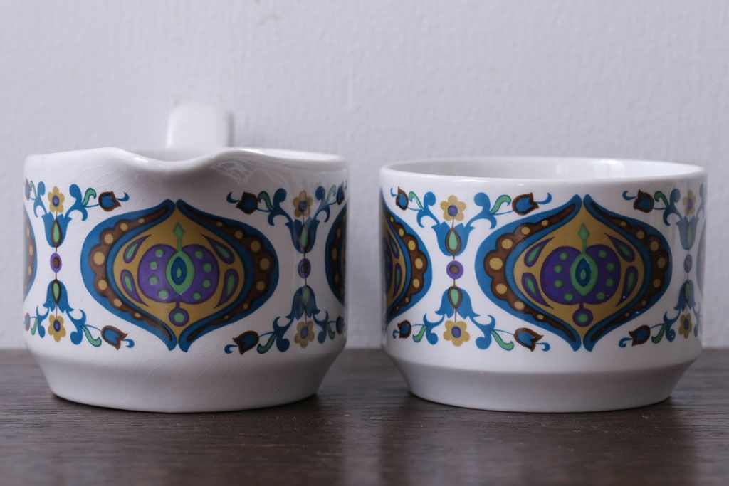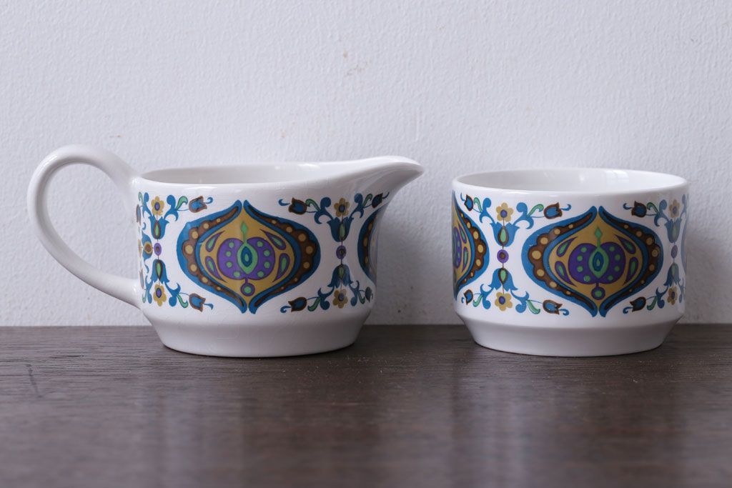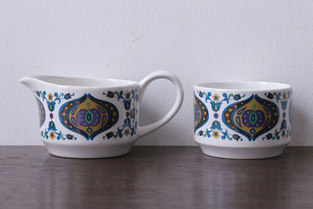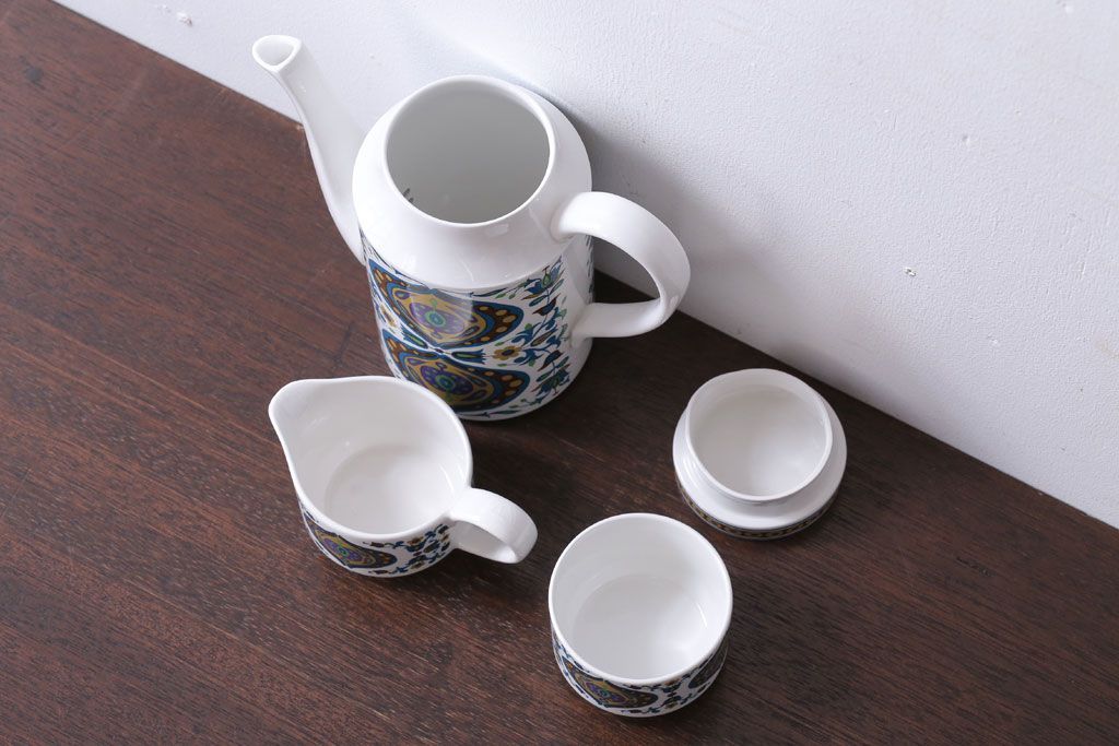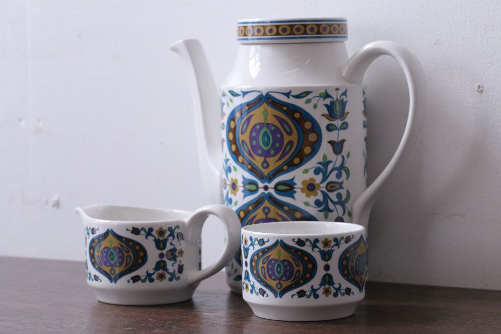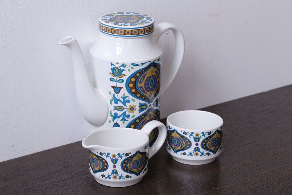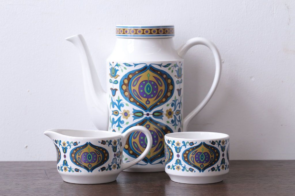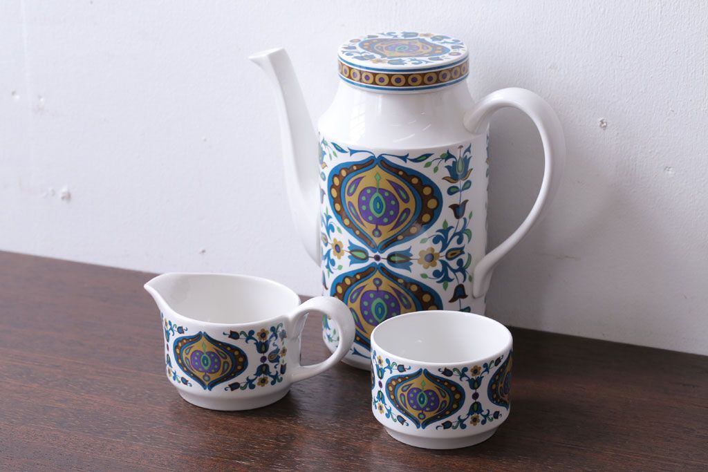 ラフジュ工房> 洋食器・キッチン用品> ポット・シュガーポット・クリーマー > イギリスビンテージ MIDWINTER(ミッドウィンター) Bengal(ベンガル)シリーズ ティーポット、砂糖入れ、ミルク入れのセット