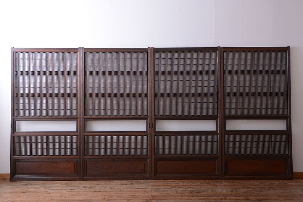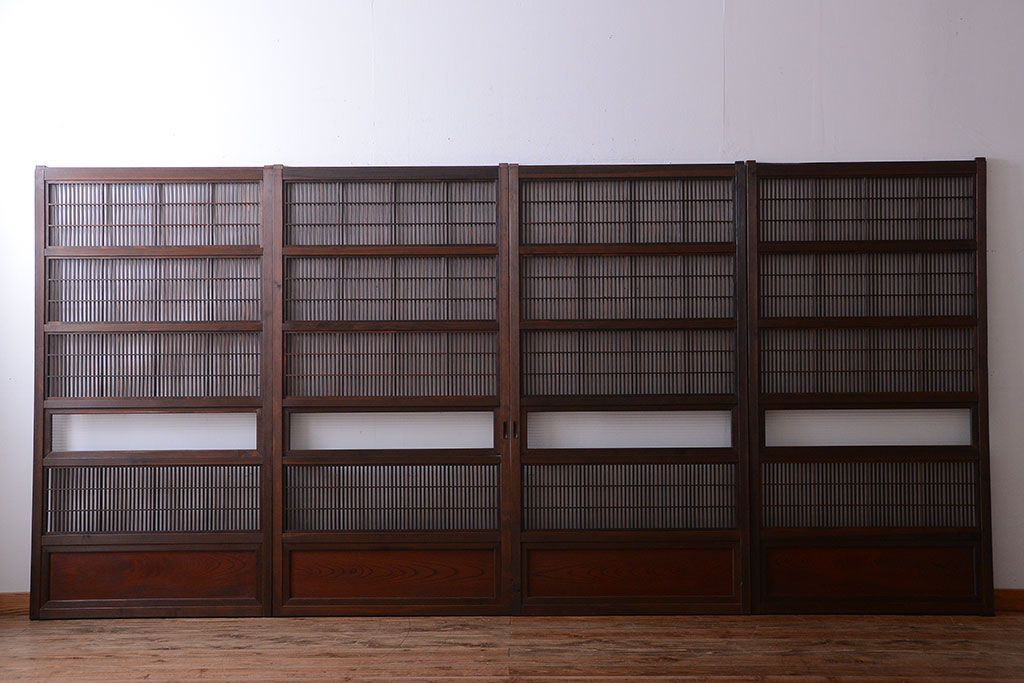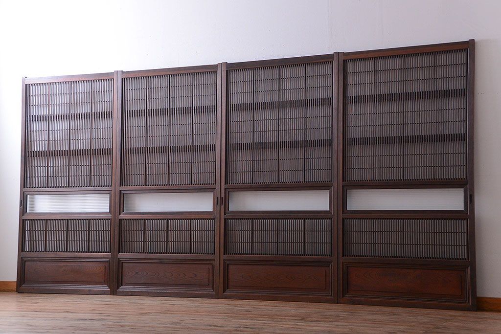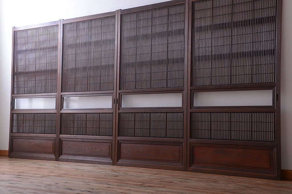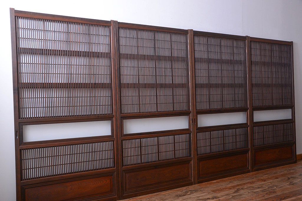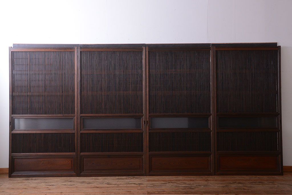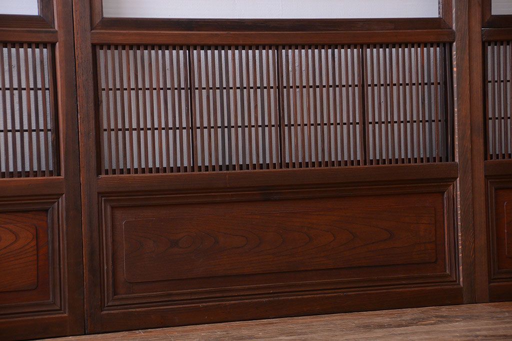 古民具・骨董 腰板欅材!裏障子付き格子戸4枚セット