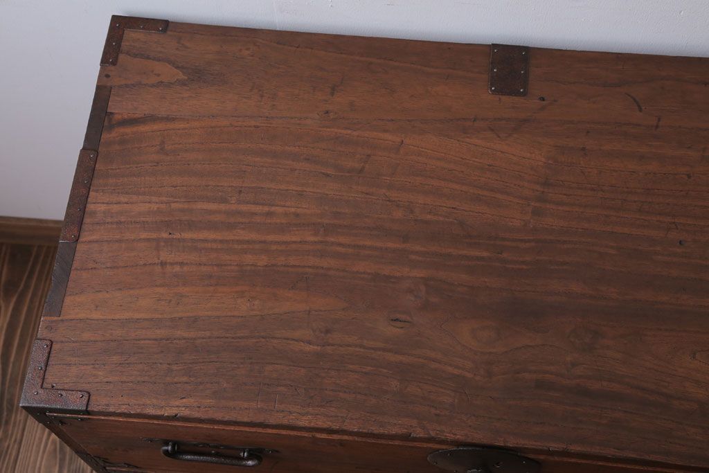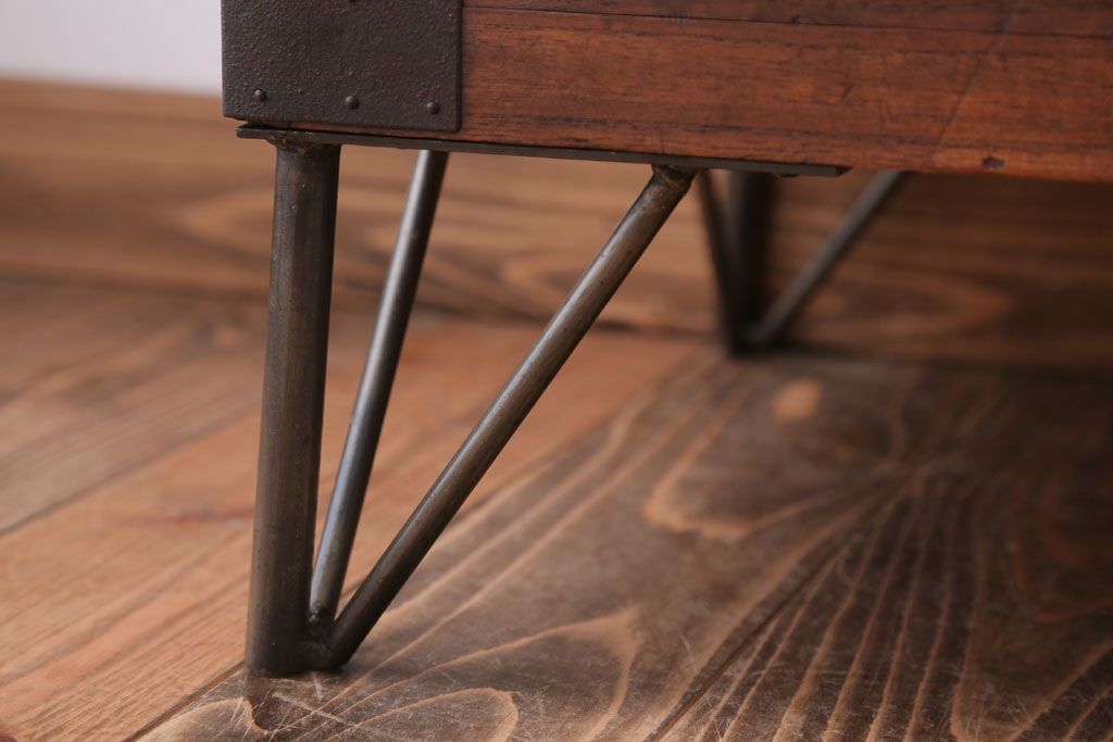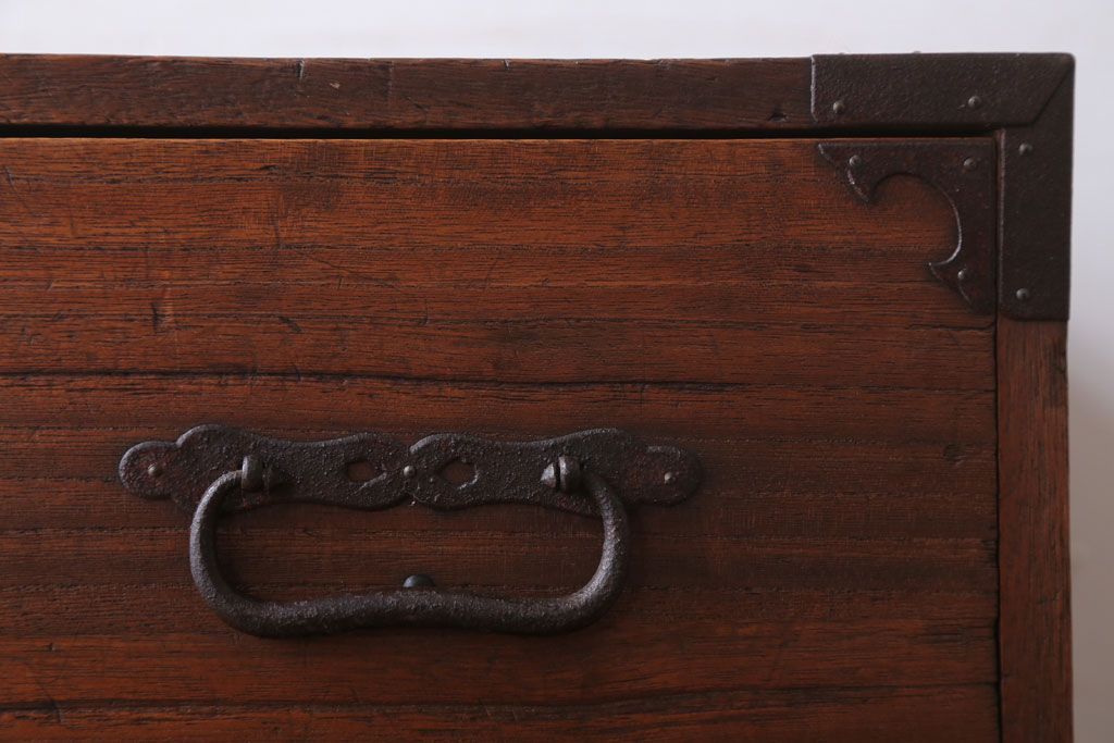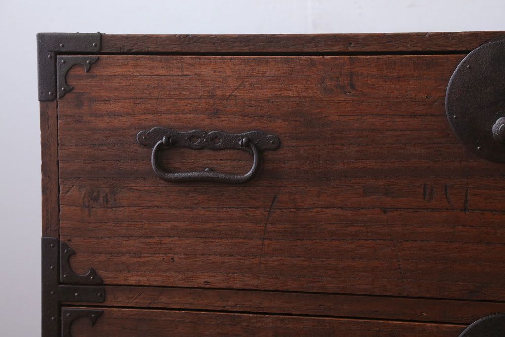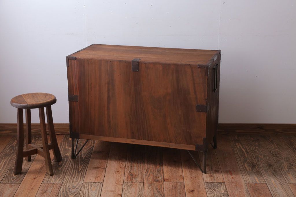 アンティーク家具 和製アンティーク 鉄脚付き!シンプルな丸金具の時代箪笥ローボード(1)