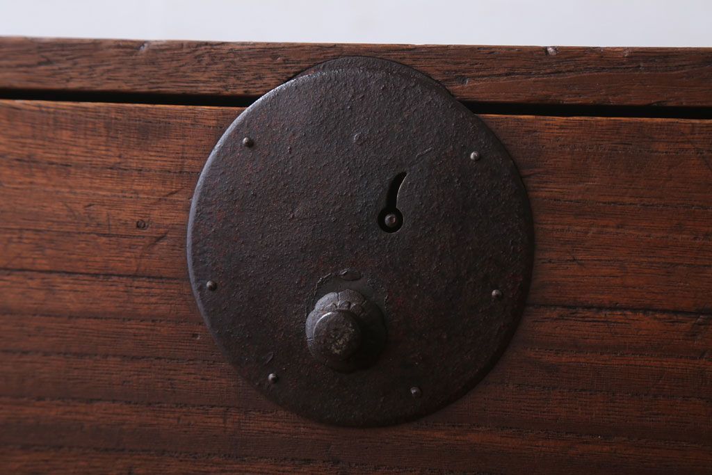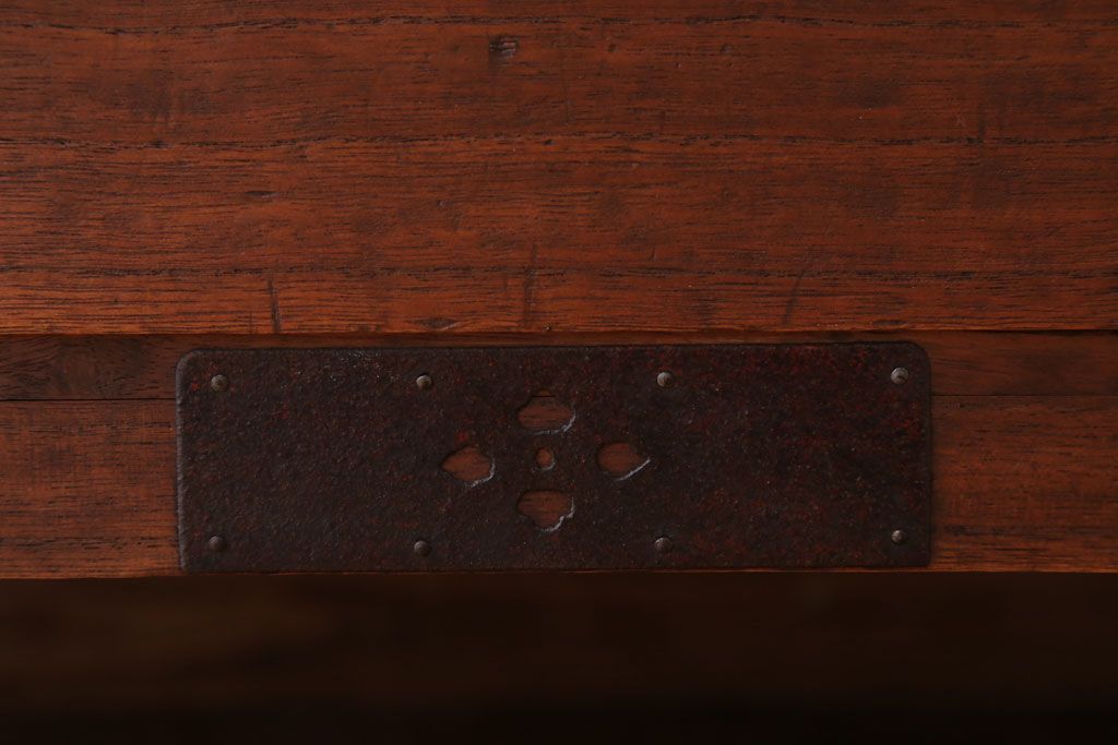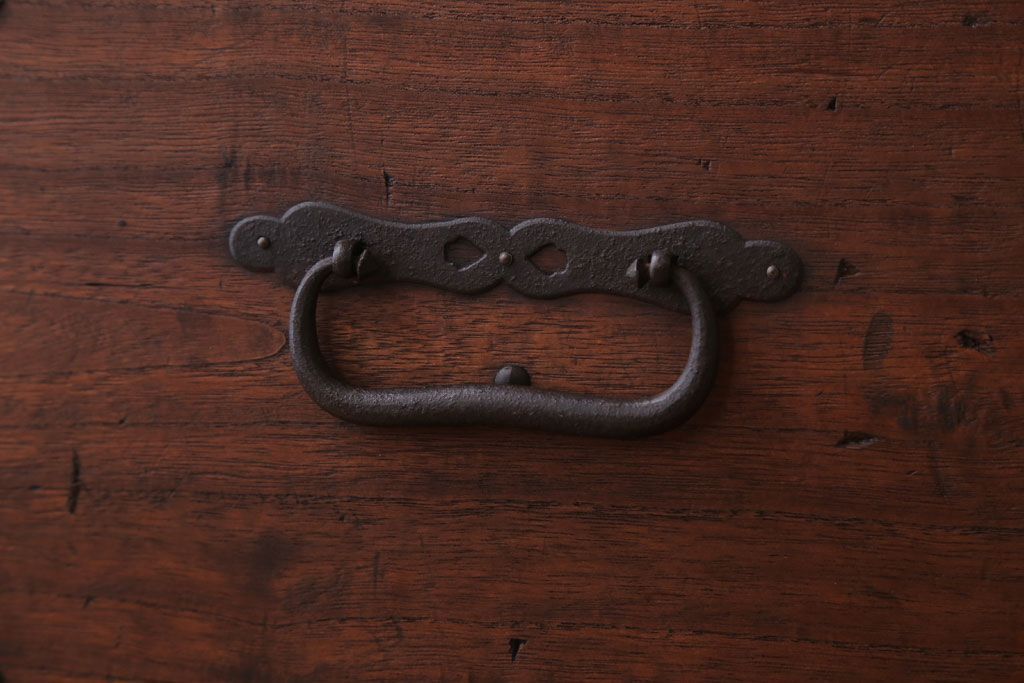 ラフジュ工房> キャビネット・戸棚> テレビ台・ローボード > アンティーク家具 和製アンティーク 鉄脚付き!シンプルな丸金具の時代箪笥ローボード(1)