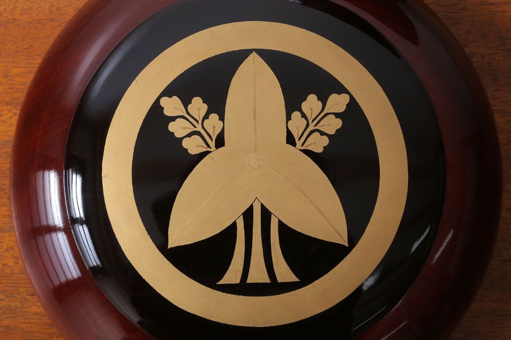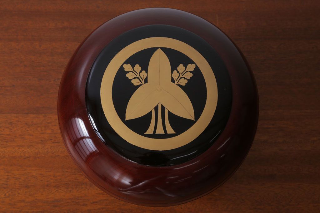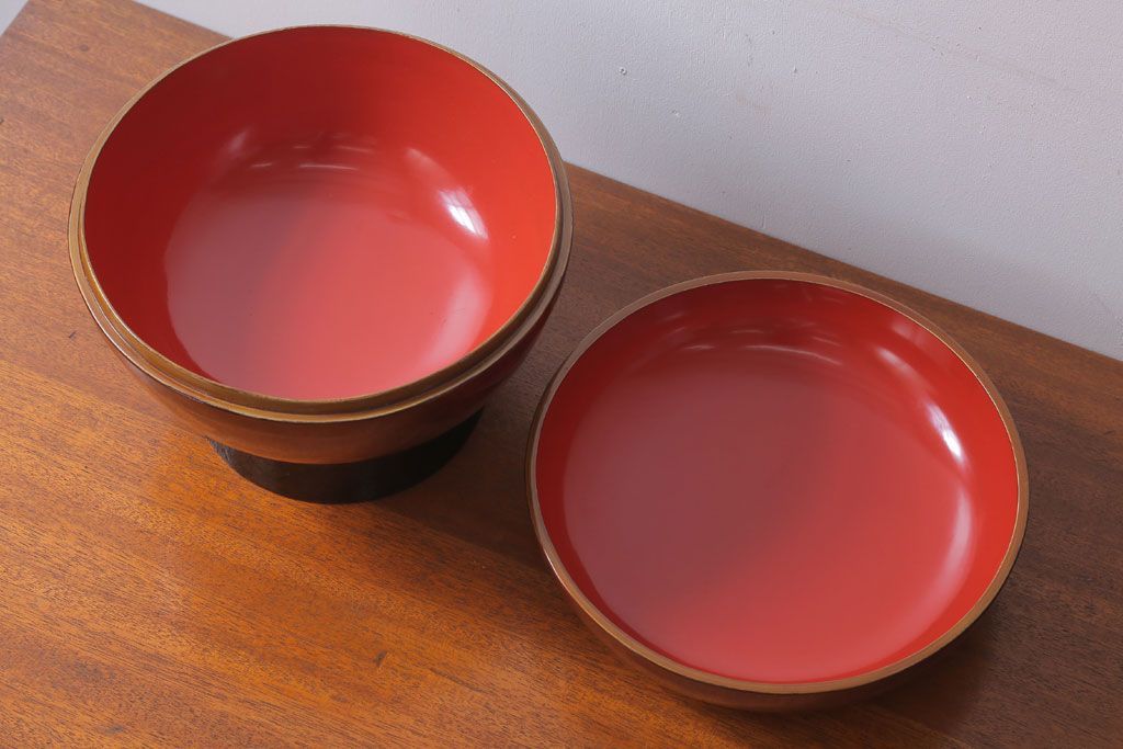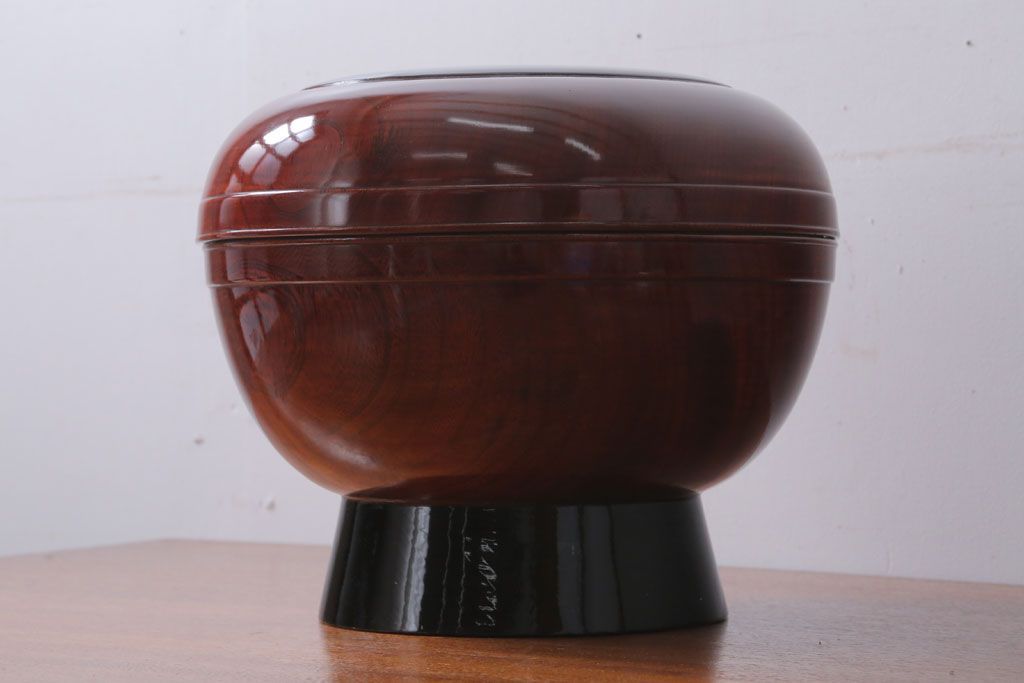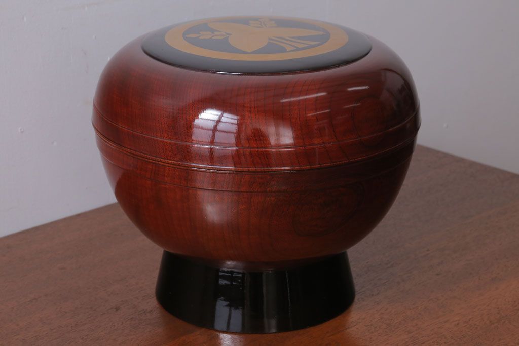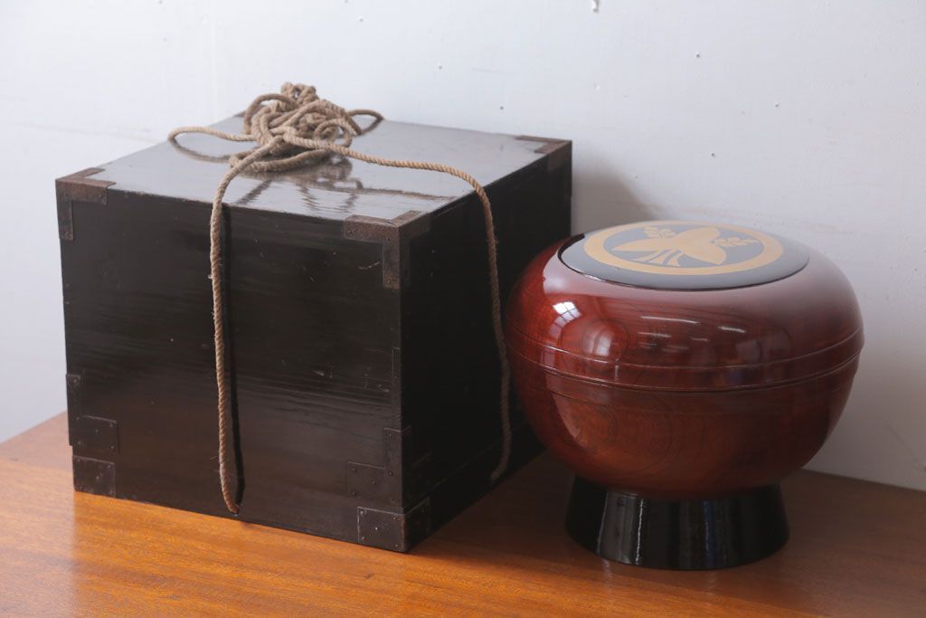 ラフジュ工房> 和食器・茶道具> お椀・茶碗 > 古民具・骨董 明治 総欅漆塗り行器(家紋・漆器・太平)(2)