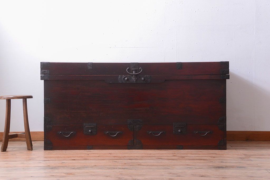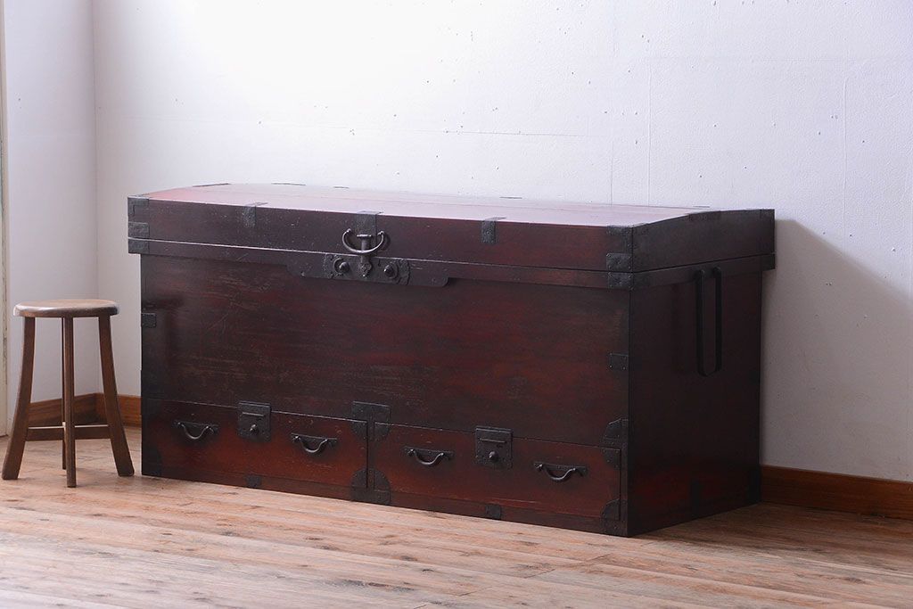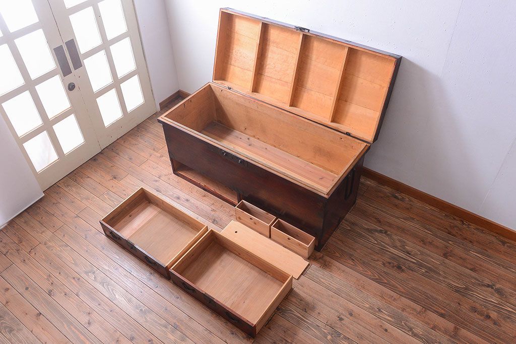 アンティーク雑貨 古民具・骨董 明治期 引き出し付き!大きなアンティーク長持