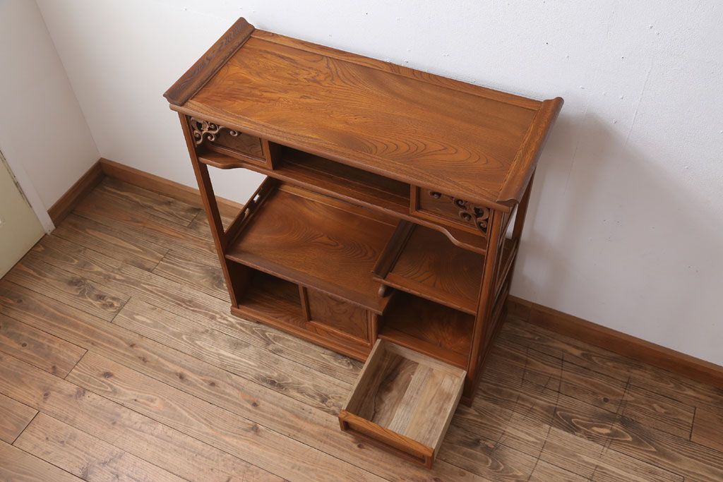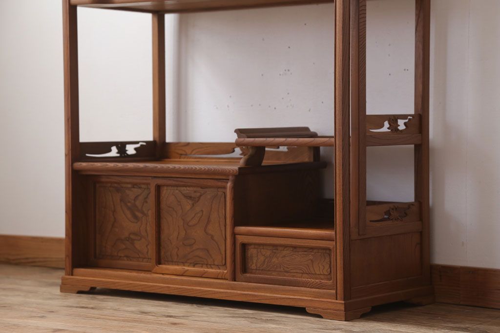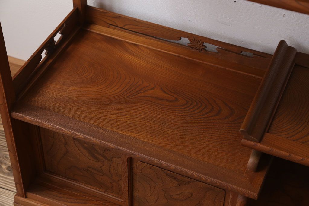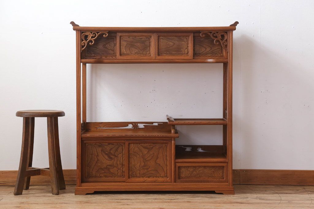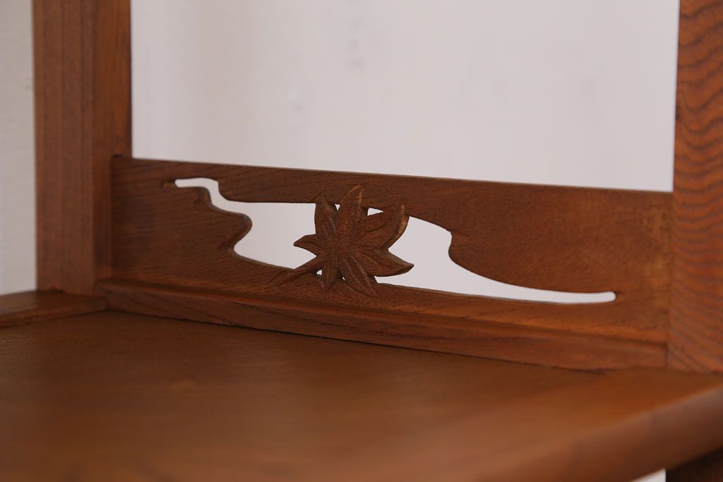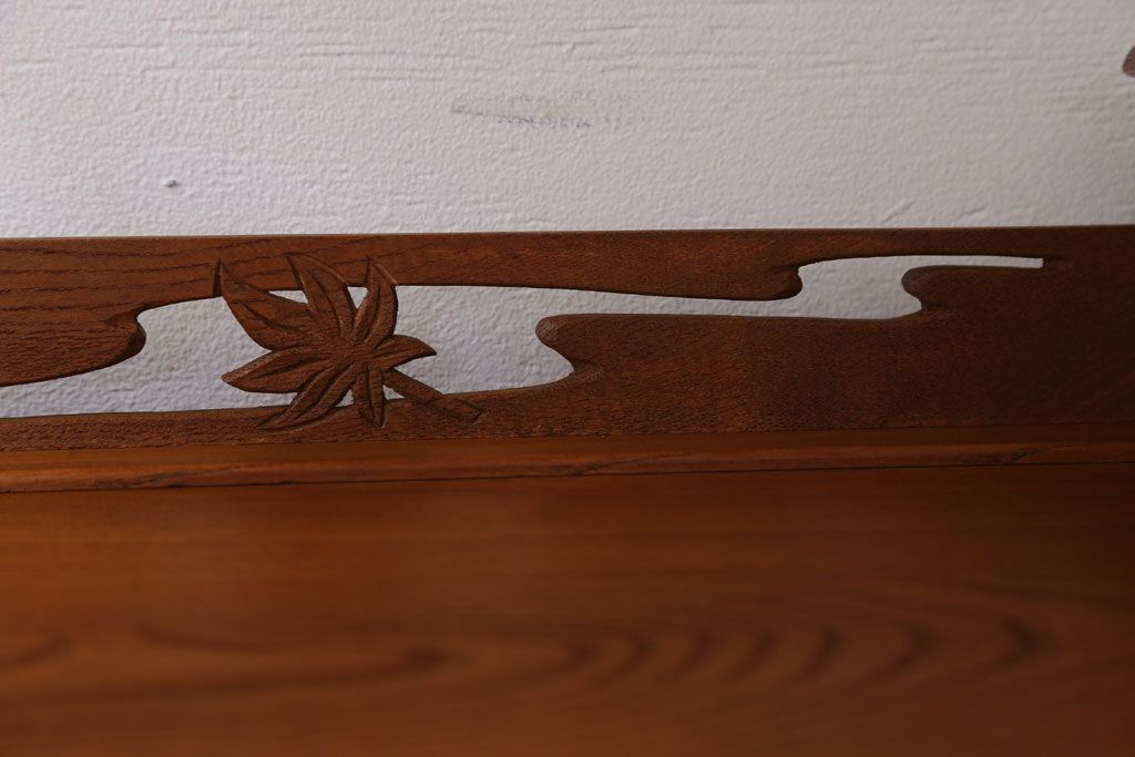 和製アンティーク 総欅材!彫刻が美しい高級美品茶棚(飾り棚)