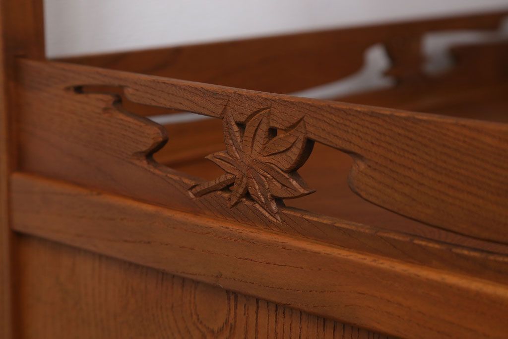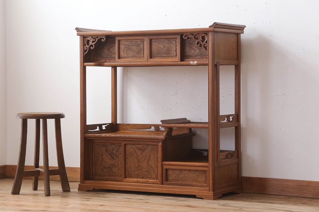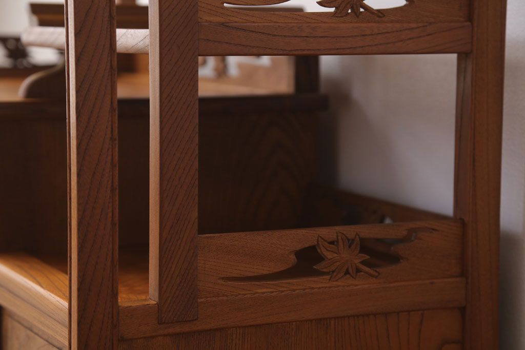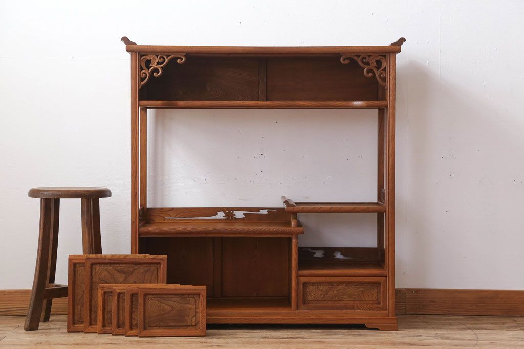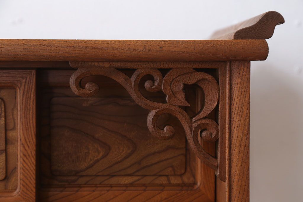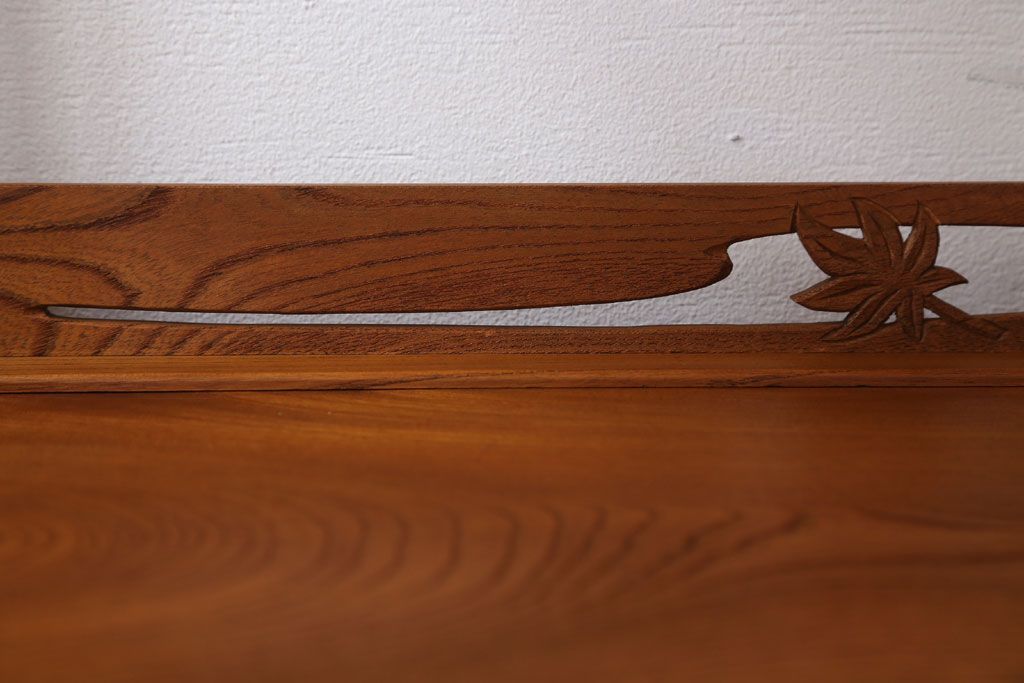 和製アンティーク 総欅材!彫刻が美しい高級美品茶棚(飾り棚)