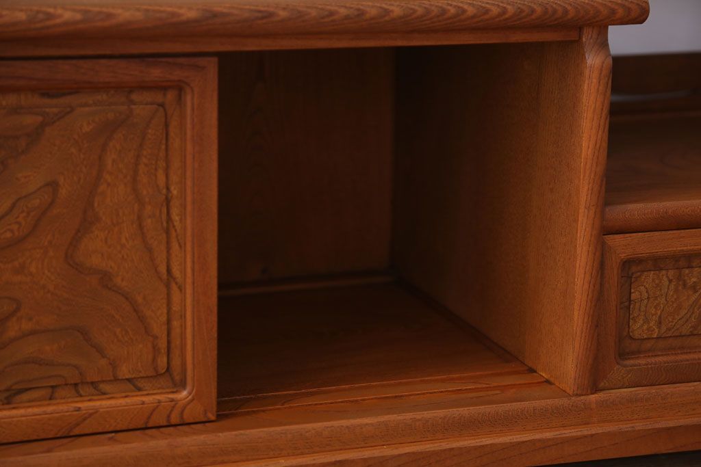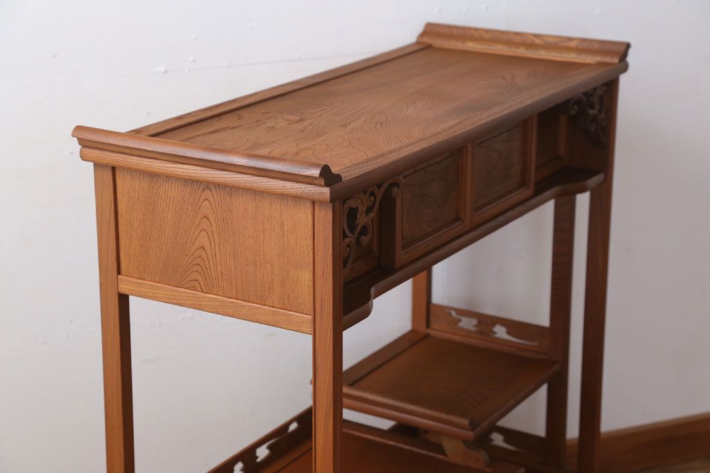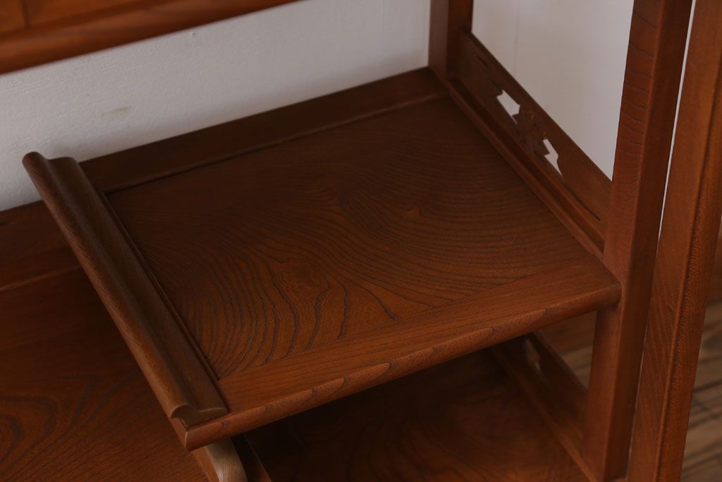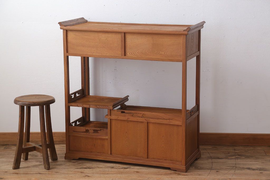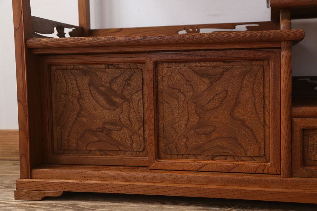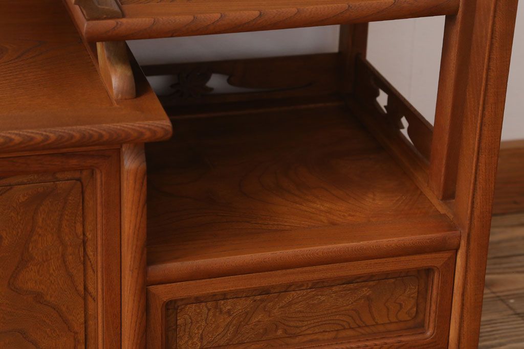 和製アンティーク 総欅材!彫刻が美しい高級美品茶棚(飾り棚)