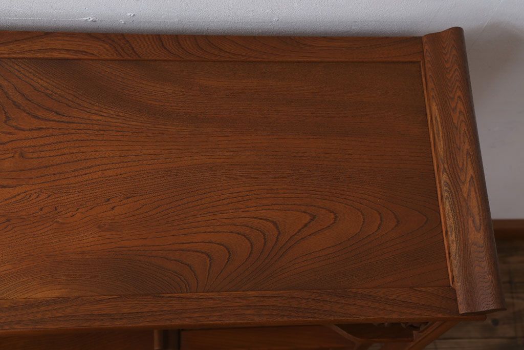 和製アンティーク 総欅材!彫刻が美しい高級美品茶棚(飾り棚)です。