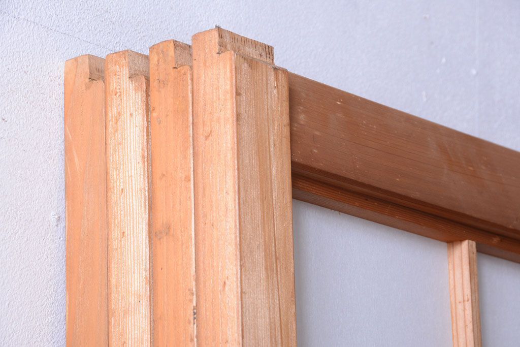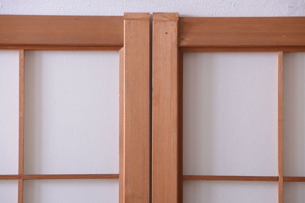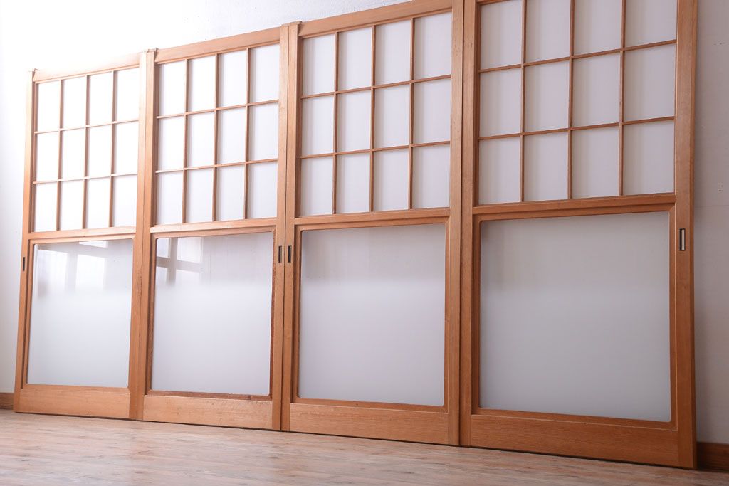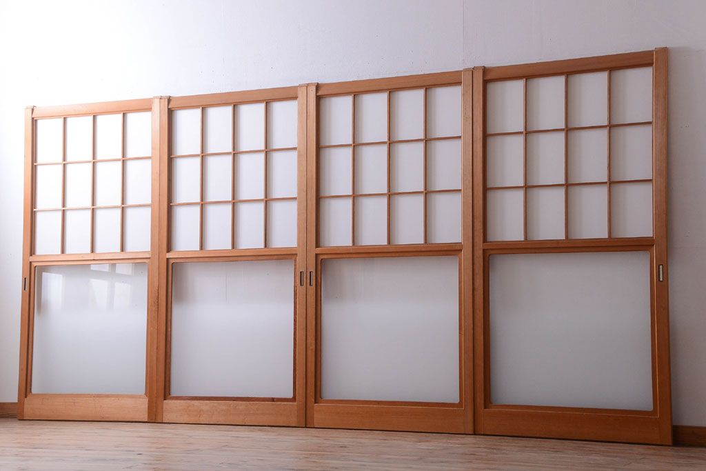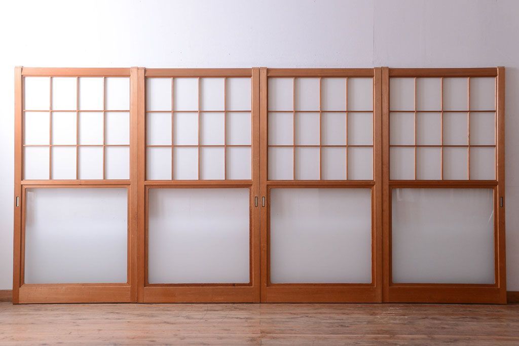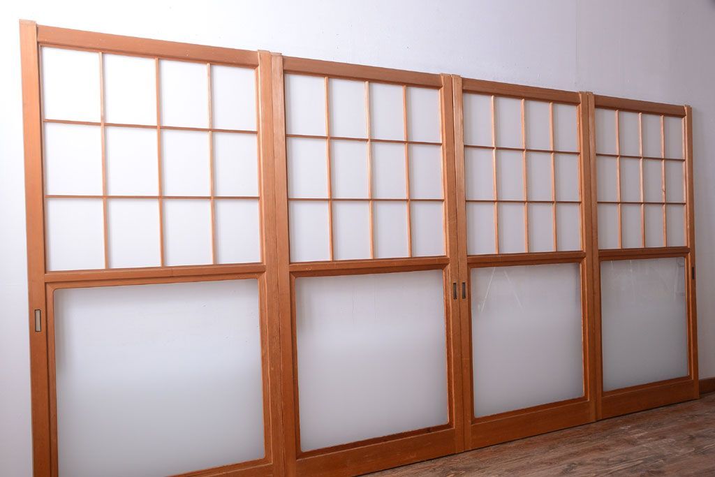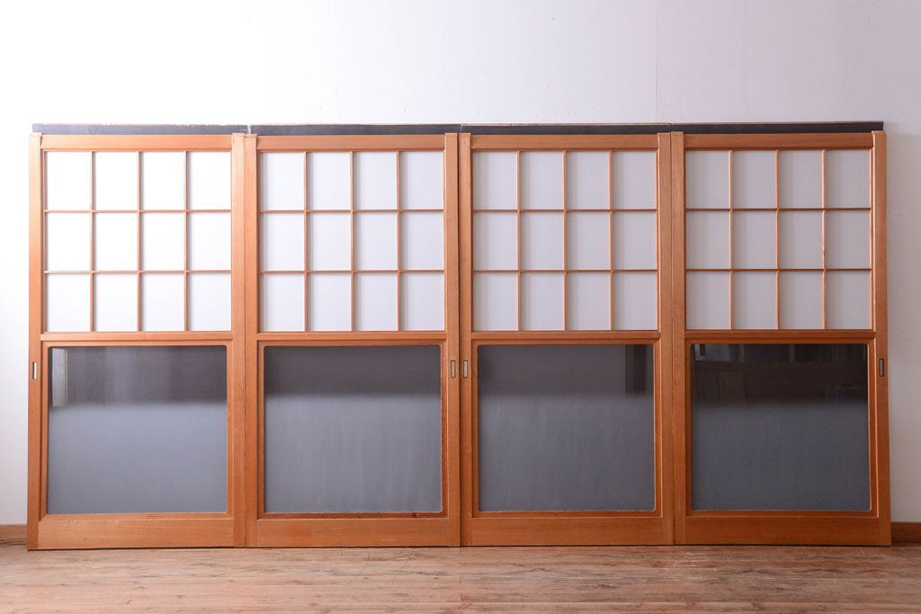 中古 ぼかしガラス入り!雪見障子戸4枚セット(引き戸、擦り上げ障子戸、擦上障子戸)