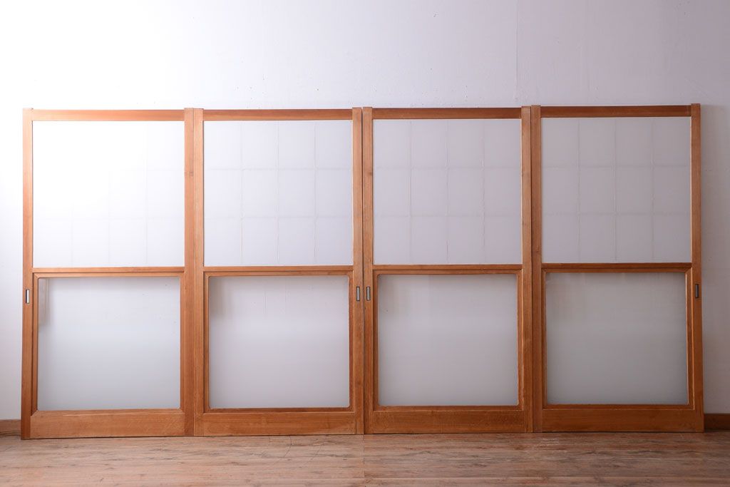 中古 ぼかしガラス入り!雪見障子戸4枚セットです。