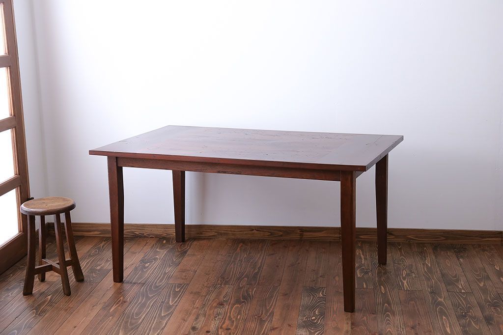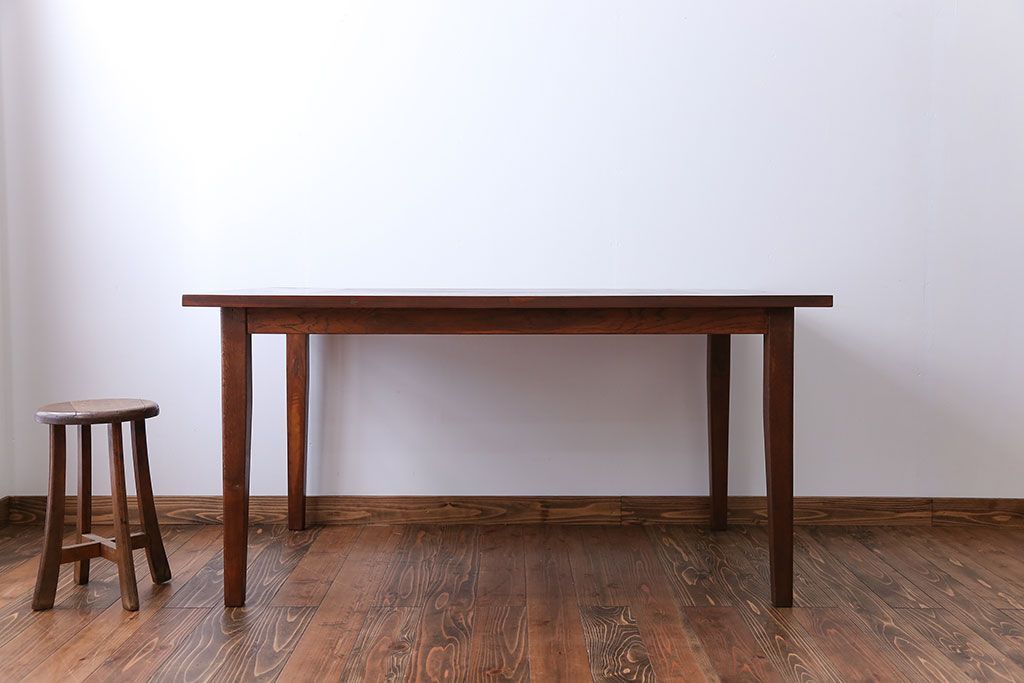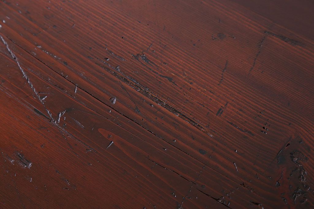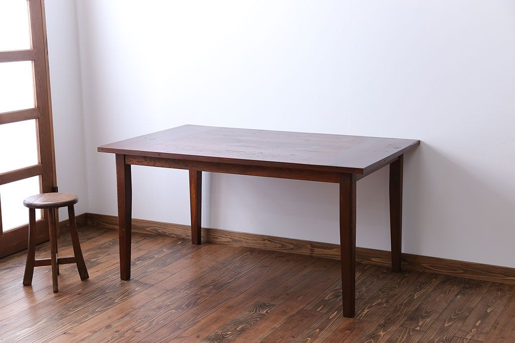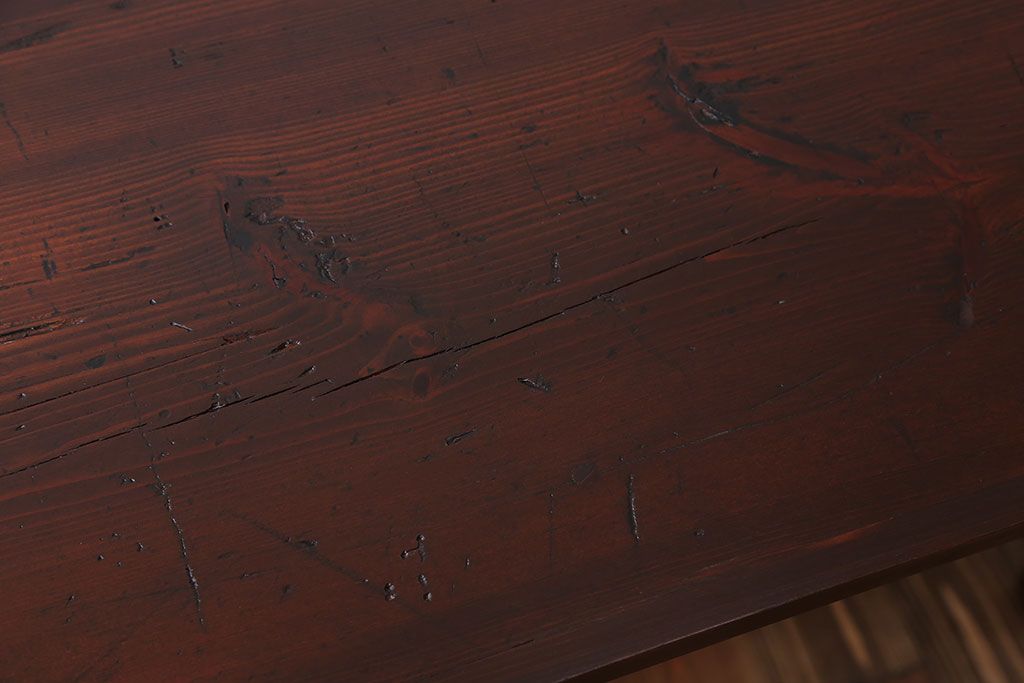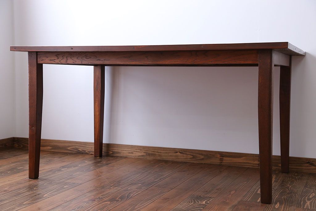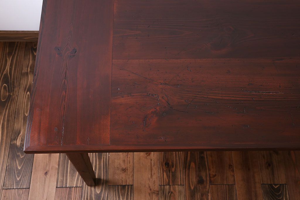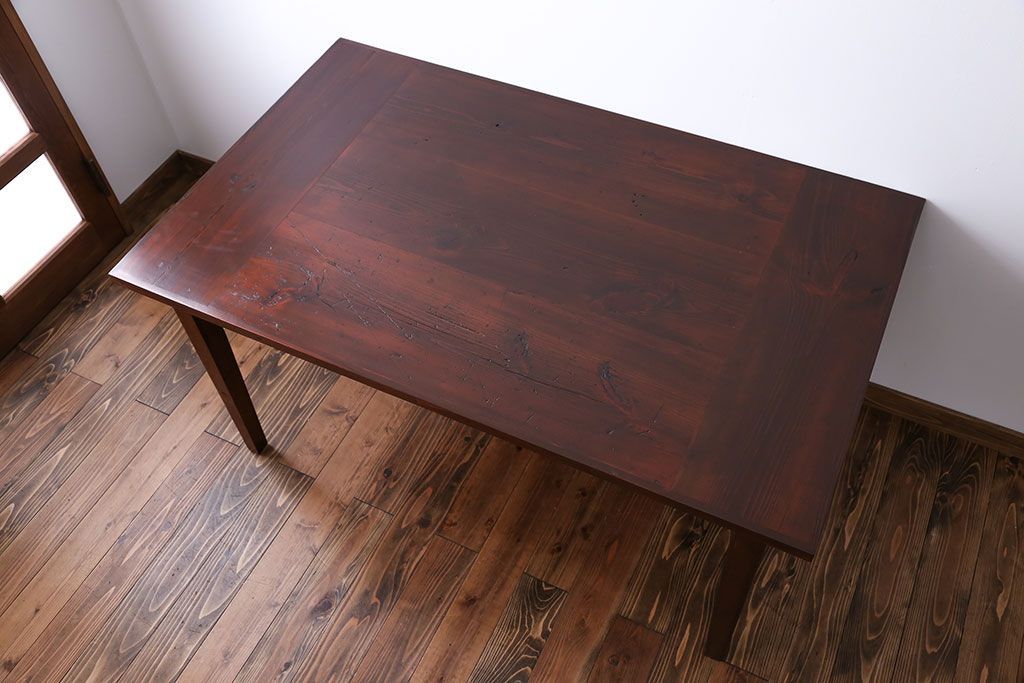 アンティーク家具 古い松材天板のシンプルなダイニングテーブル