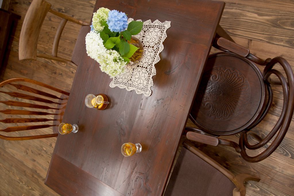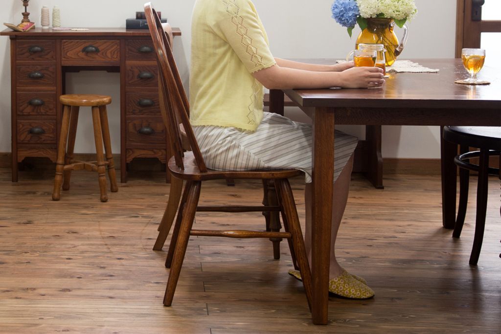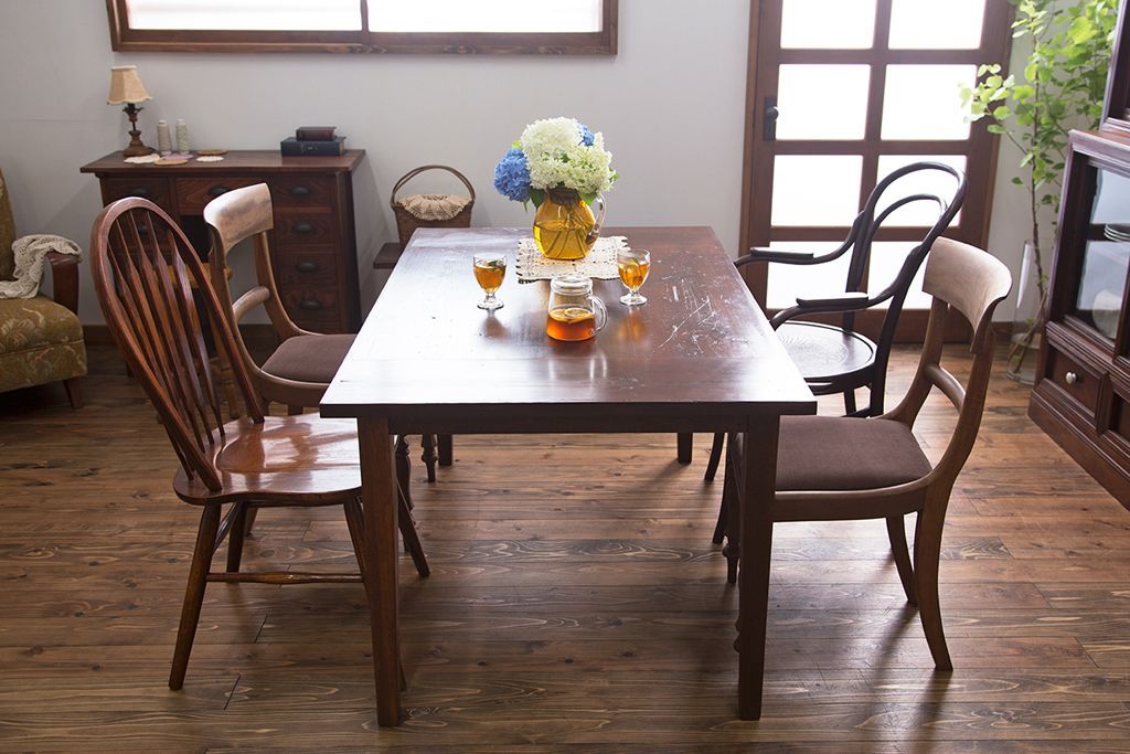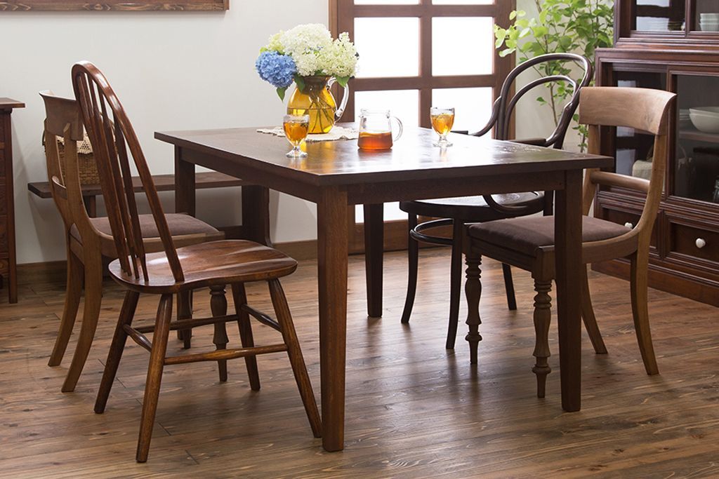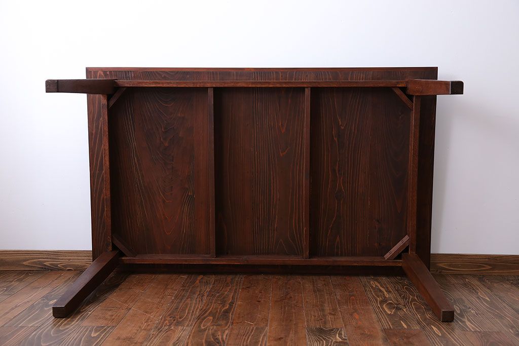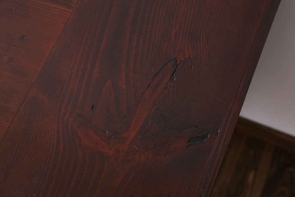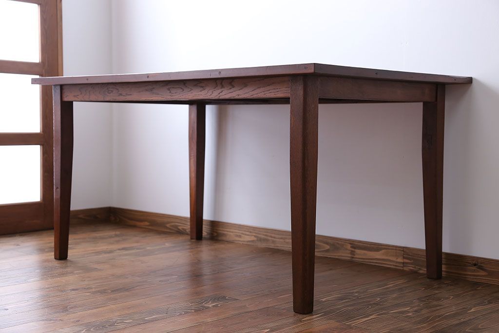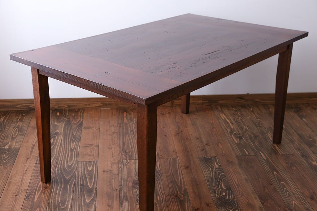 アンティーク家具 古い松材天板のシンプルなダイニングテーブル