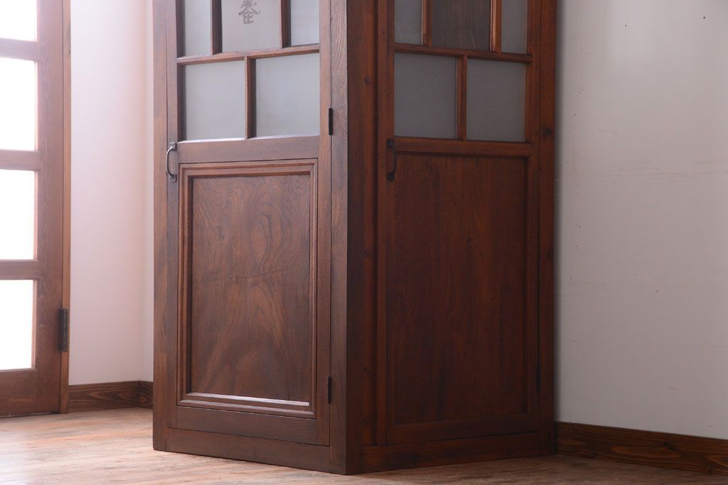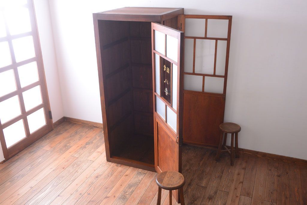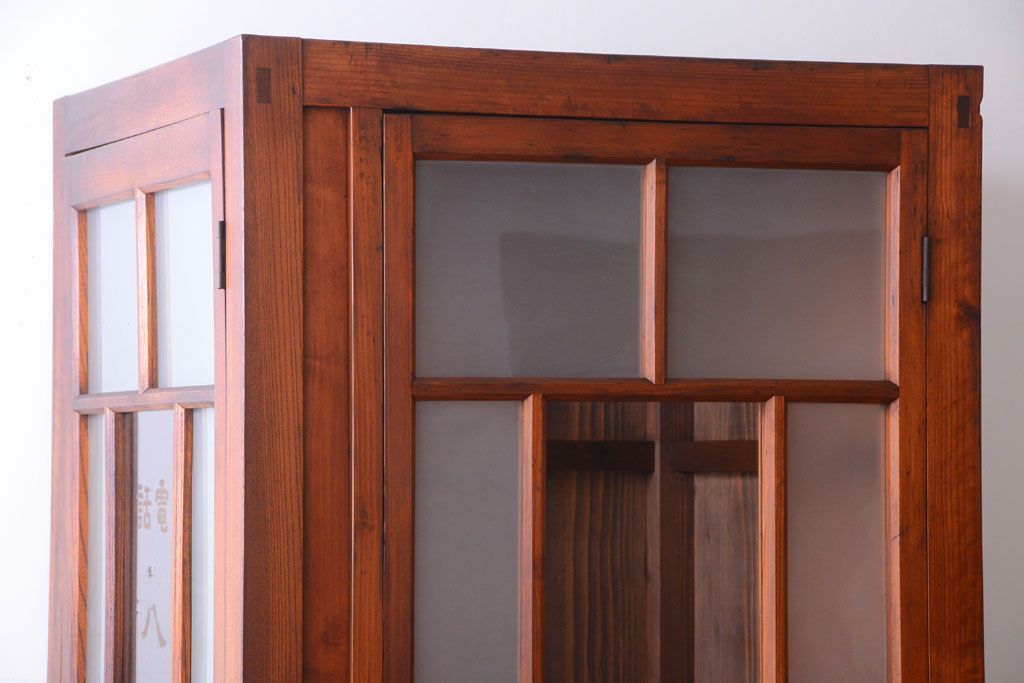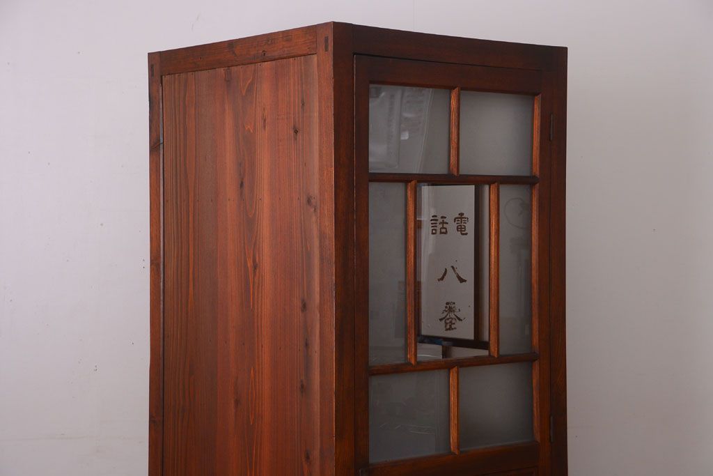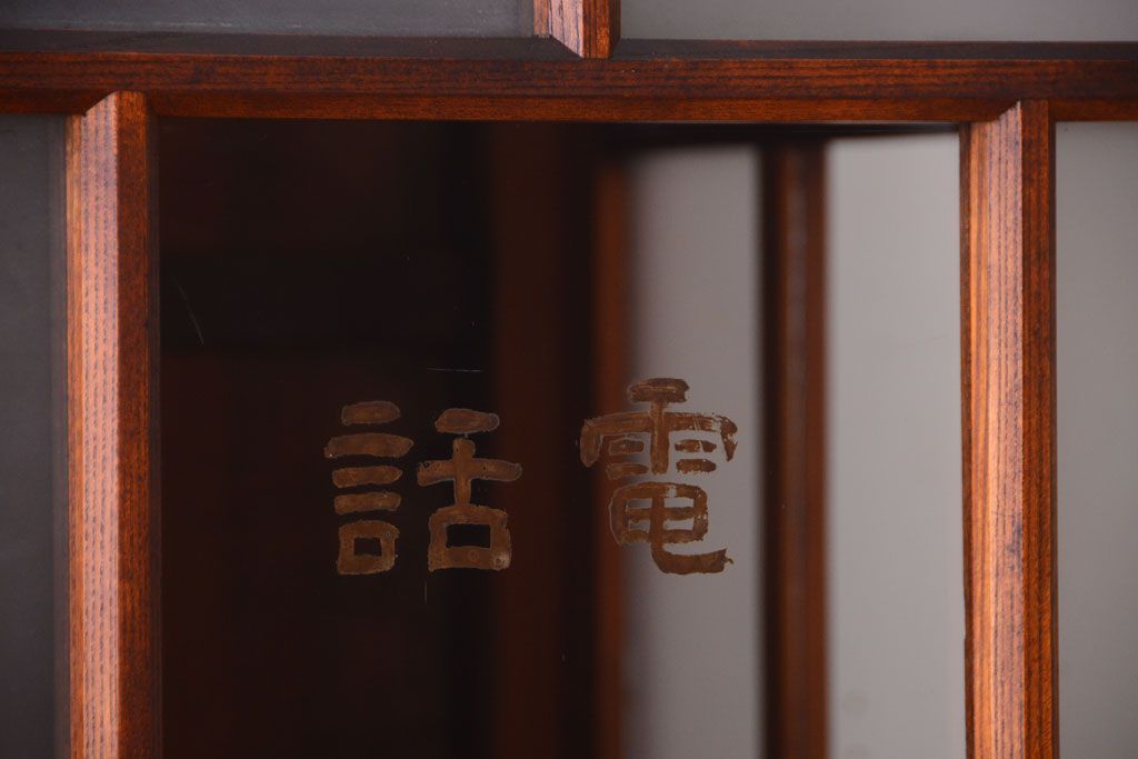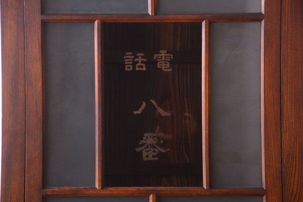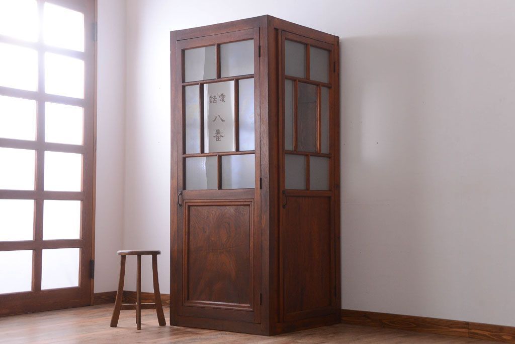 アンティーク雑貨 和製アンティーク 前面欅材!すりガラス入りの古い電話ボックス