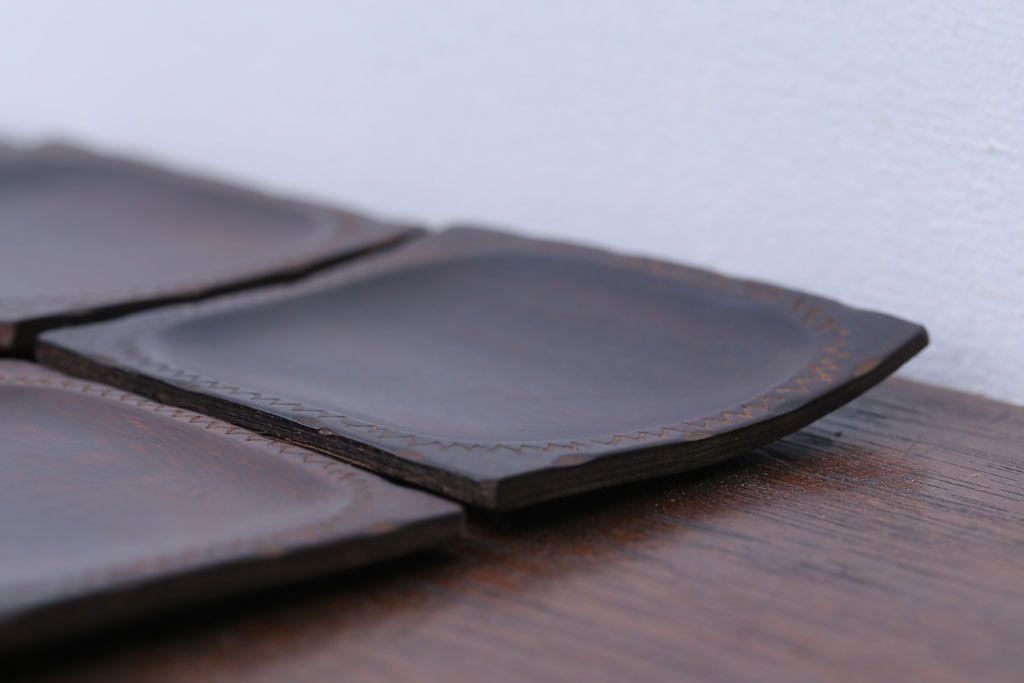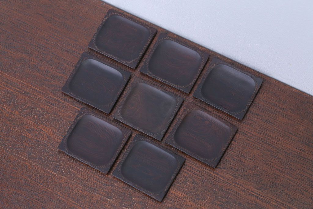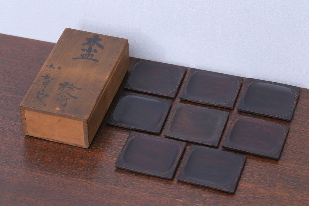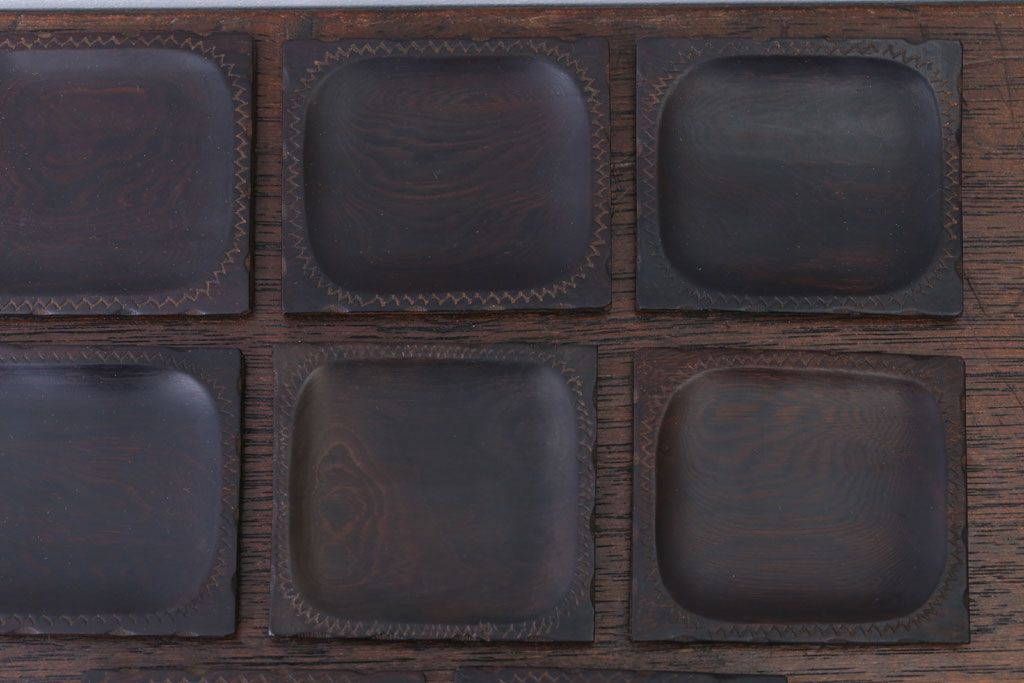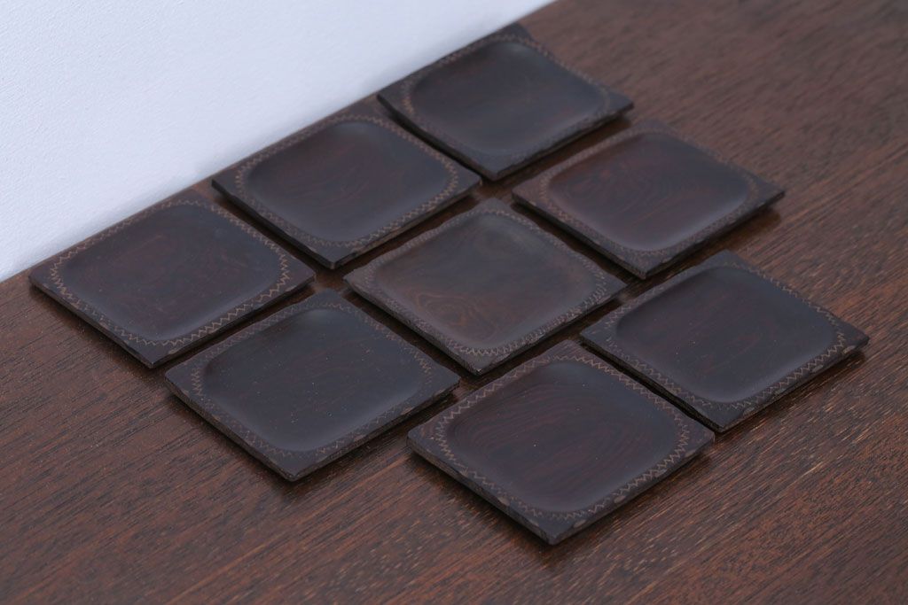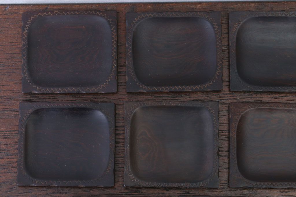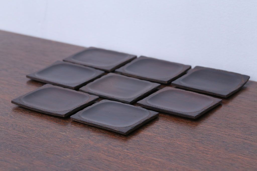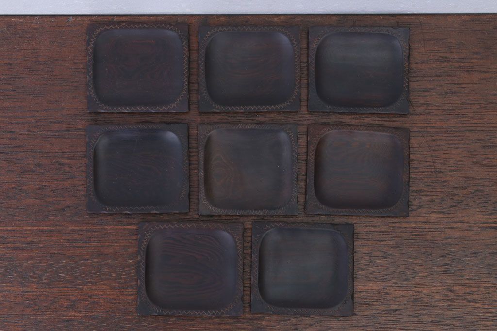 アンティーク雑貨 江戸期 元治元年 木製小皿 8枚セット(黒檀?)