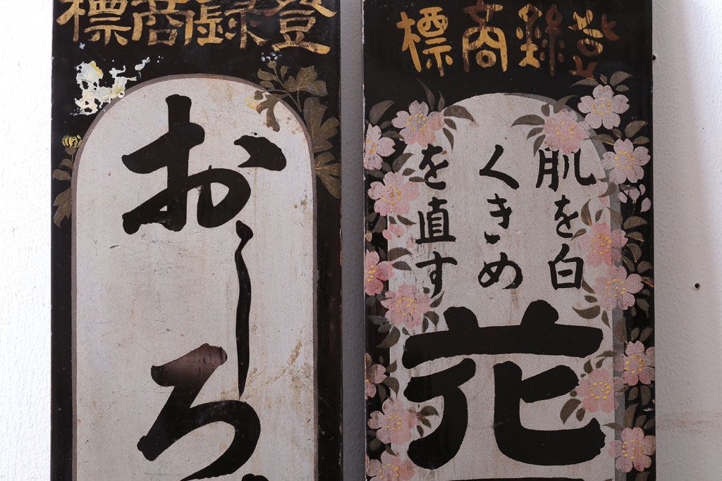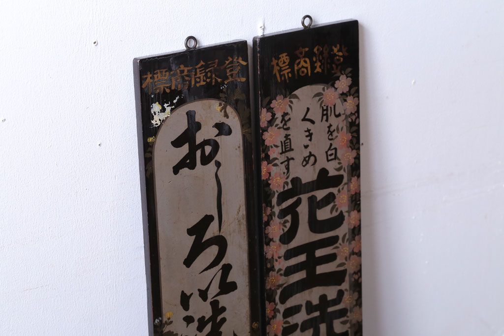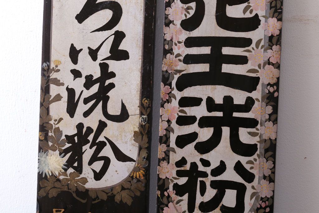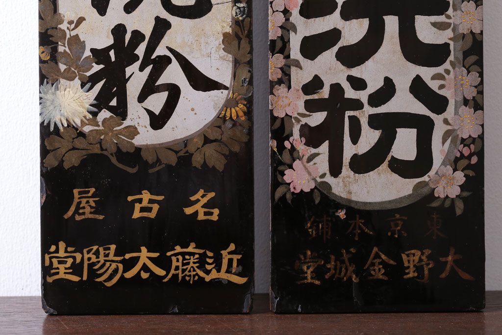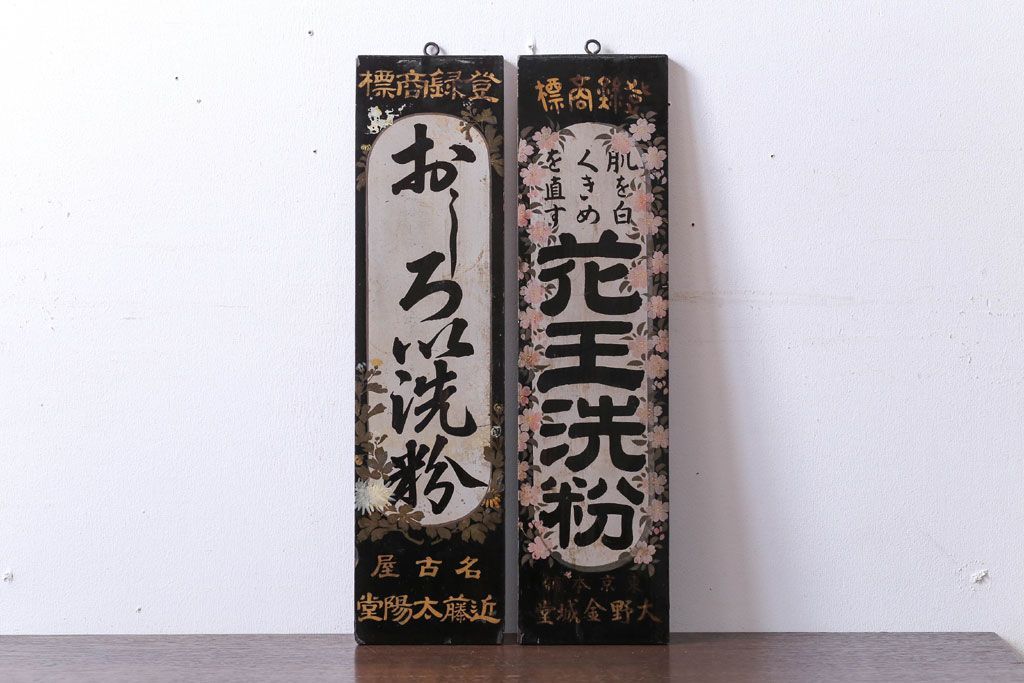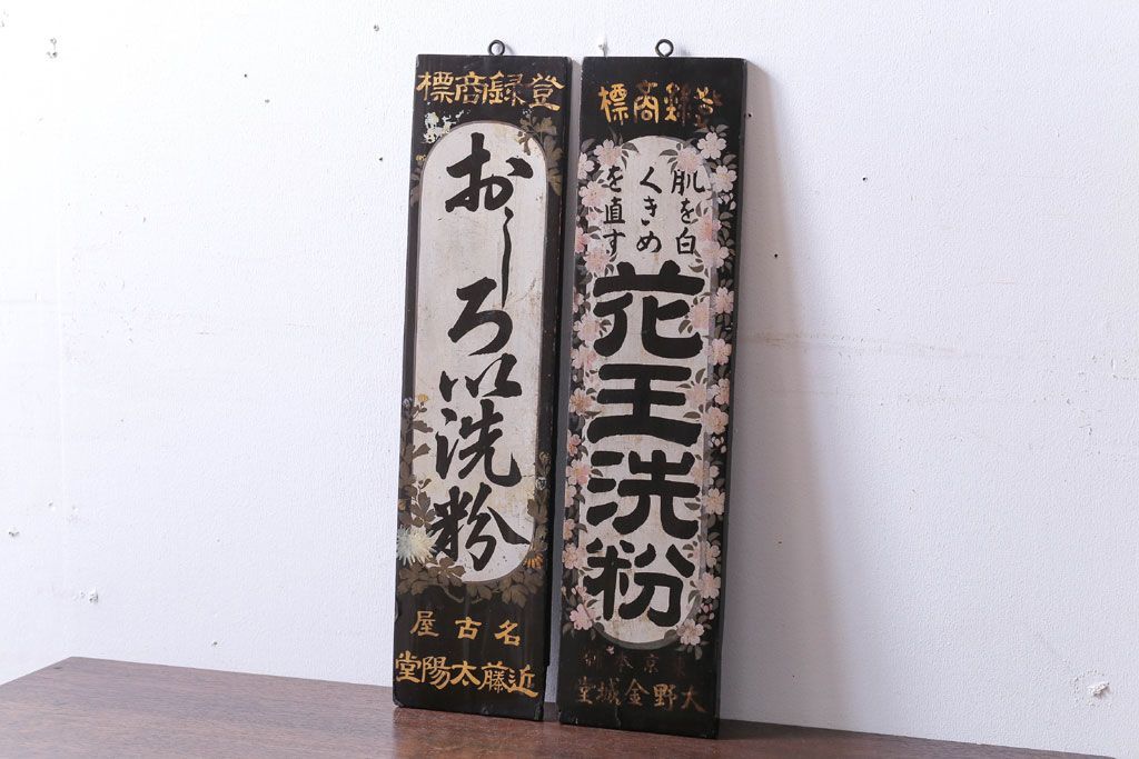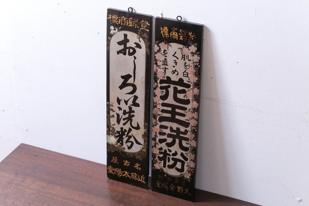 アンティーク雑貨 古い花王洗粉 おしろい洗粉 木製看板2枚