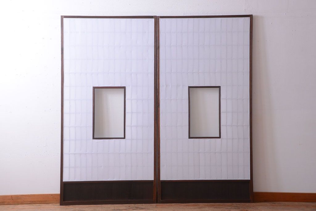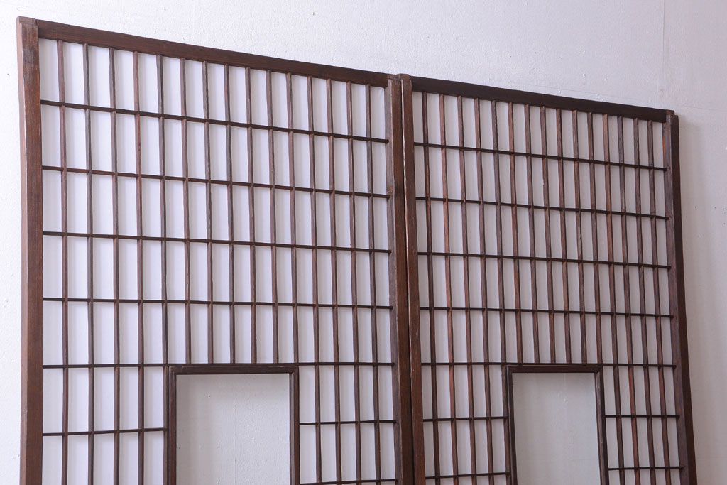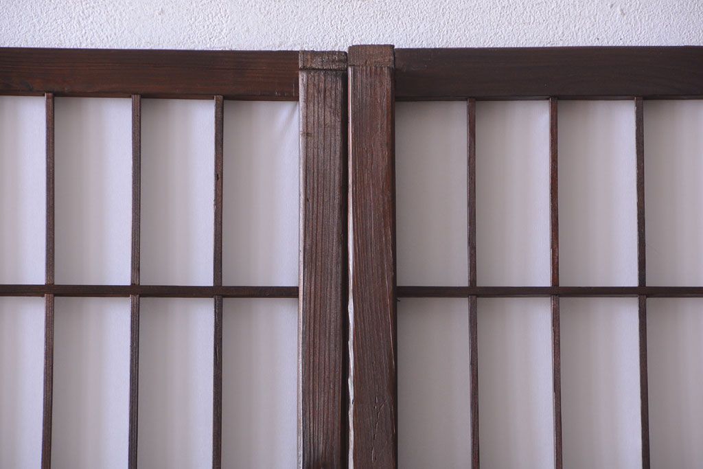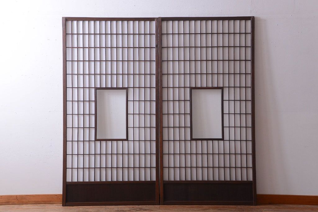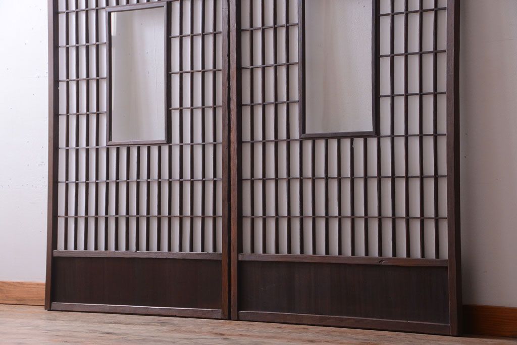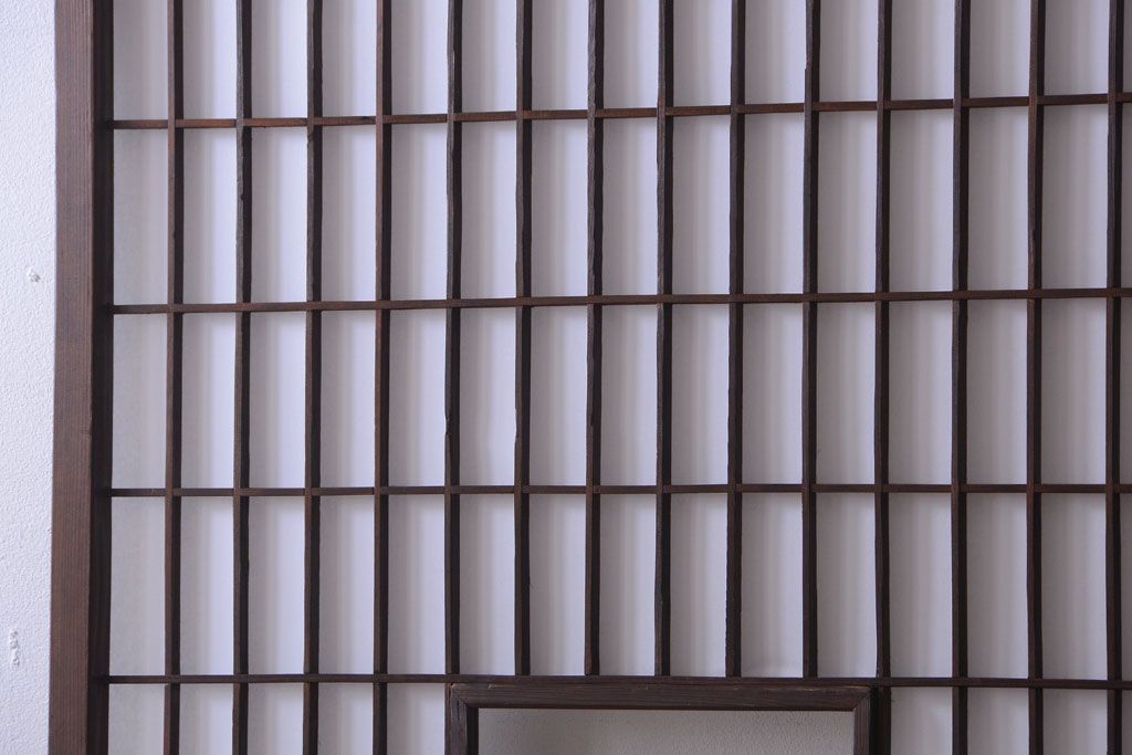 古民具・骨董 古い木のアンティーク縦額障子戸(1)(建具、引き戸)