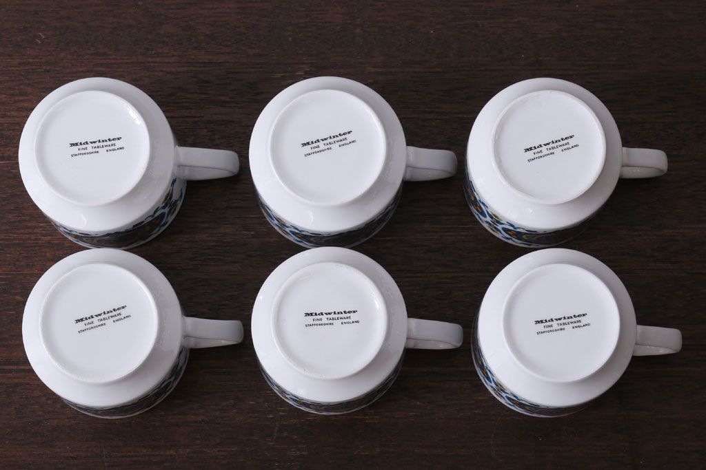 アンティーク雑貨 イギリスビンテージ MIDWINTER(ミッドウィンター)Bengal(ベンガル)シリーズ カップ&ソーサー6客セット
