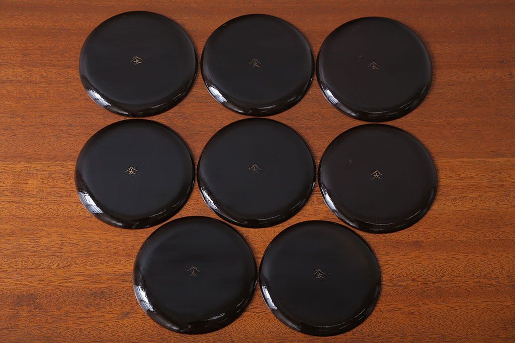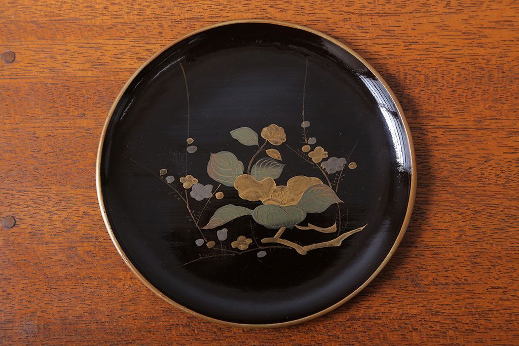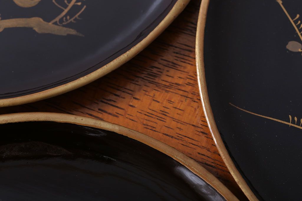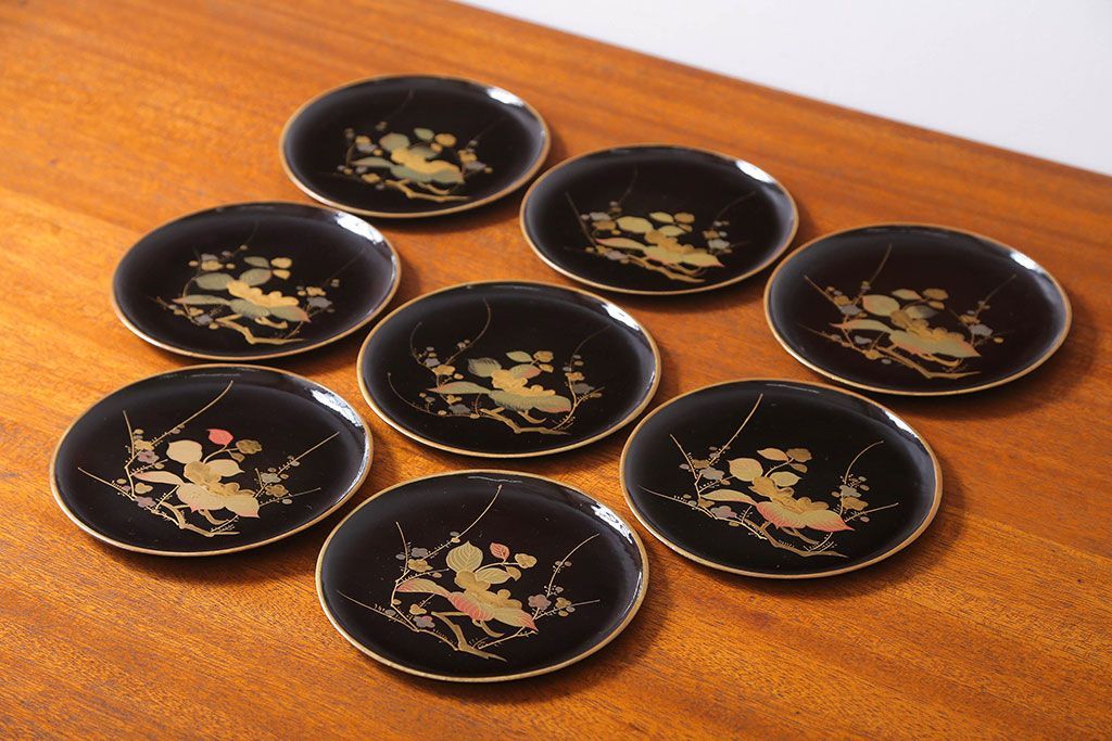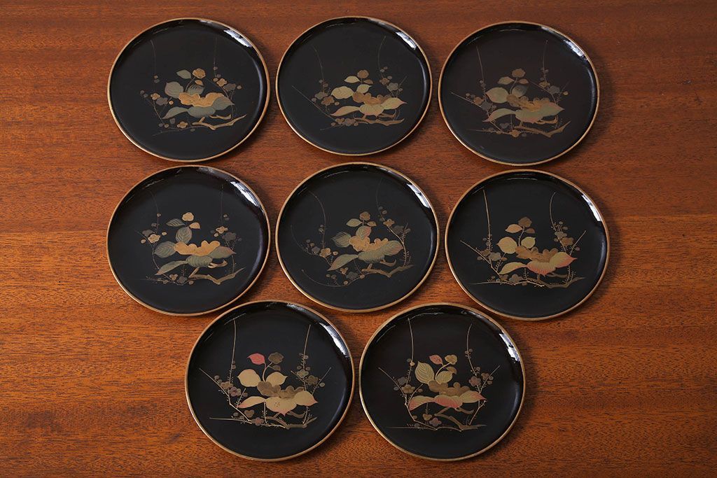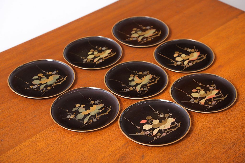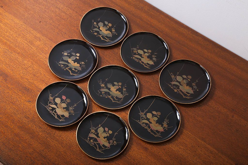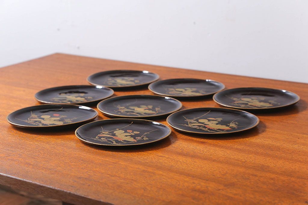 アンティーク雑貨 アンティーク 古い蒔絵の木製皿 8枚セット(漆器)