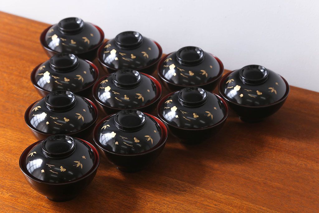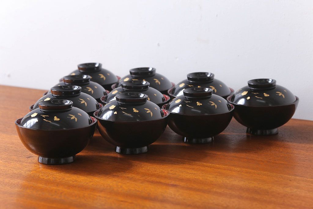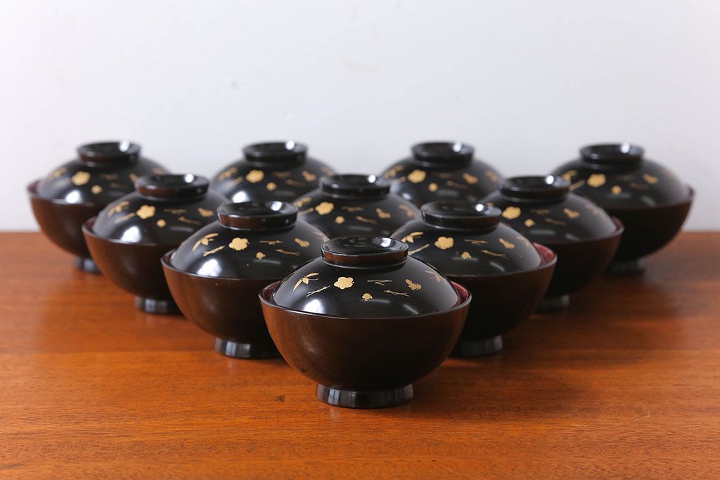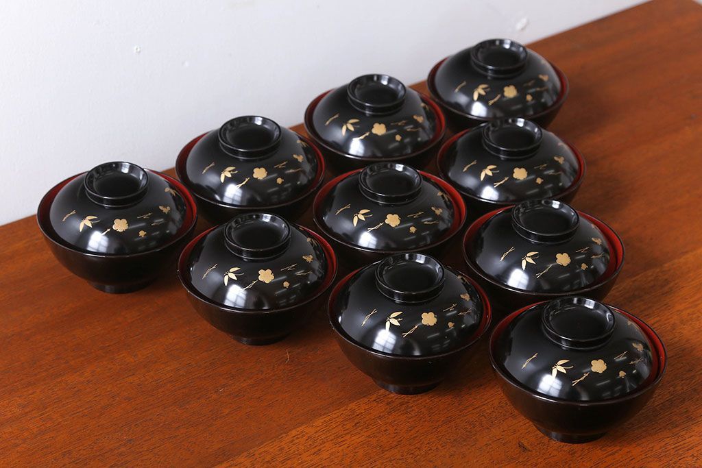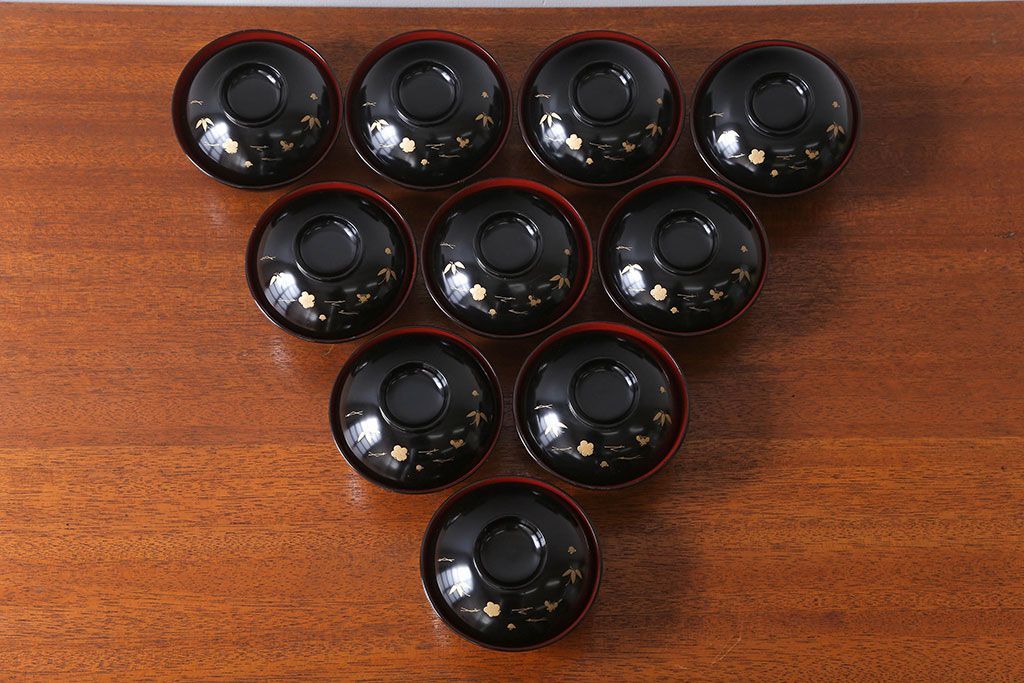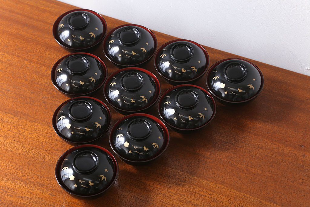 アンティーク雑貨 アンティーク 昭和初期 蒔絵木製椀10客(漆器)(1)