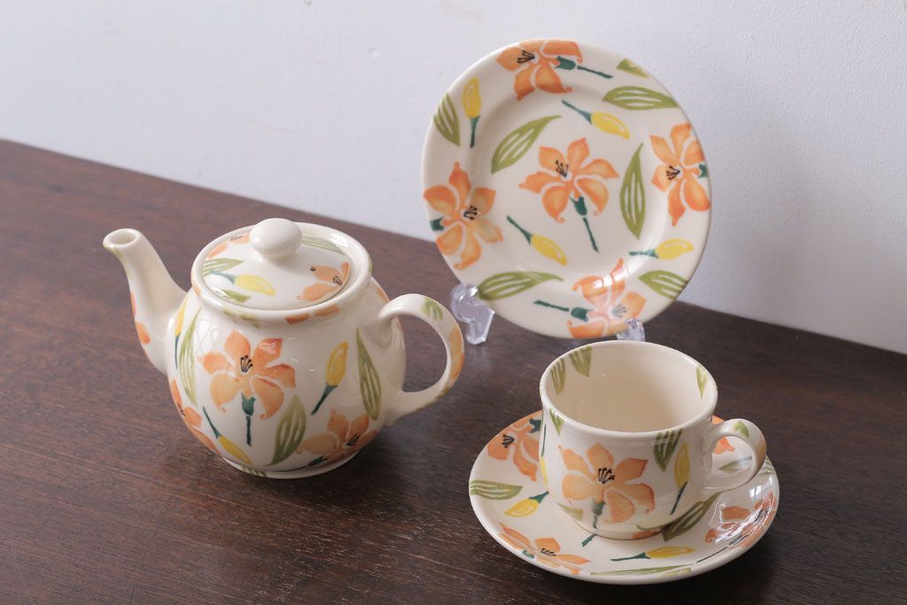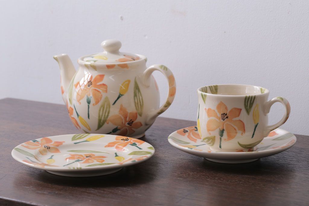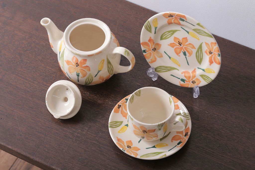 ラフジュ工房> 洋食器・キッチン用品 > アンティーク雑貨 イギリスビンテージ WESTFIELD ART POTTERY ポット・カップ&ソーサーなど4点(洋食器)