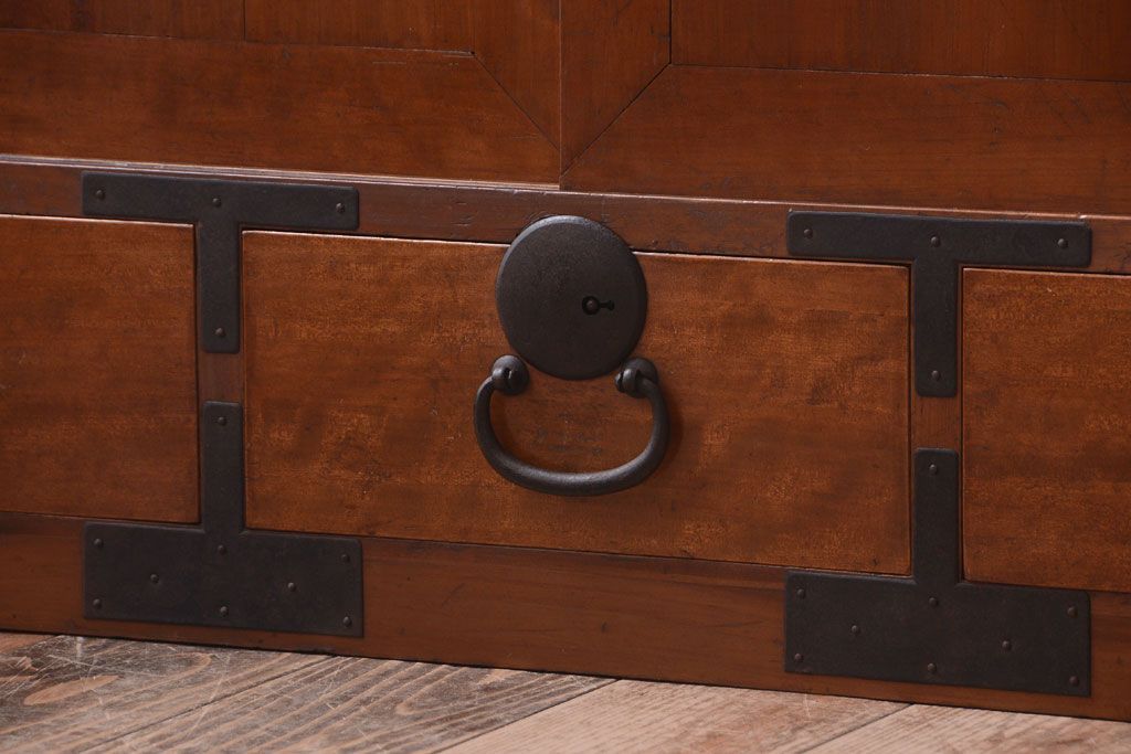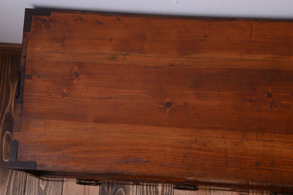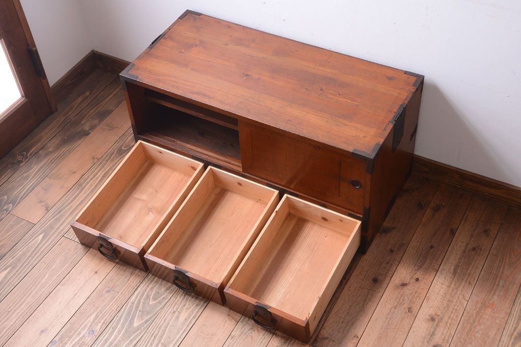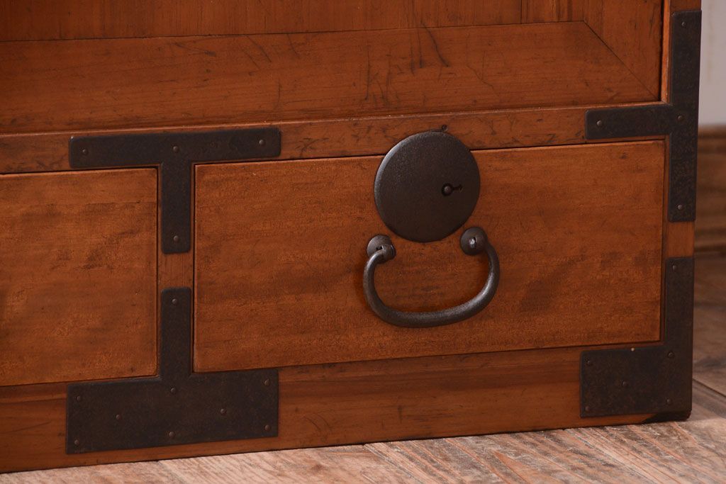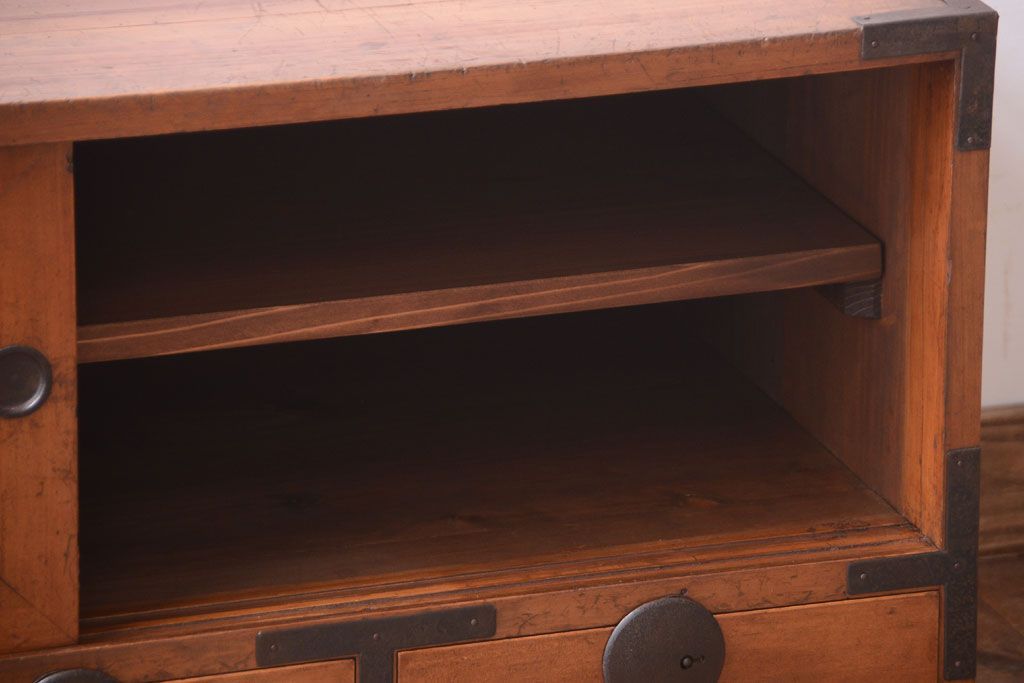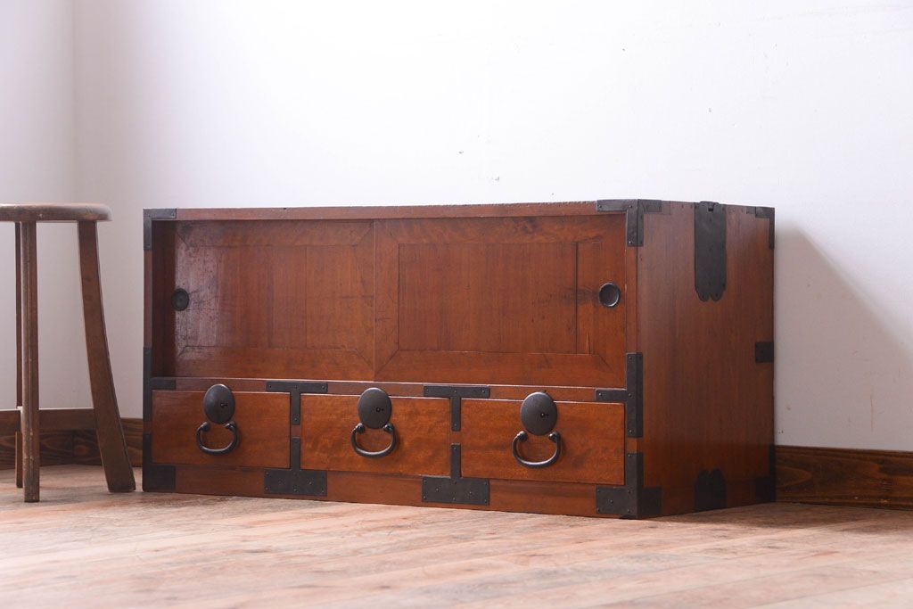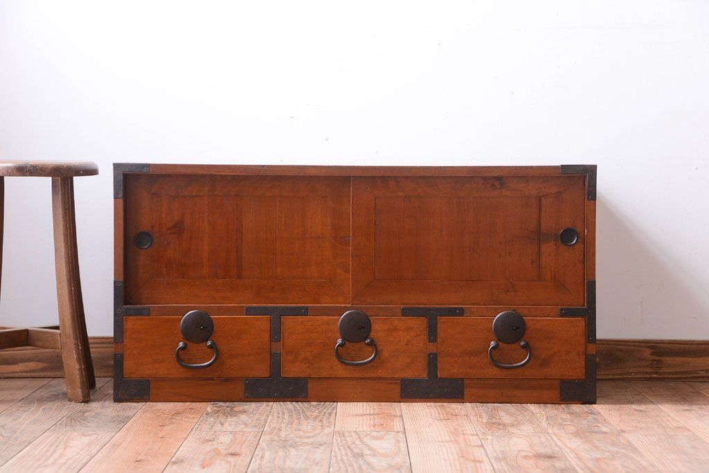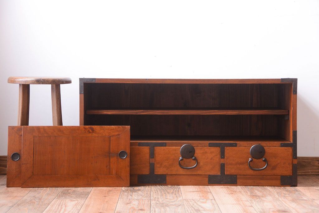 ラフジュ工房> キャビネット・戸棚> テレビ台・ローボード > アンティーク家具 古民具・骨董 シンプルな丸金具のアンティーク時代箪笥ローボード