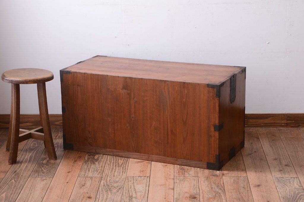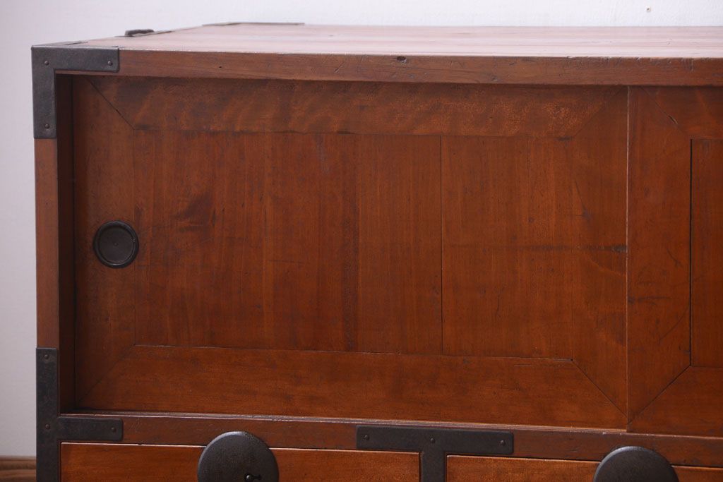 ラフジュ工房> 和箪笥 > アンティーク家具 古民具・骨董 シンプルな丸金具のアンティーク時代箪笥ローボード