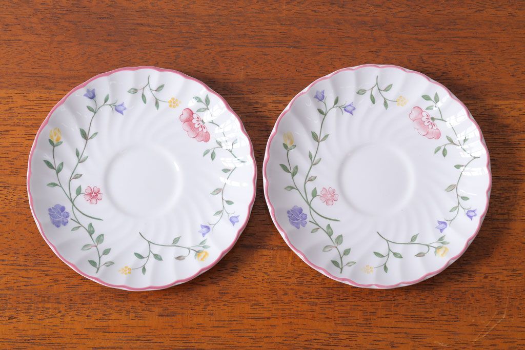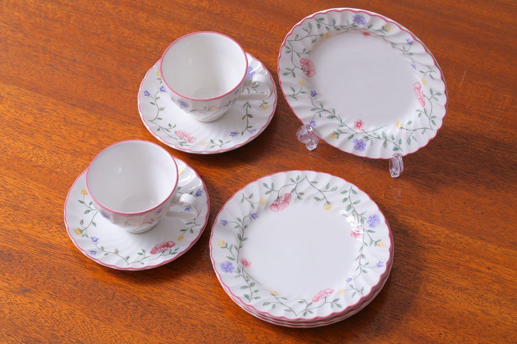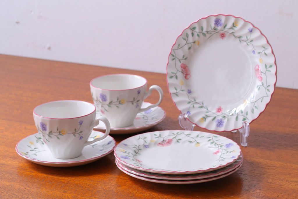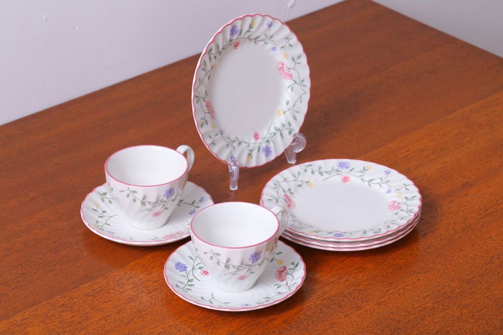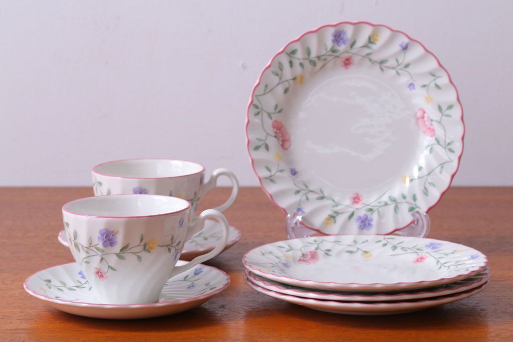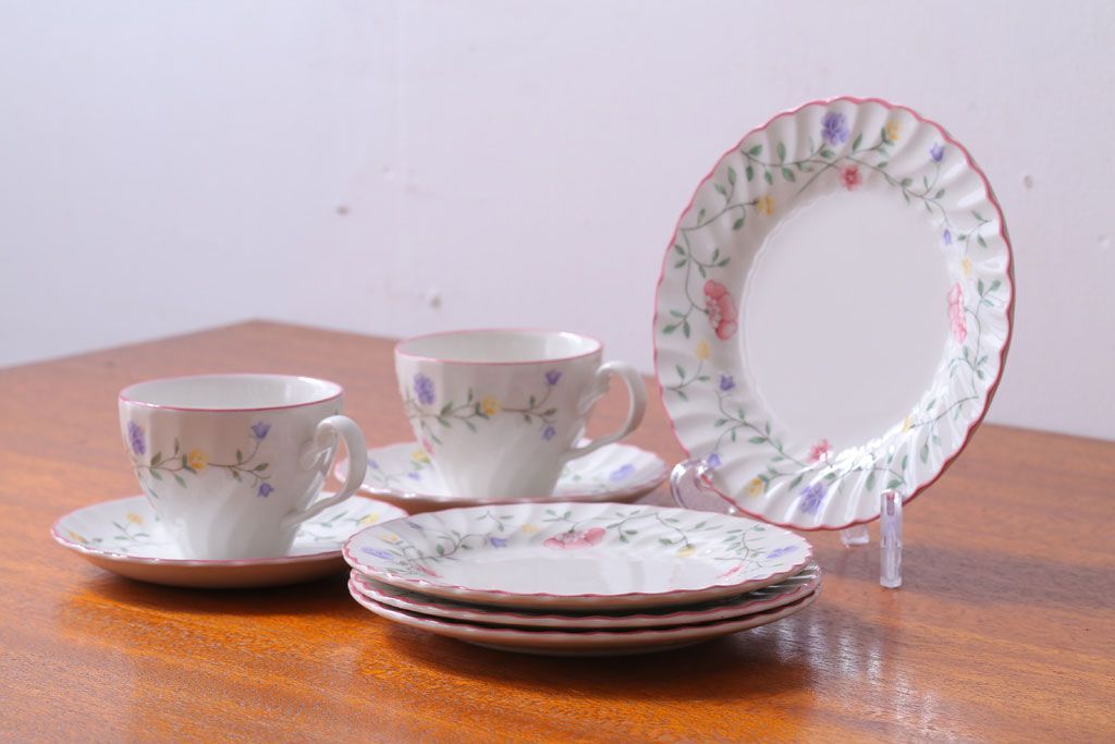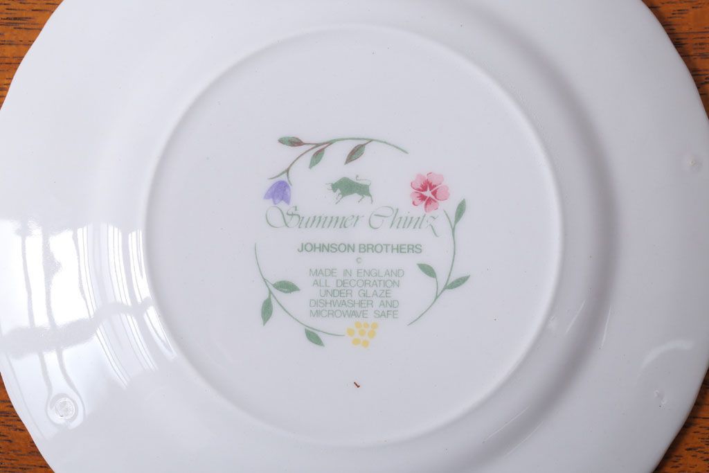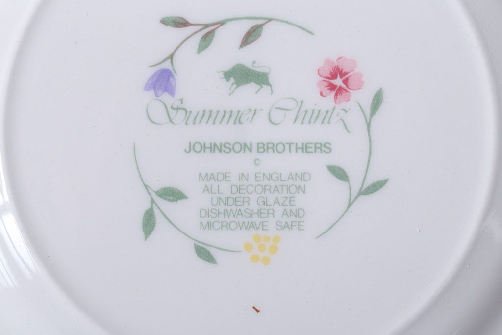 アンティーク雑貨 イギリスビンテージ JOHNSON BROTHERS(ジョンソン・ブラザーズ)SUMMER CHINTZ(サマーチンツ)シリーズ カップ&ソーサー・皿など6点(洋食器)
