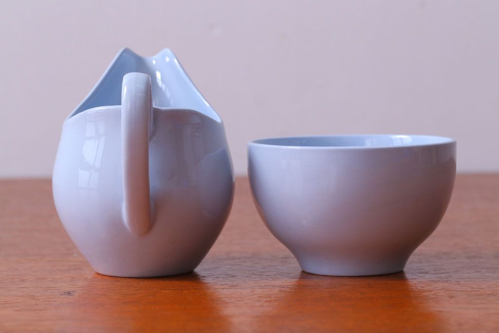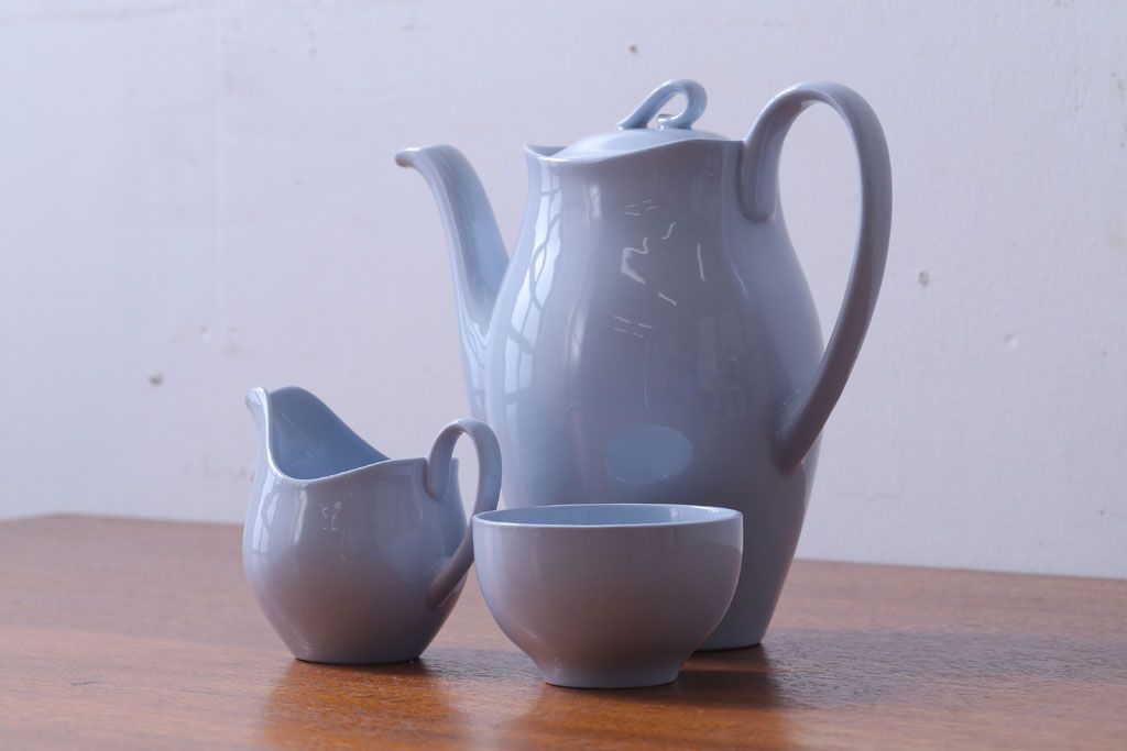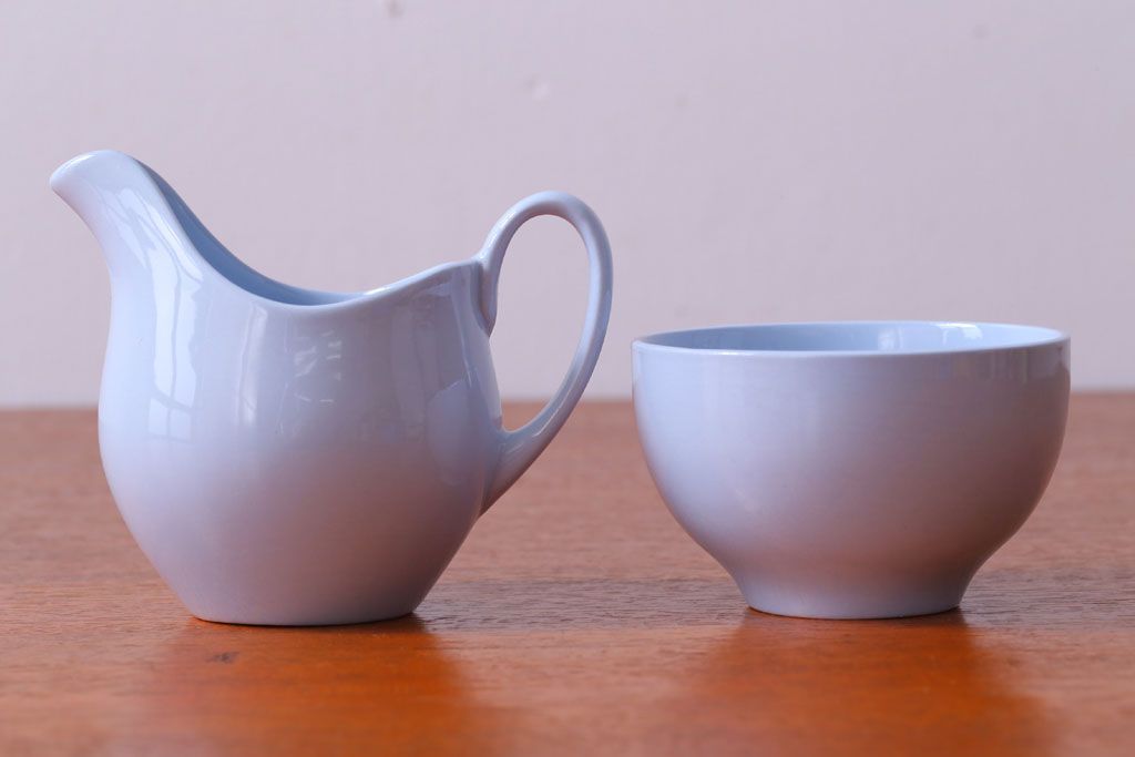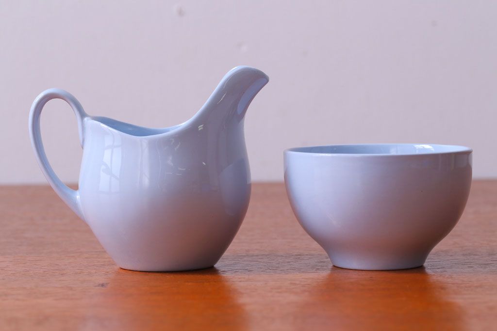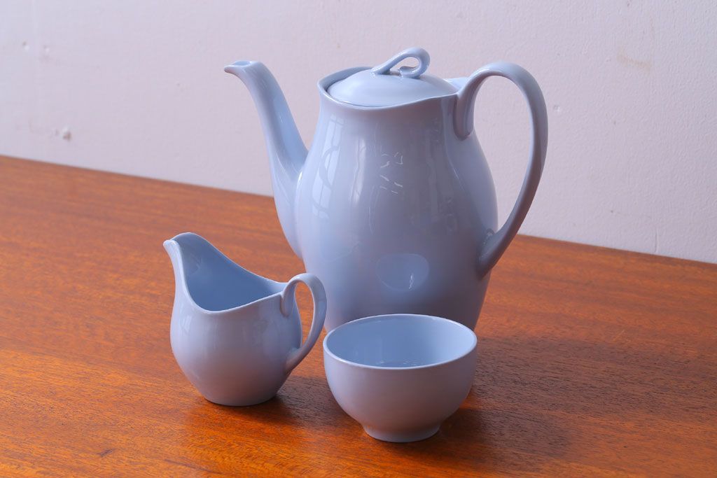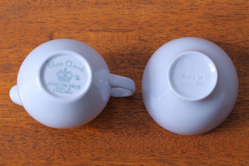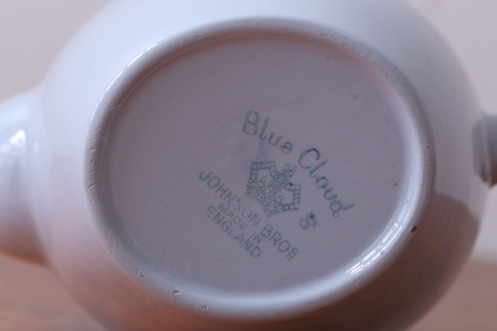 イギリスビンテージ JOHNSON BROTHERS(ジョンソン・ブラザーズ)BLUE CLOUD(ブルークラウド)シリーズ ポット・シュガー・クリーマー3点(洋食器)