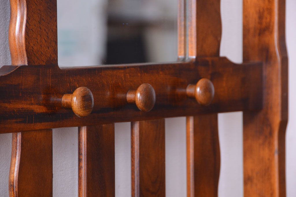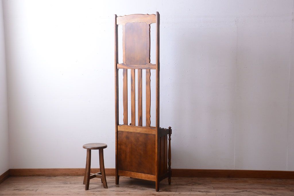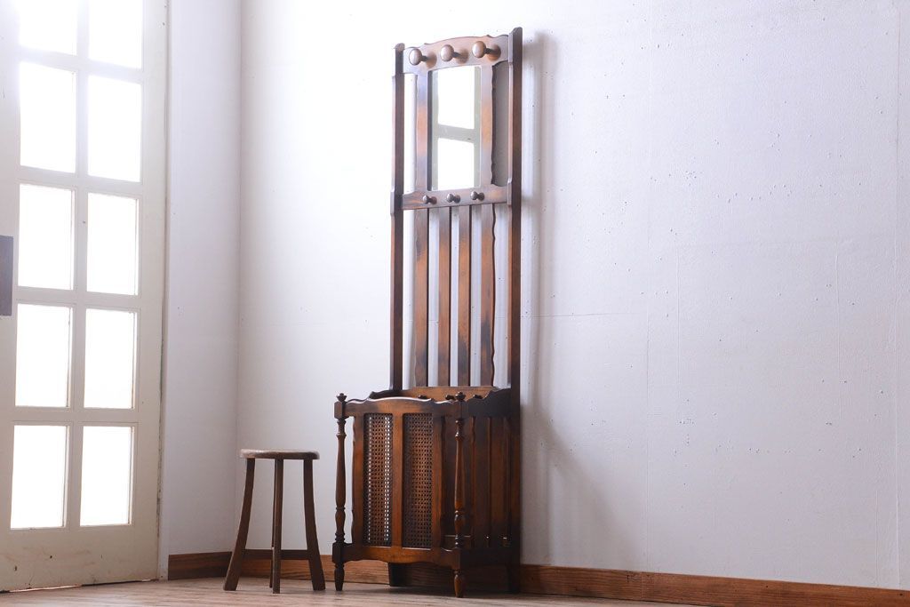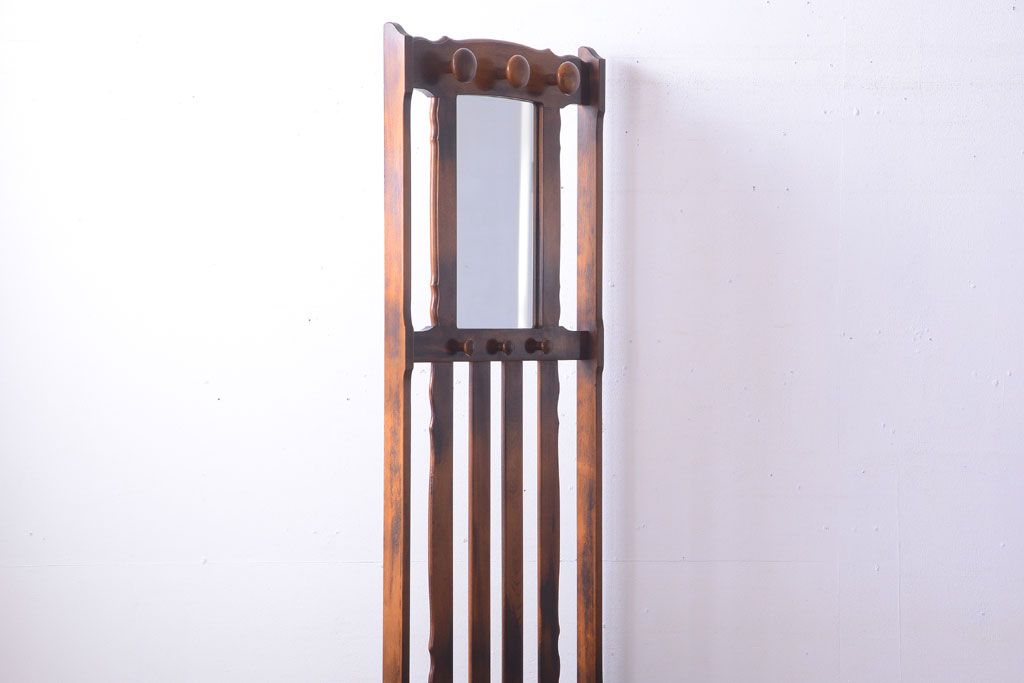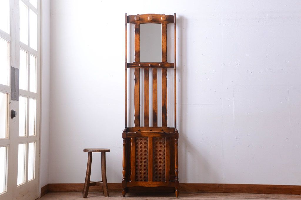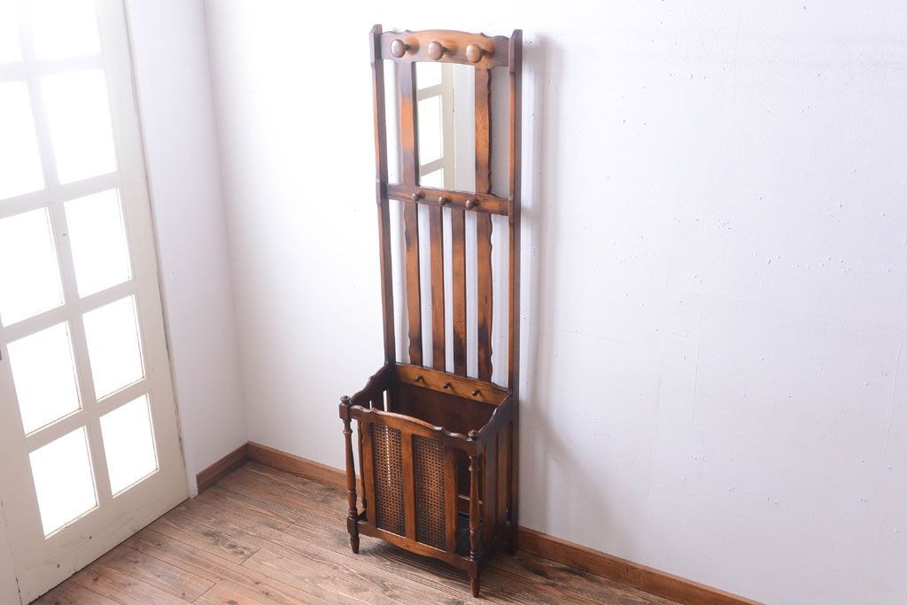中古 カリモク家具 傘立てと鏡付きハンガーラック