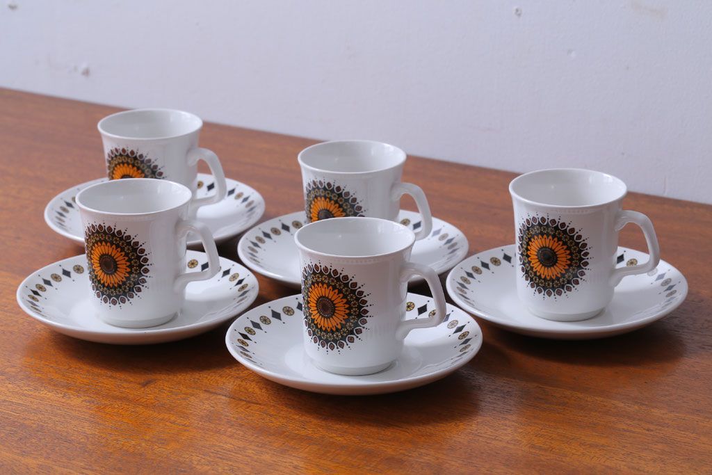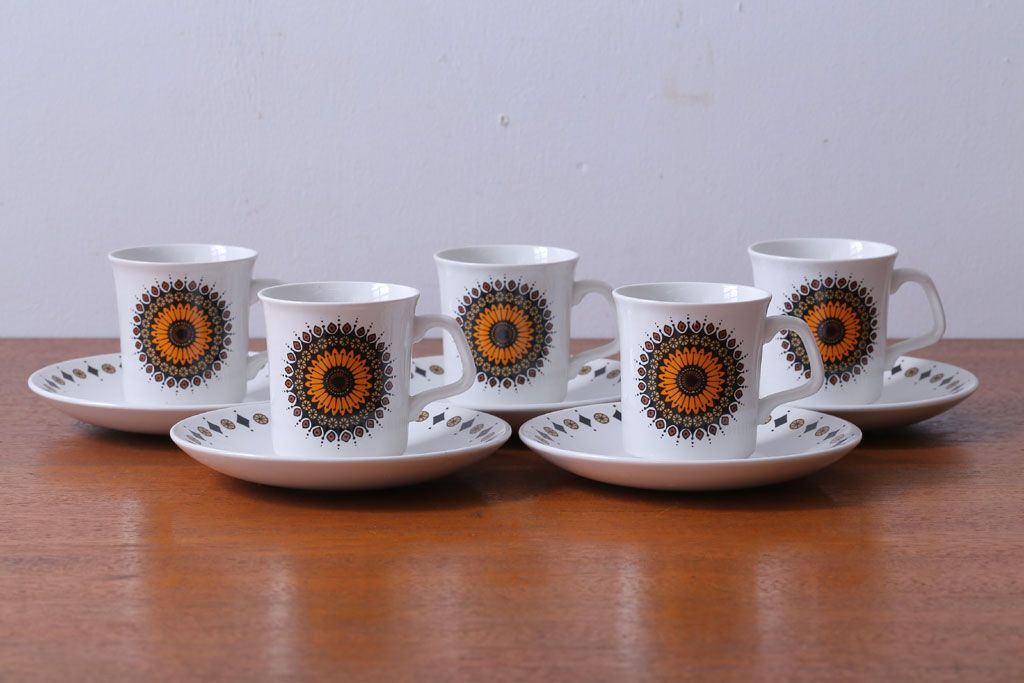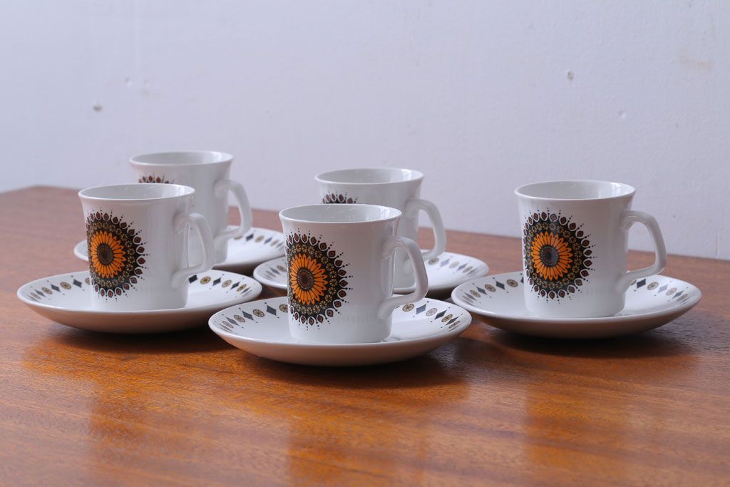 イギリスビンテージ J&G MEAKIN(ミーキン) Inca(インカ)シリーズ カップ&ソーサー5客(洋食器)