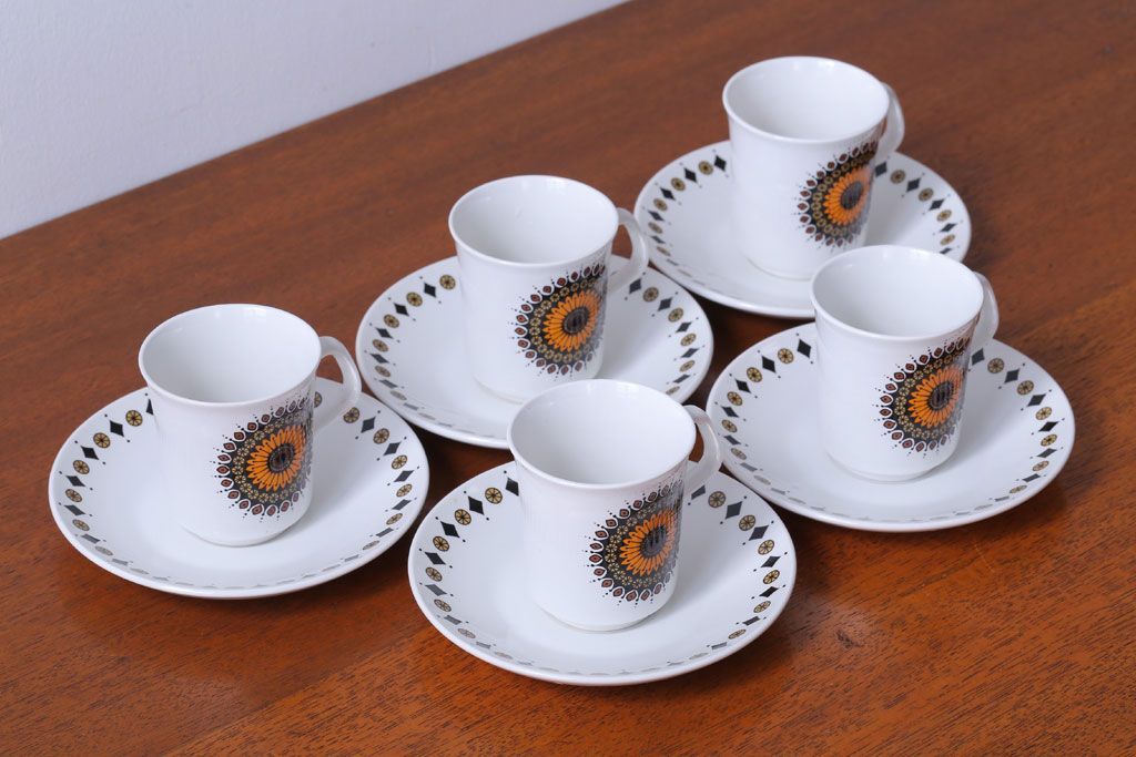 ラフジュ工房> 洋食器・キッチン用品> カップ&ソーサー > イギリスビンテージ J&G MEAKIN(ミーキン) Inca(インカ)シリーズ カップ&ソーサー5客(洋食器)