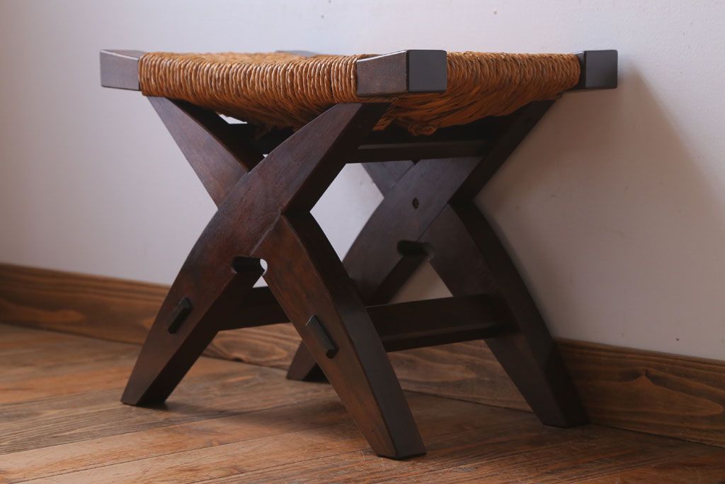 中古 松本民芸家具 #222 鞍型スツール(ラッシスツール)(1)