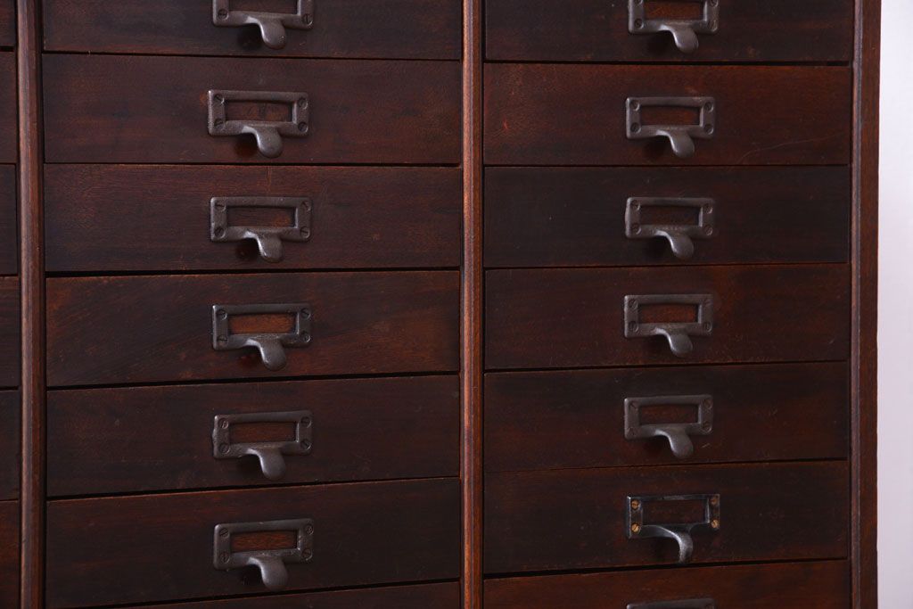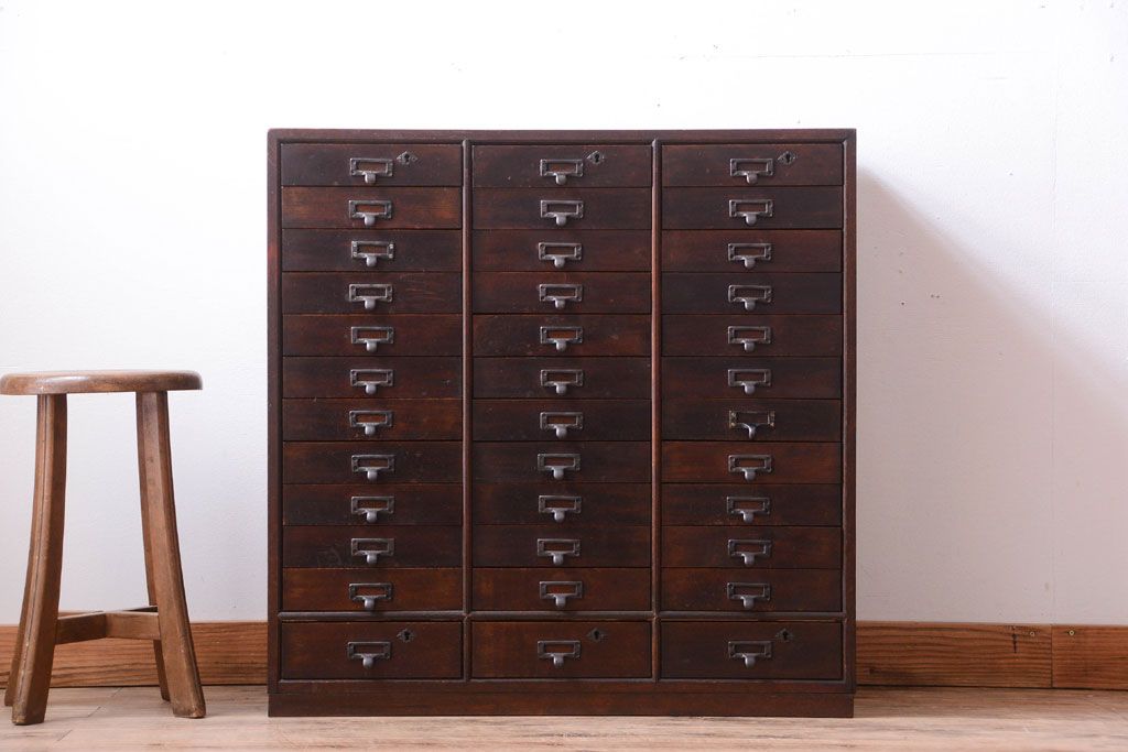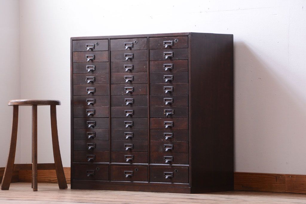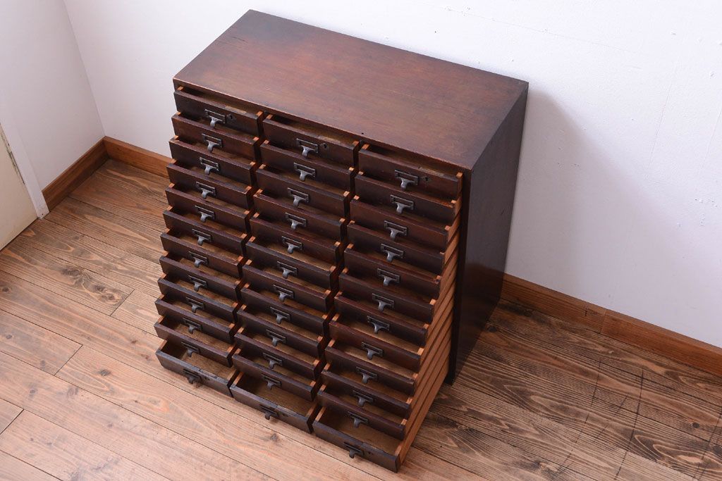 アンティーク家具 和製アンティーク 三方桜材!ネームプレート取っ手の36杯引き出し