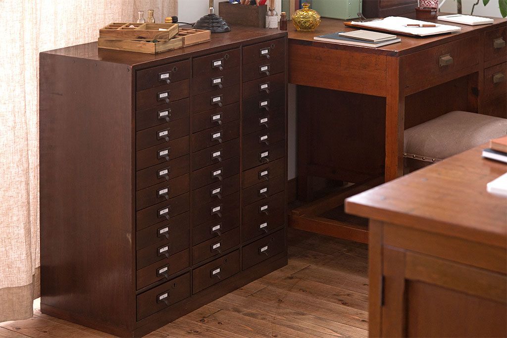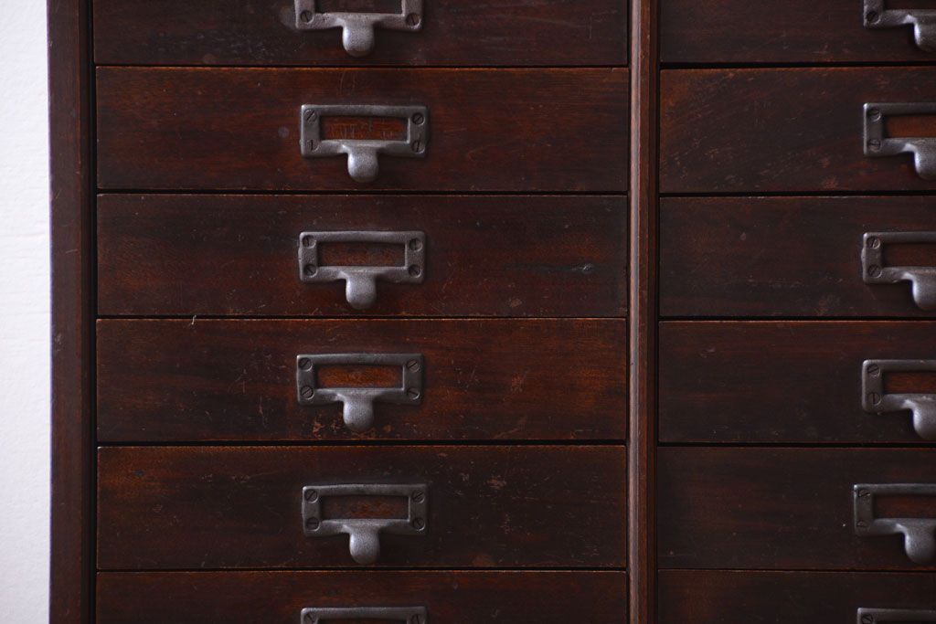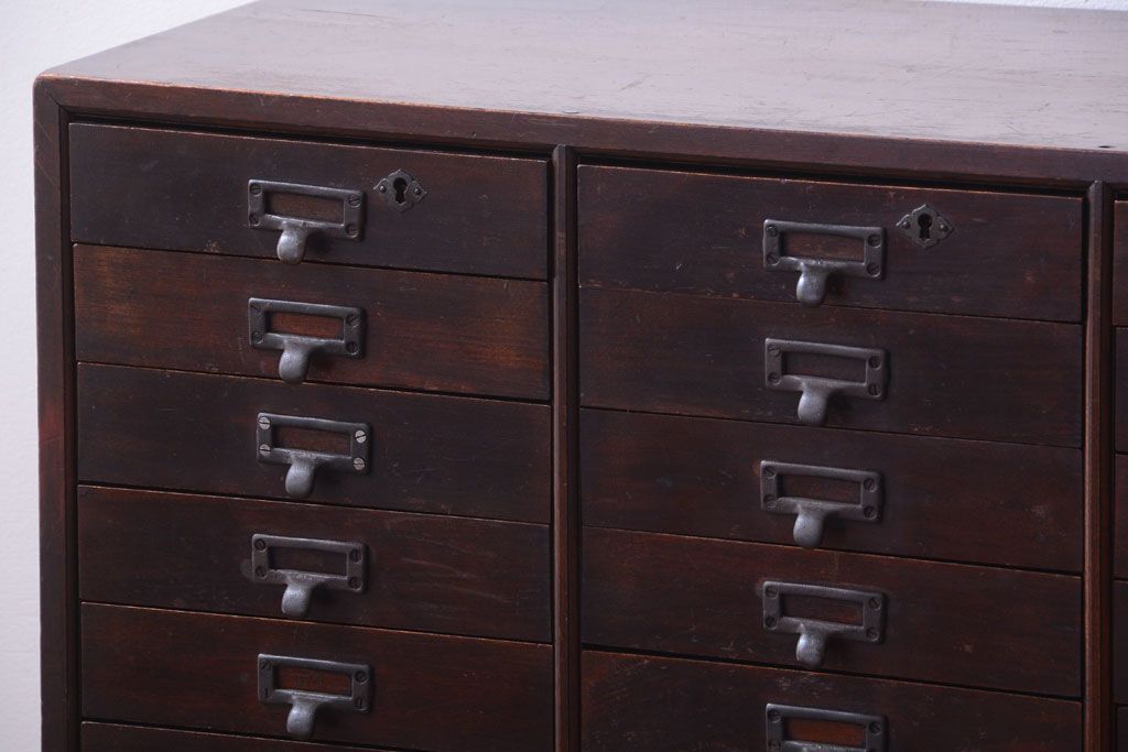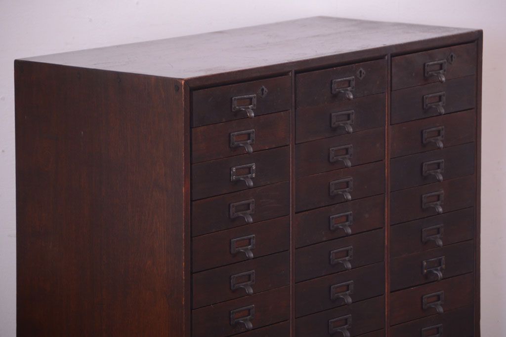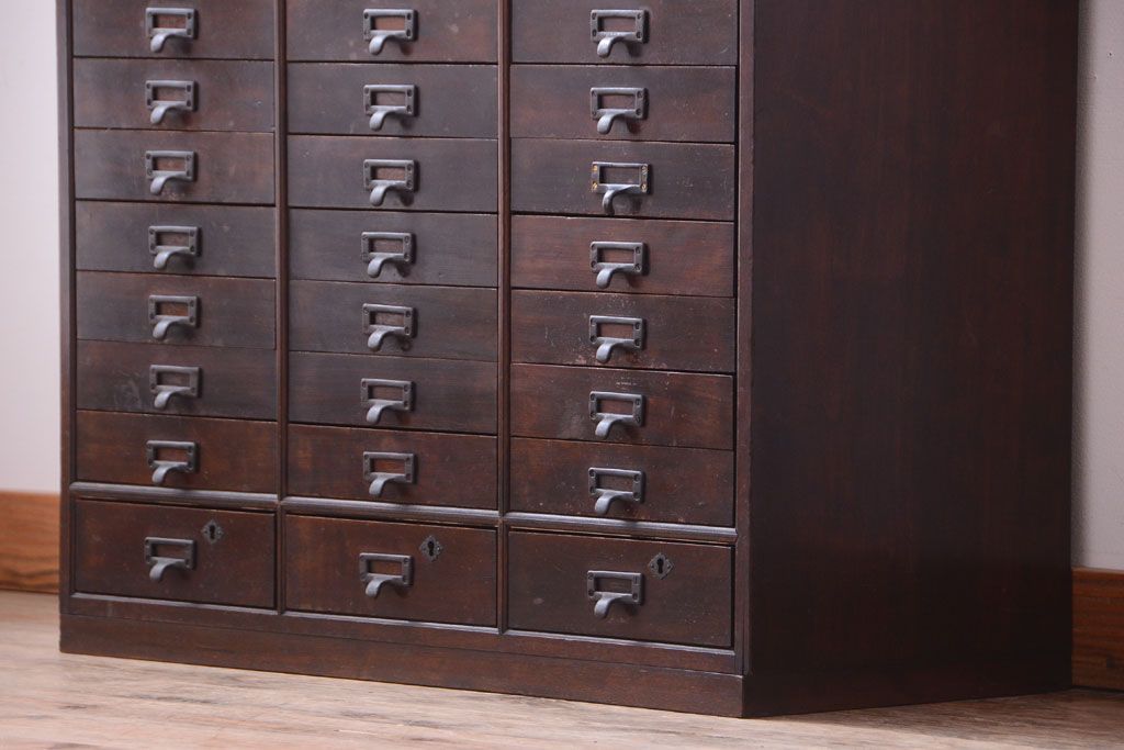 アンティーク家具 和製アンティーク 三方桜材!ネームプレート取っ手の36杯引き出し