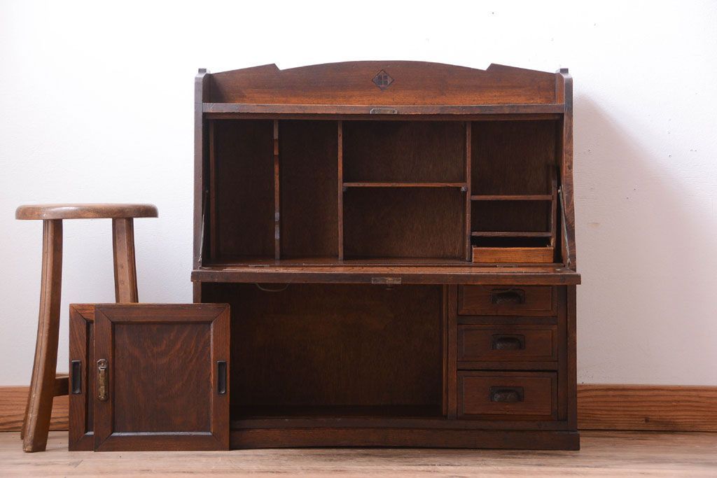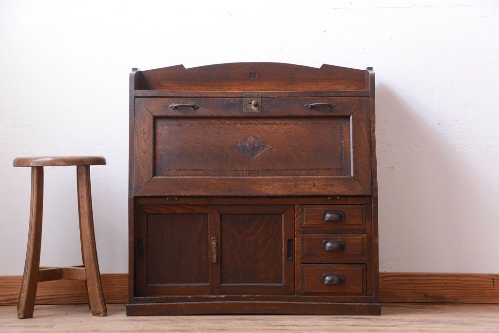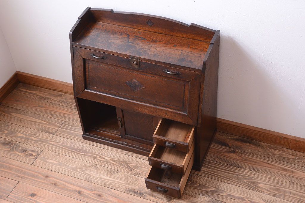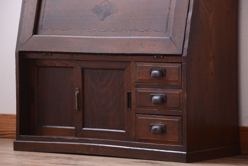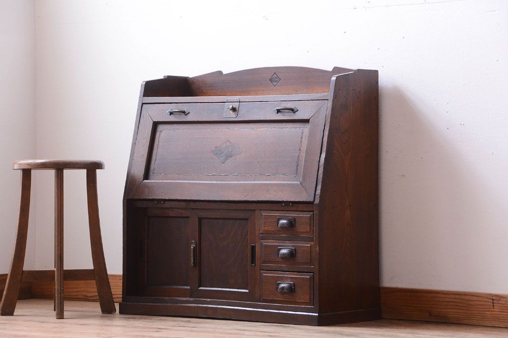 アンティーク家具 和製アンティーク 象嵌入り!古い木製のライティングビューロー