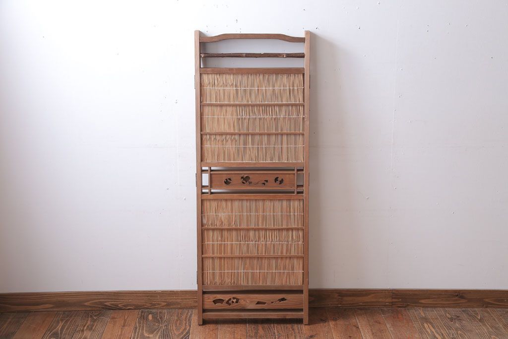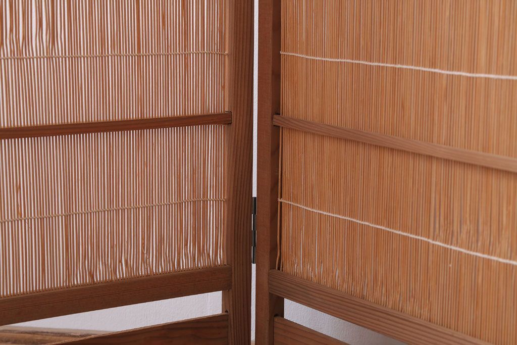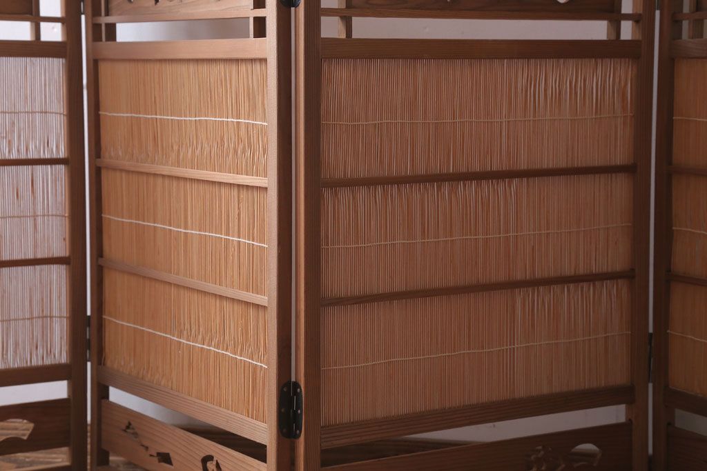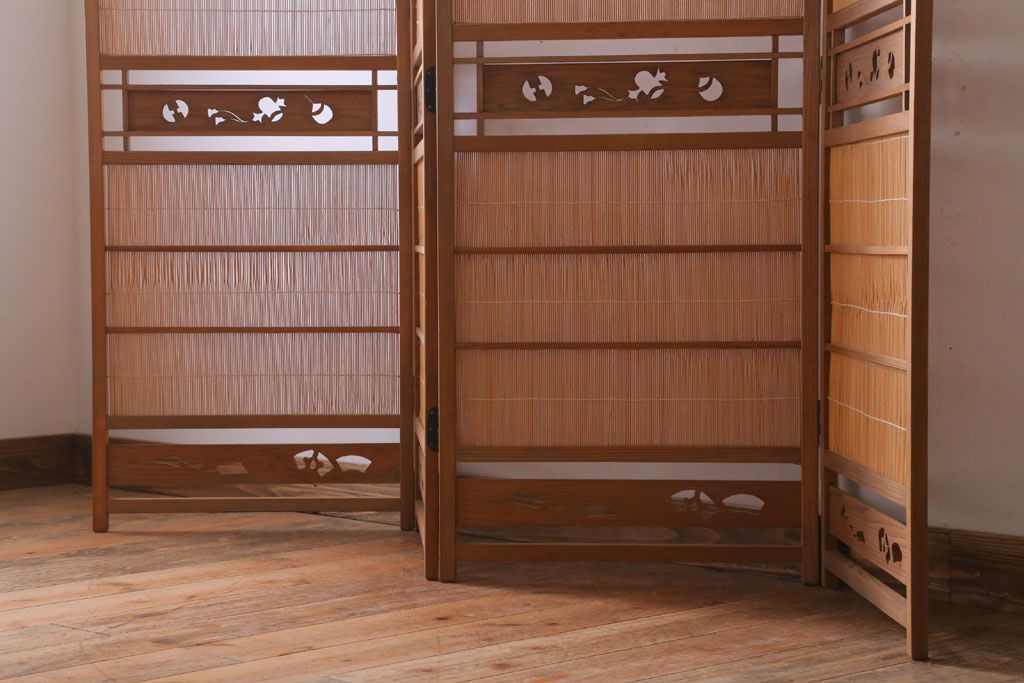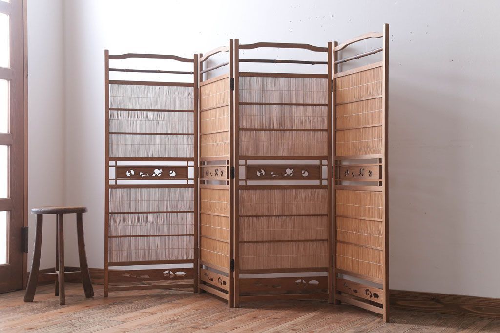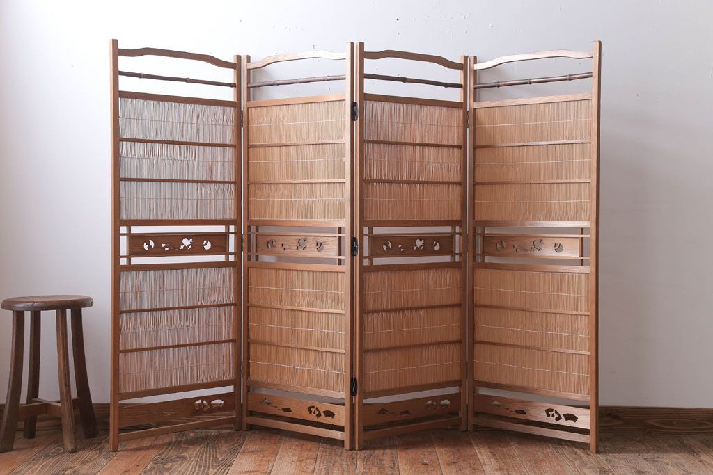 ラフジュ工房> ドア・建具> フェンス・窓柵・面格子 > 古民具・骨董 古い木味の折り畳み式パーテーション(四連屏風衝立て)(1)