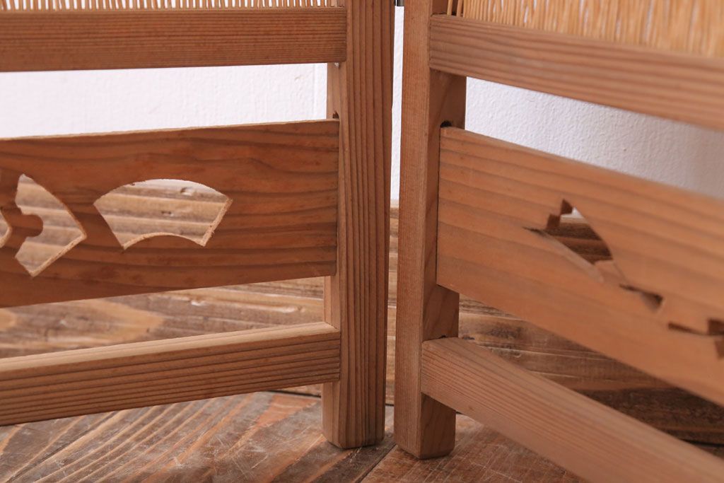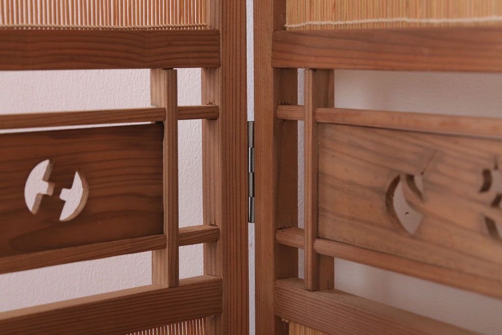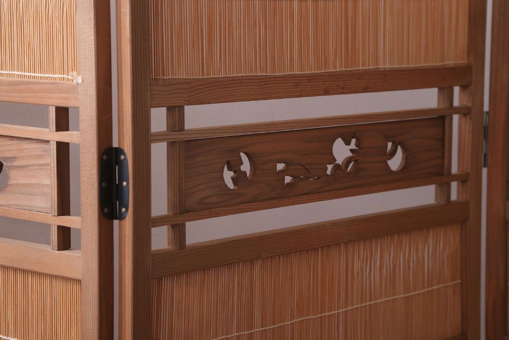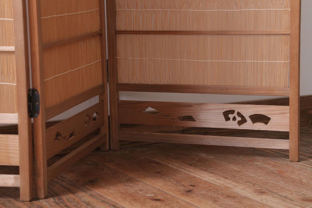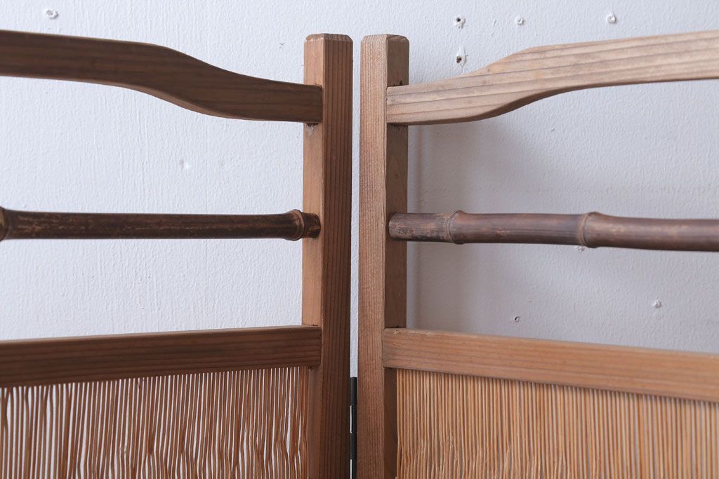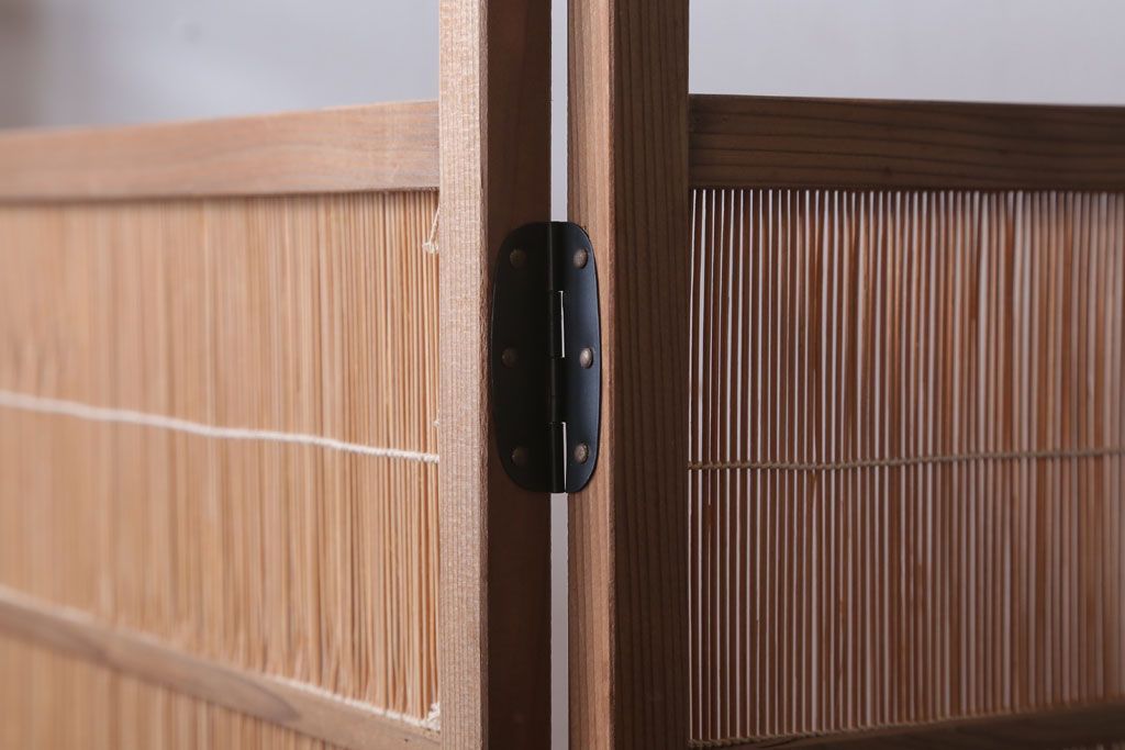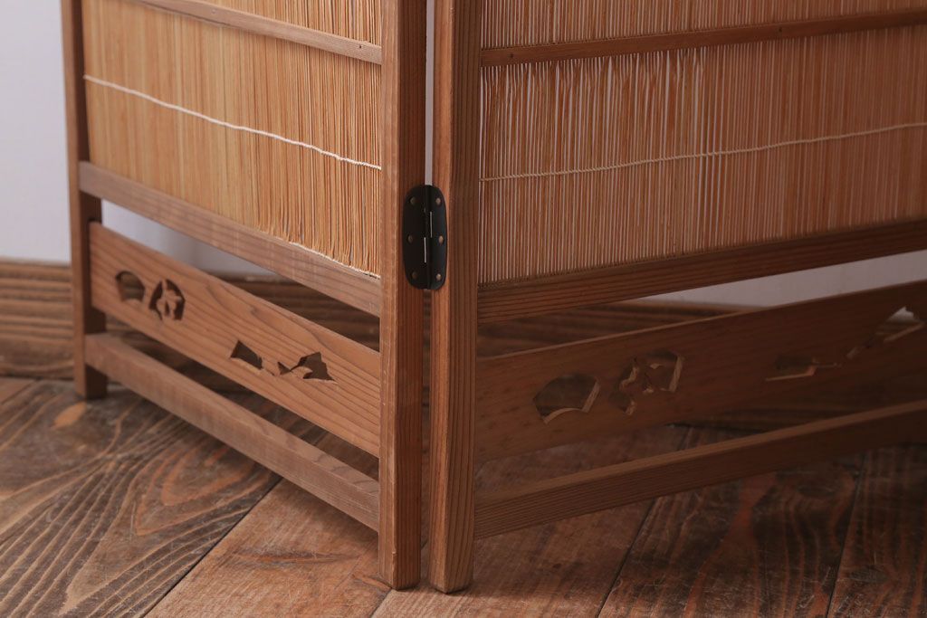ラフジュ工房> ドア・建具> フェンス・窓柵・面格子 > 古民具・骨董 古い木味の折り畳み式パーテーション(四連屏風衝立て)(1)
