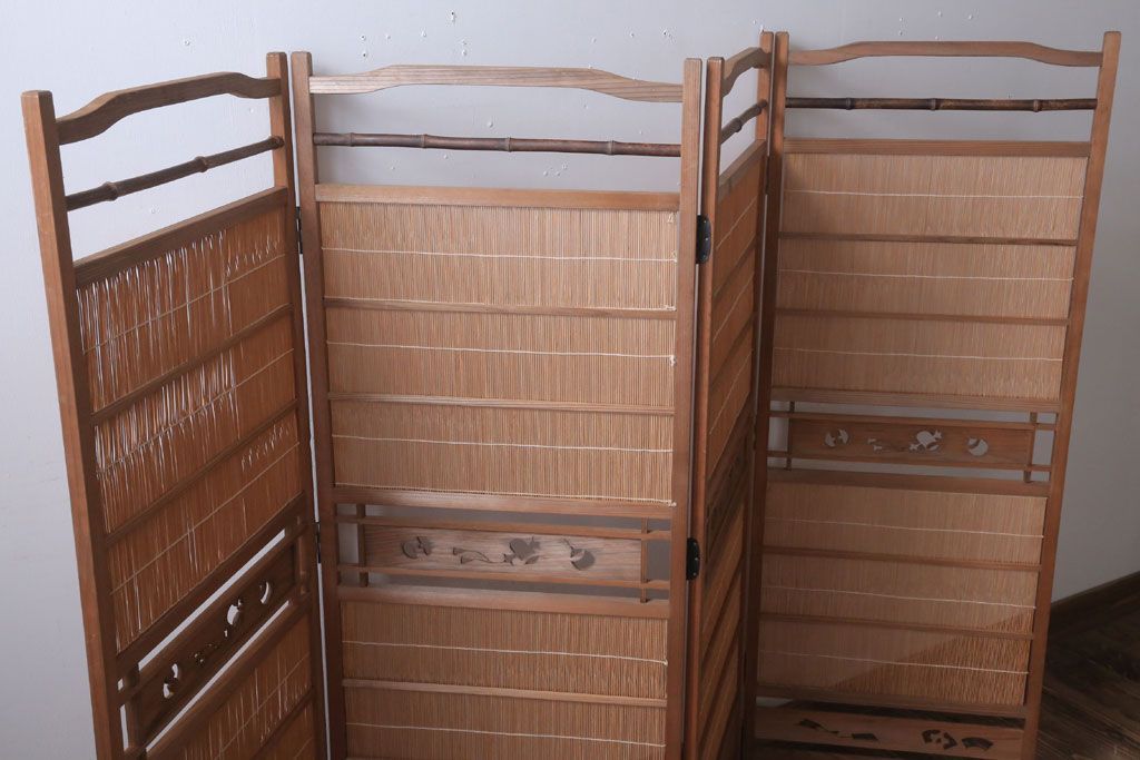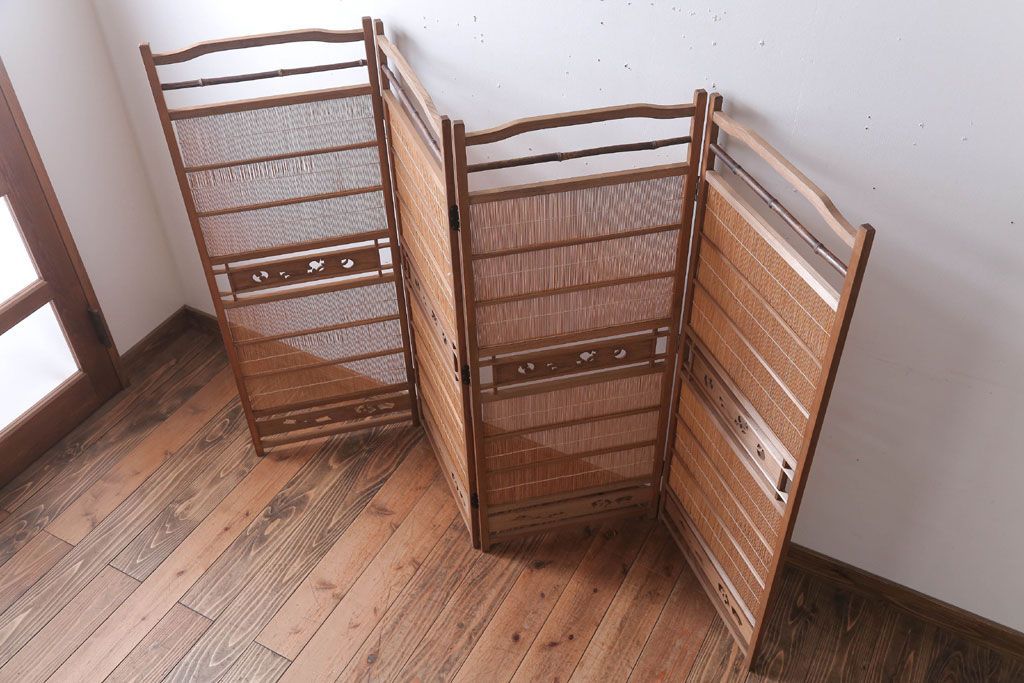 古民具・骨董 古い木味の折り畳み式パーテーション(四連屏風衝立て)(1)