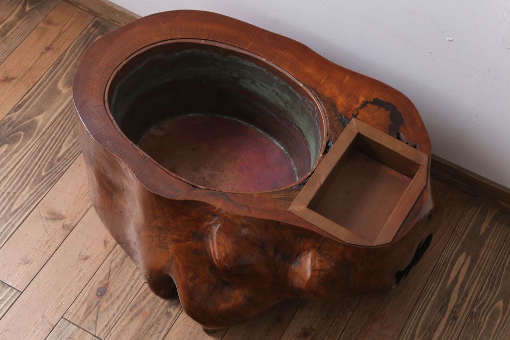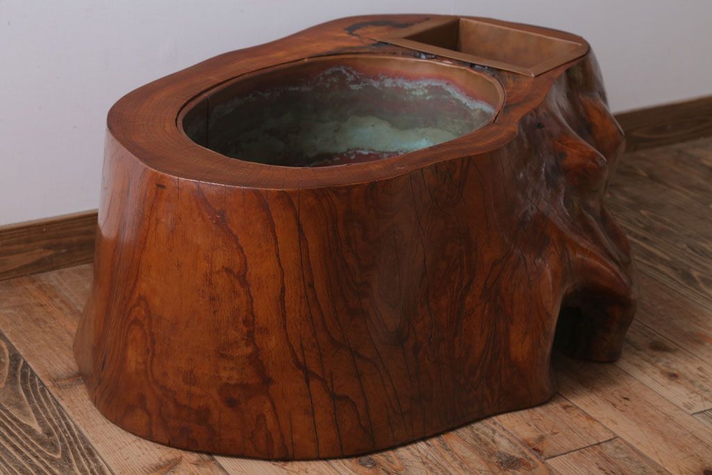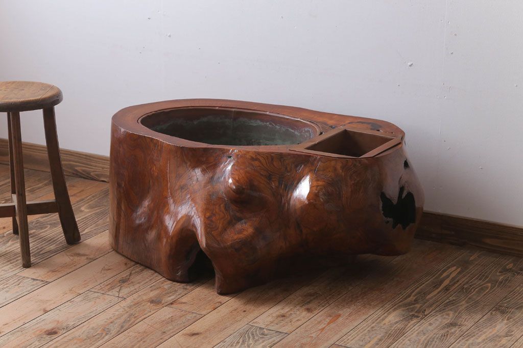 アンティーク雑貨 和製アンティーク 総欅材!くり貫き火鉢