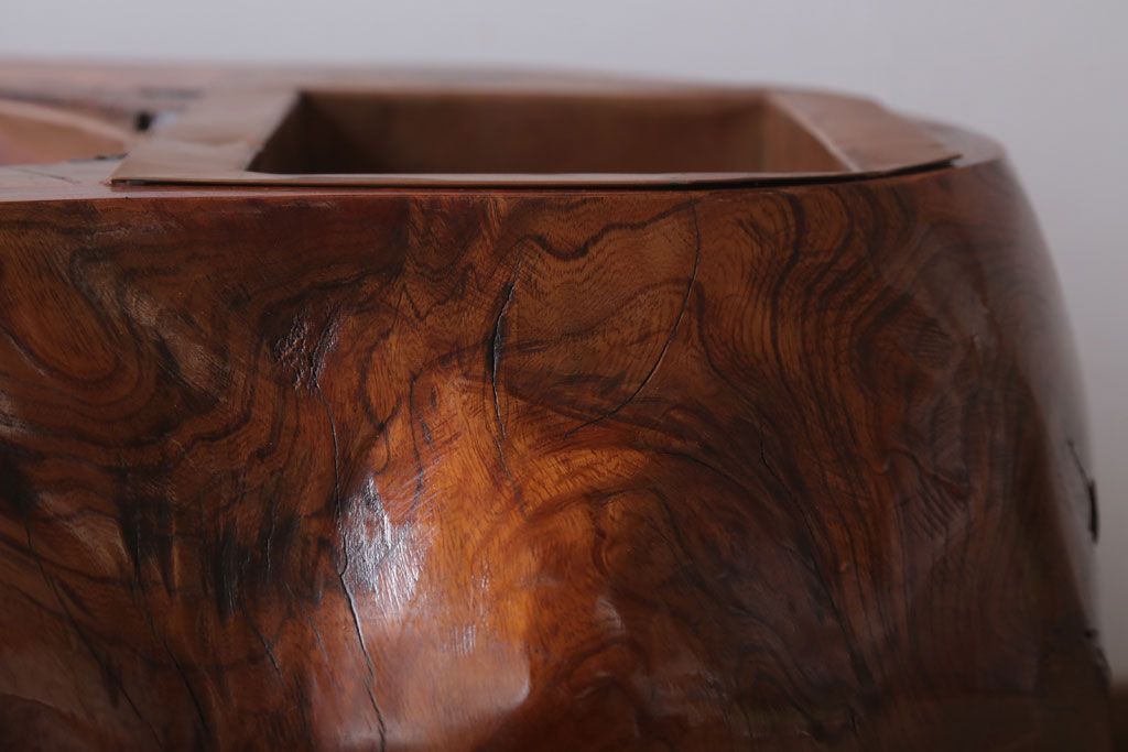 和製アンティーク 総欅材!くり貫き火鉢です。