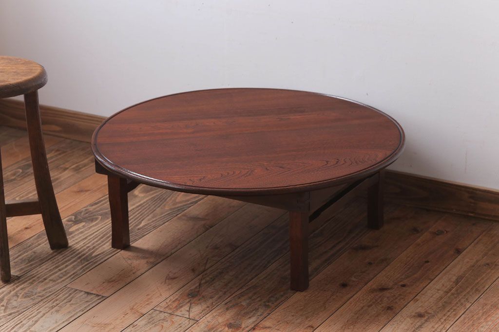 アンティーク家具 アンティーク 古い栓材のシンプルな丸ちゃぶ台